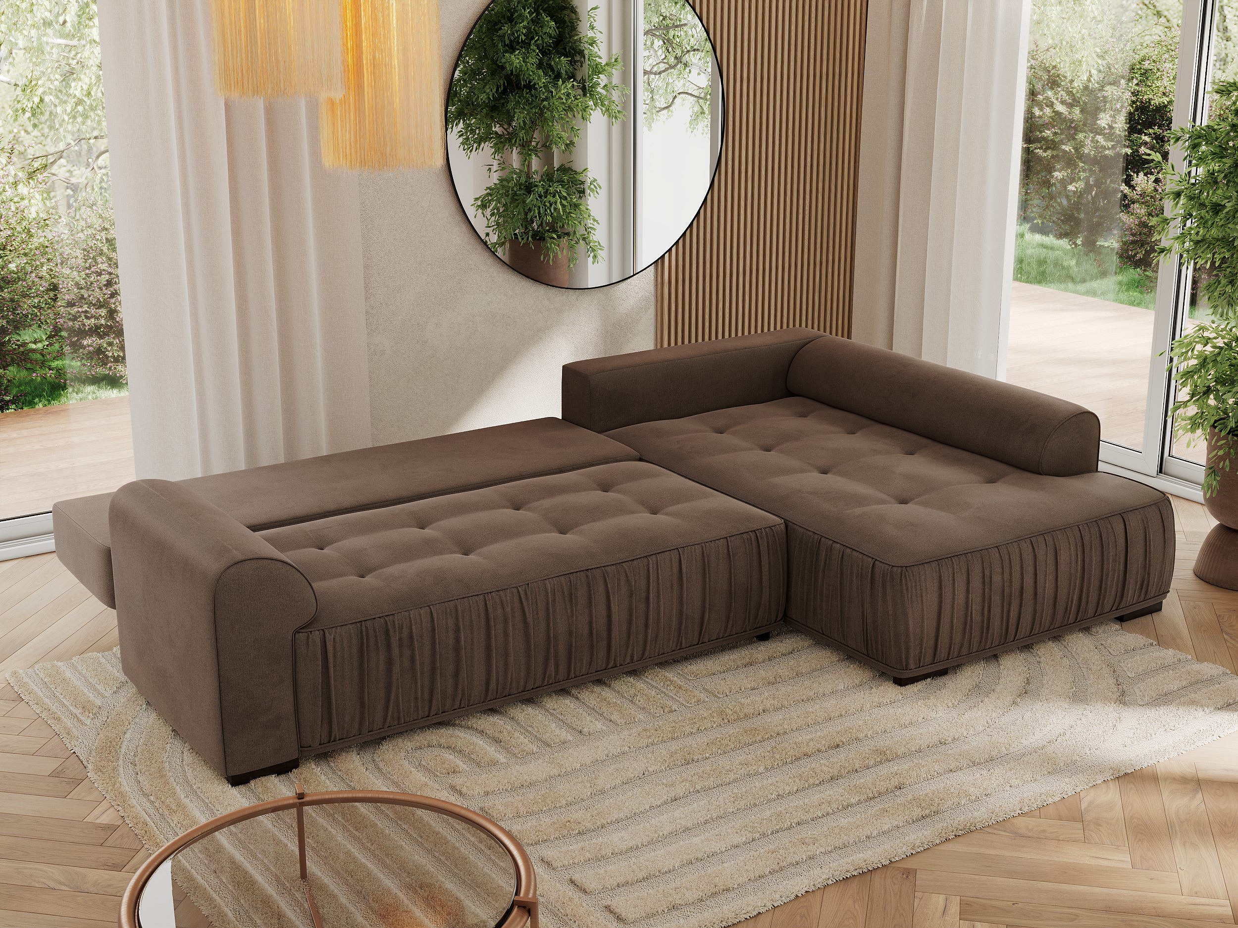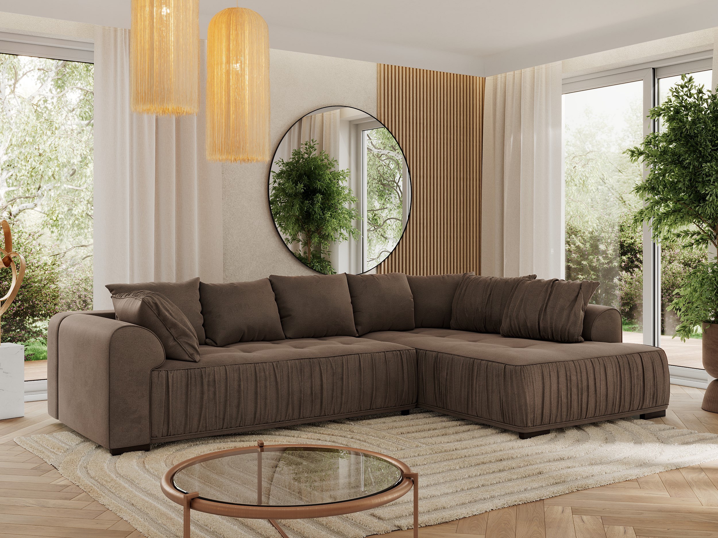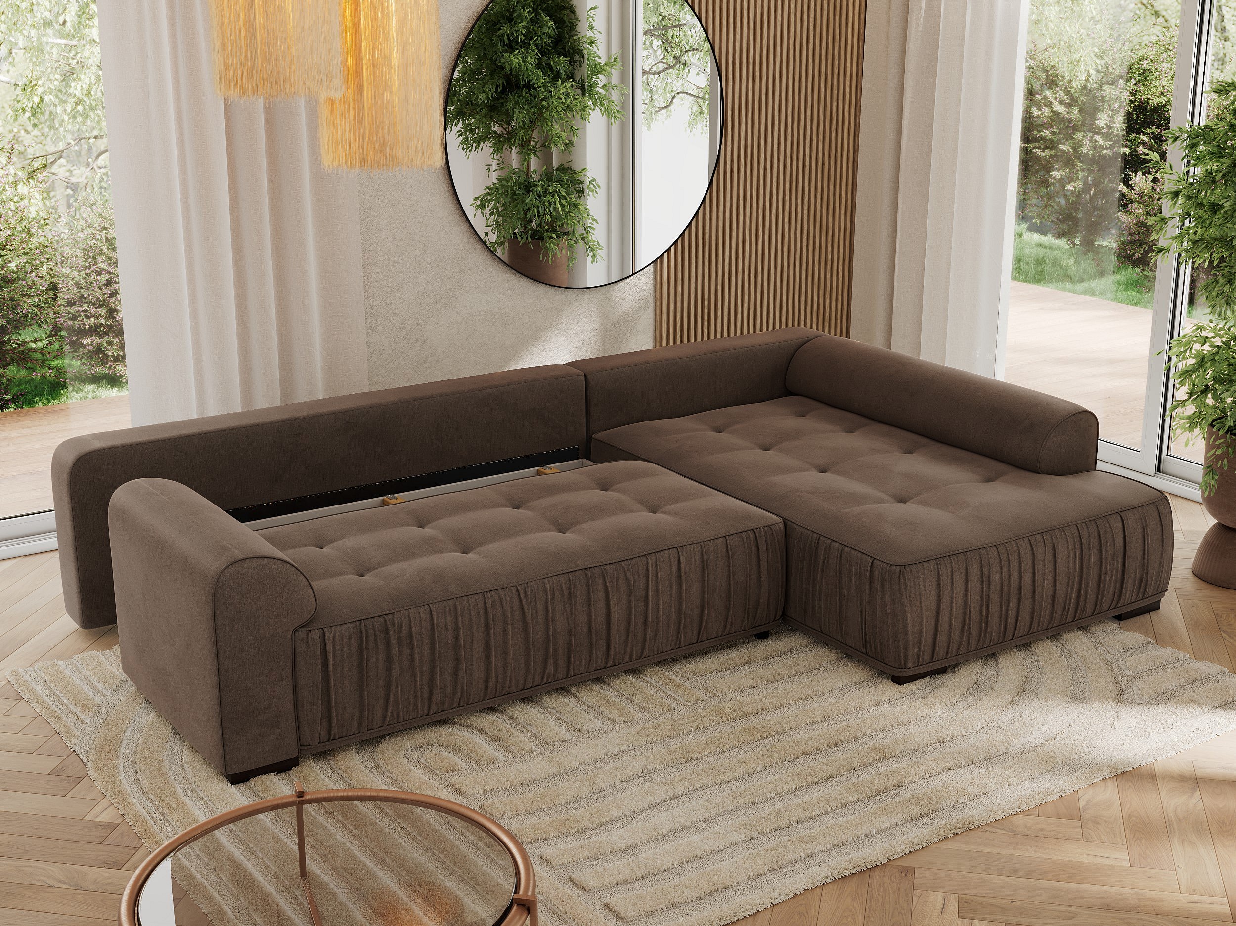 Ecksofa ORTA - Schlaffunktion und Bettkasten, lose Kissen, gesteppter Sitz, L-förmige Ecke - Braun Velvet - Ecke Rechts