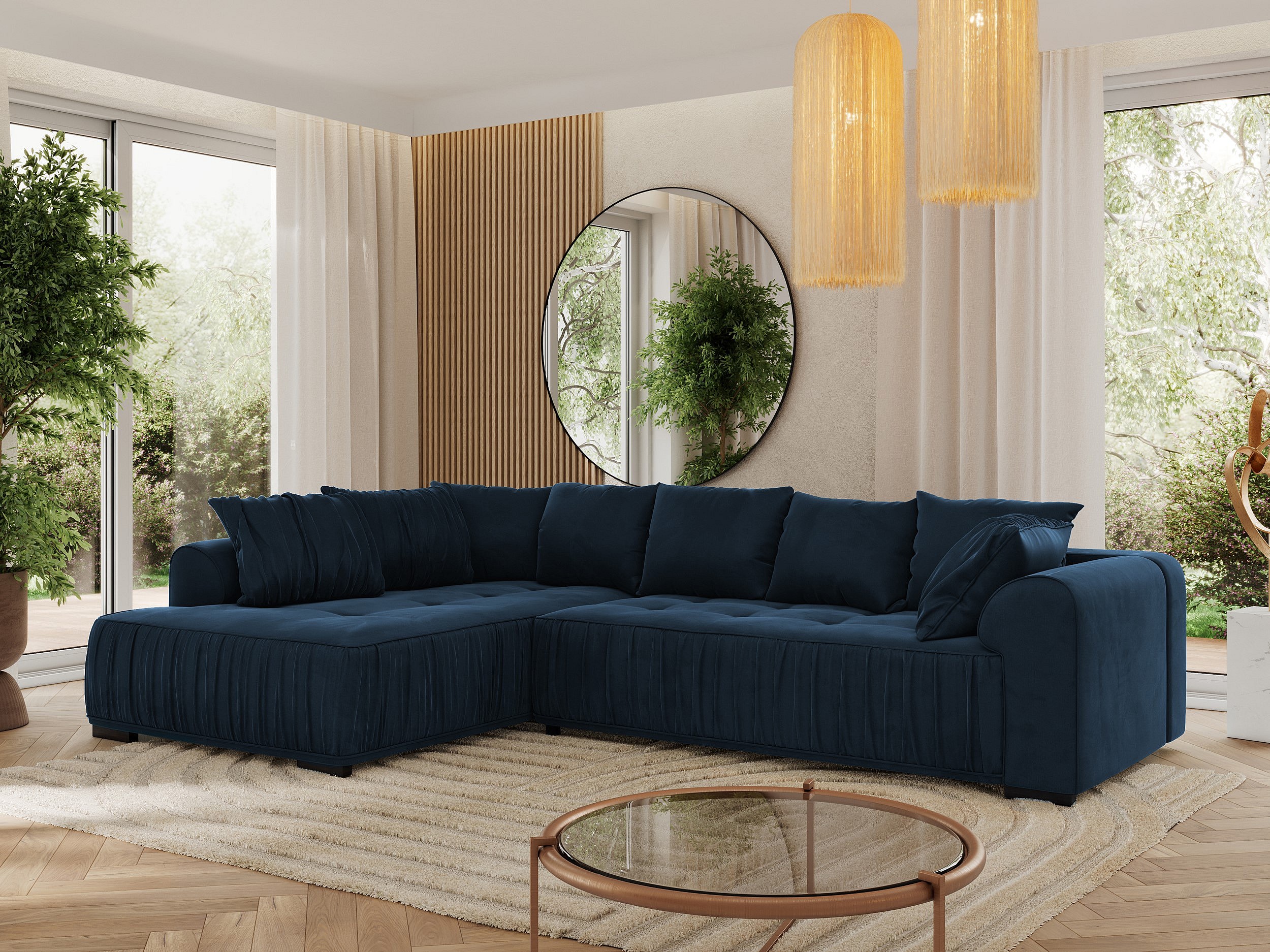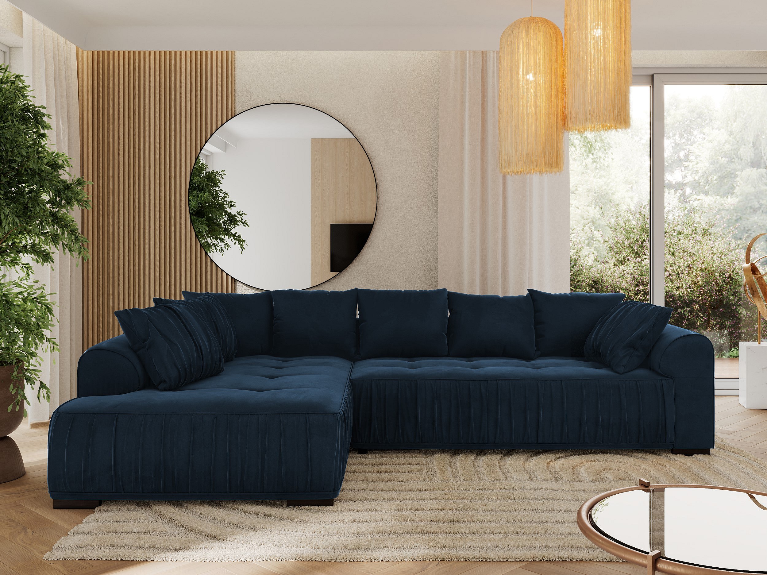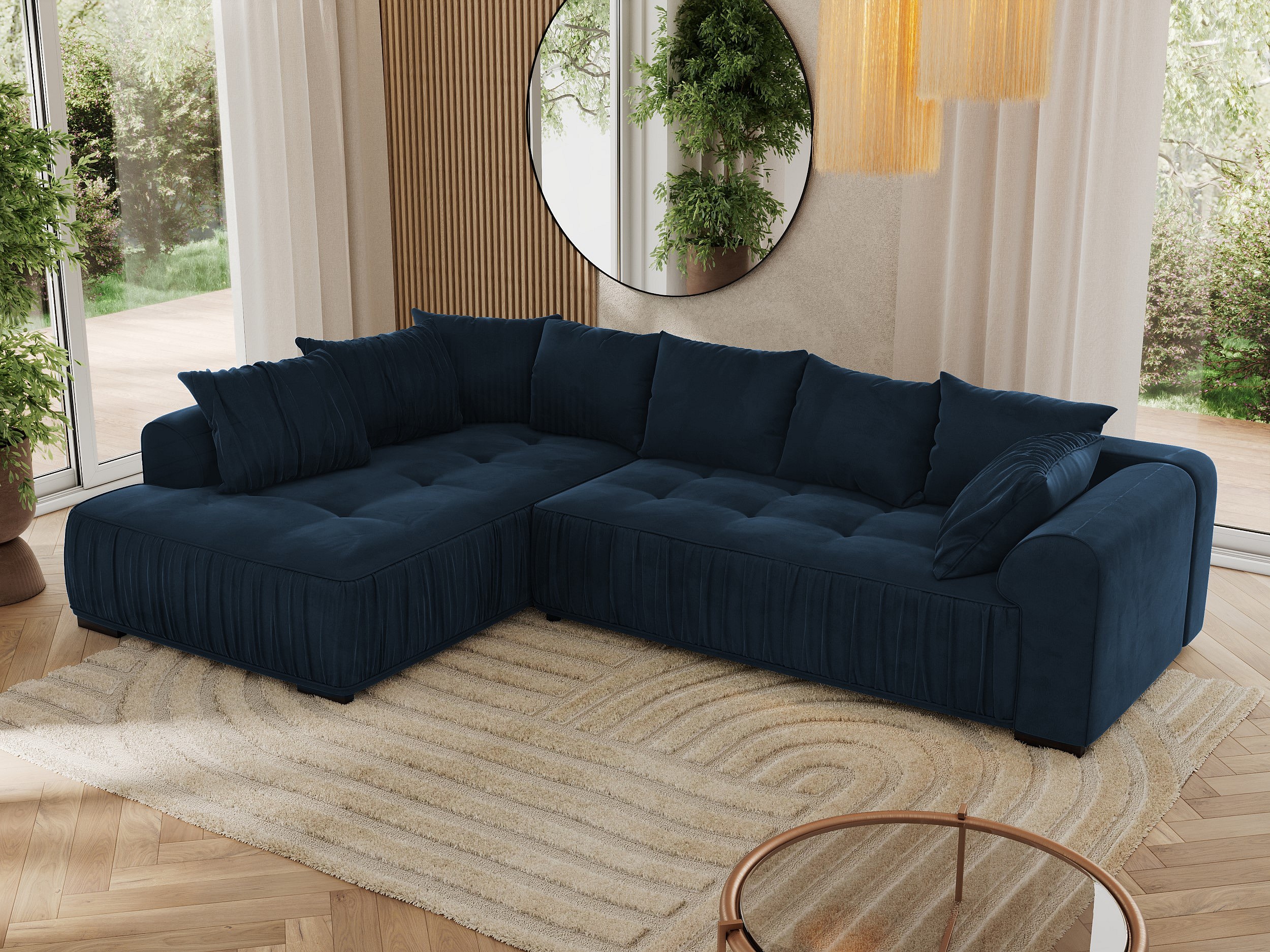 Ecksofa ORTA - Schlaffunktion und Bettkasten, lose Kissen, gesteppter Sitz, L-förmige Ecke - Dunkelblau Velvet - Ecke Links