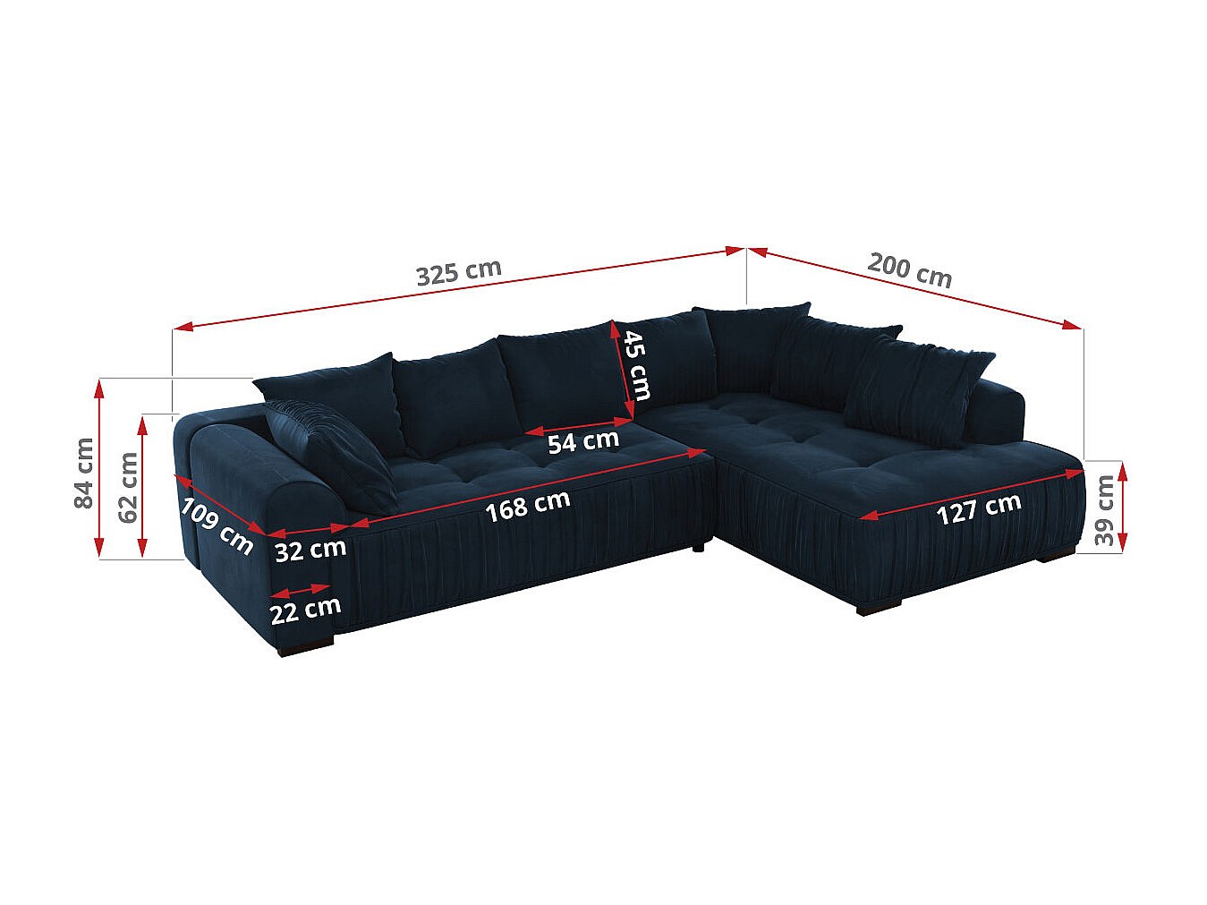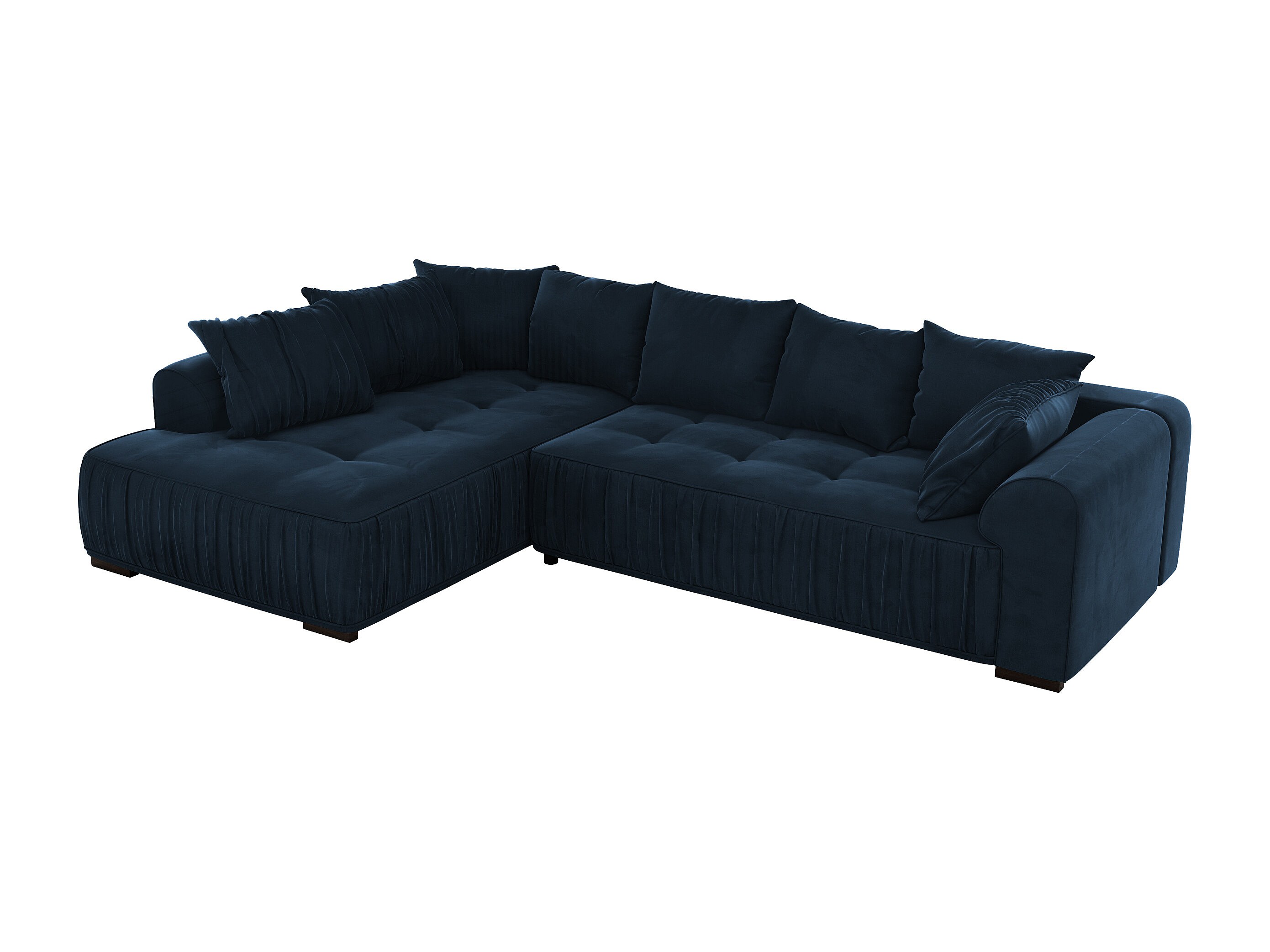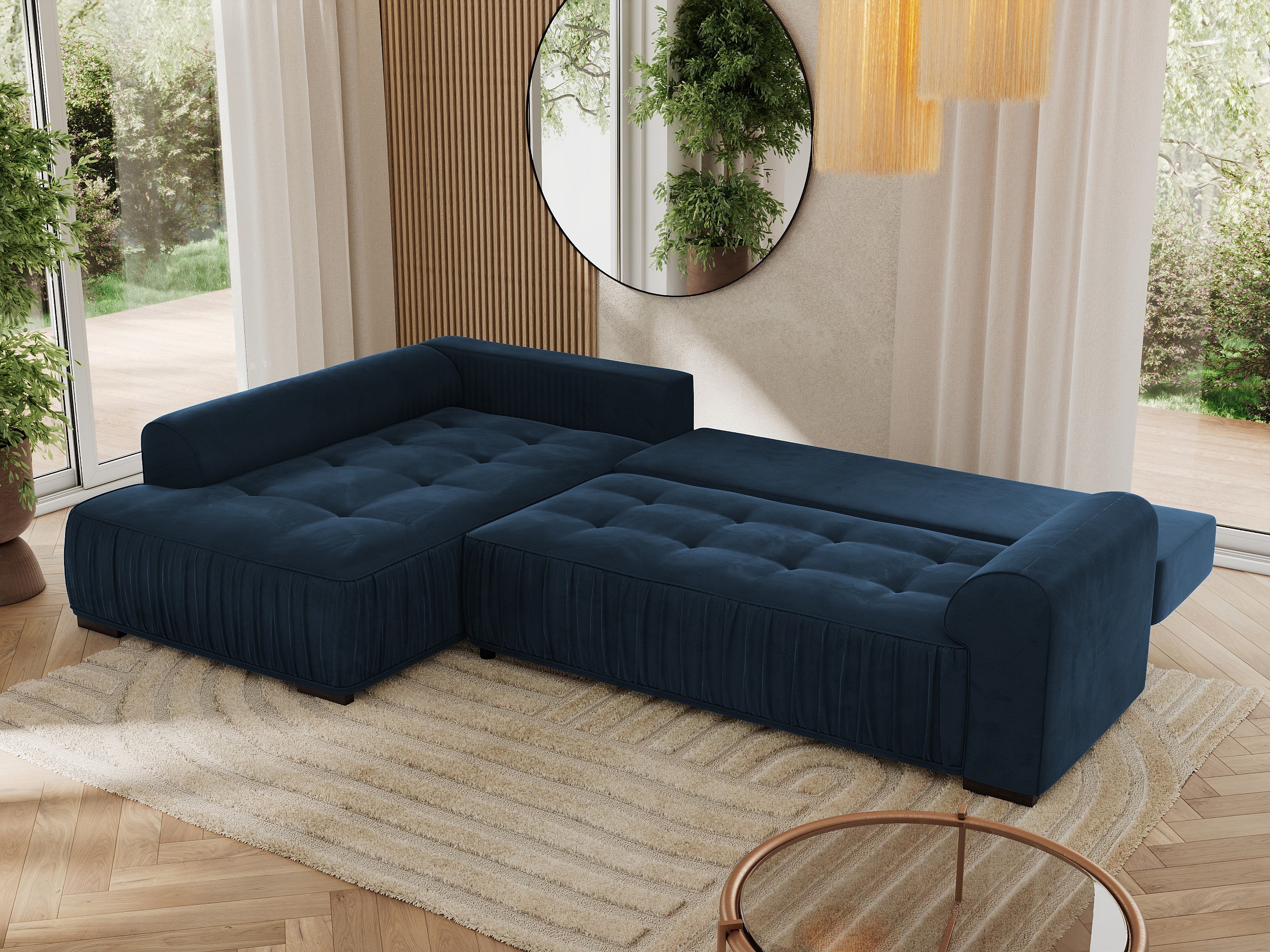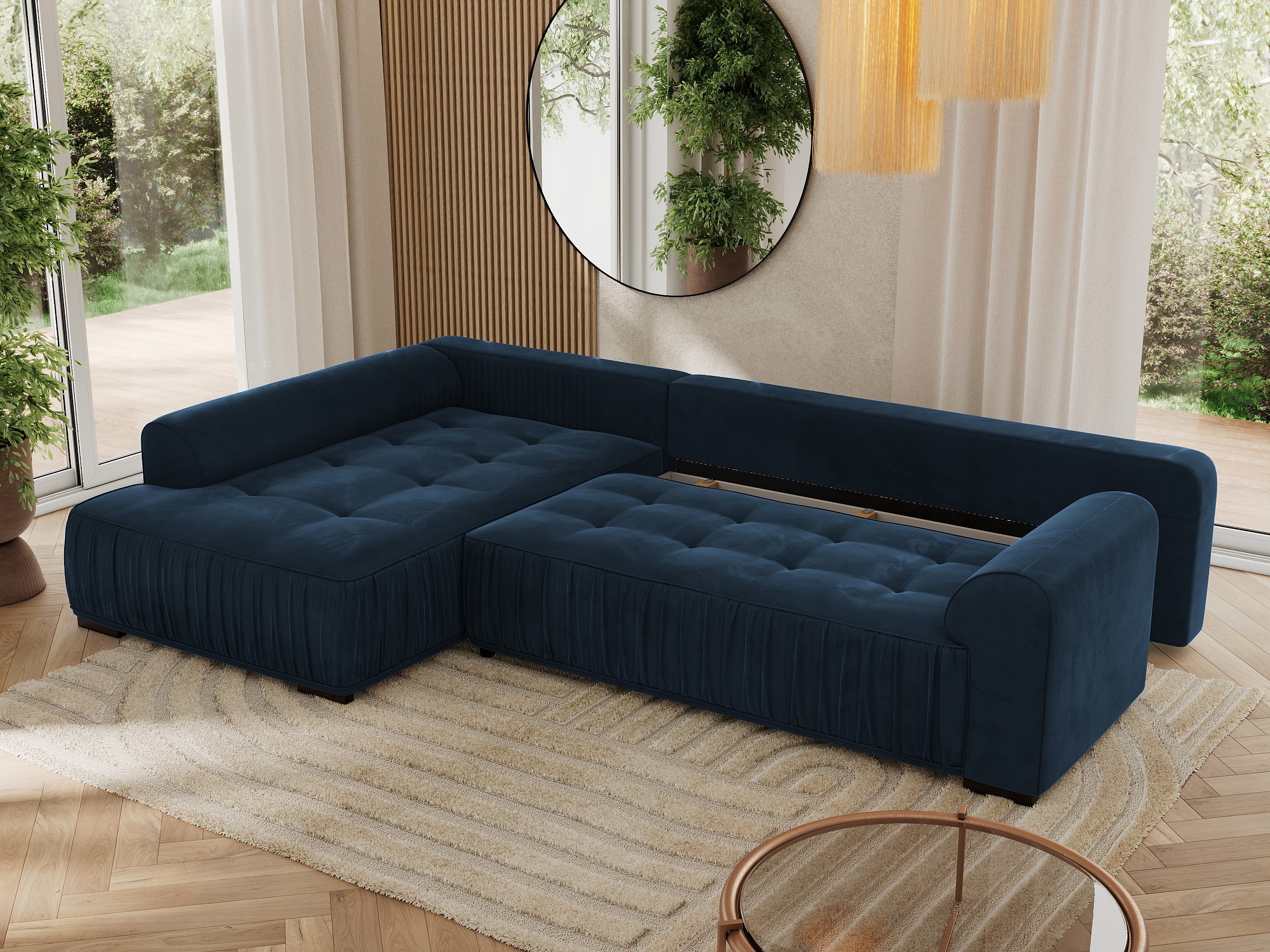 Ecksofa ORTA - Schlaffunktion und Bettkasten, lose Kissen, gesteppter Sitz, L-förmige Ecke - Dunkelblau Velvet - Ecke Links