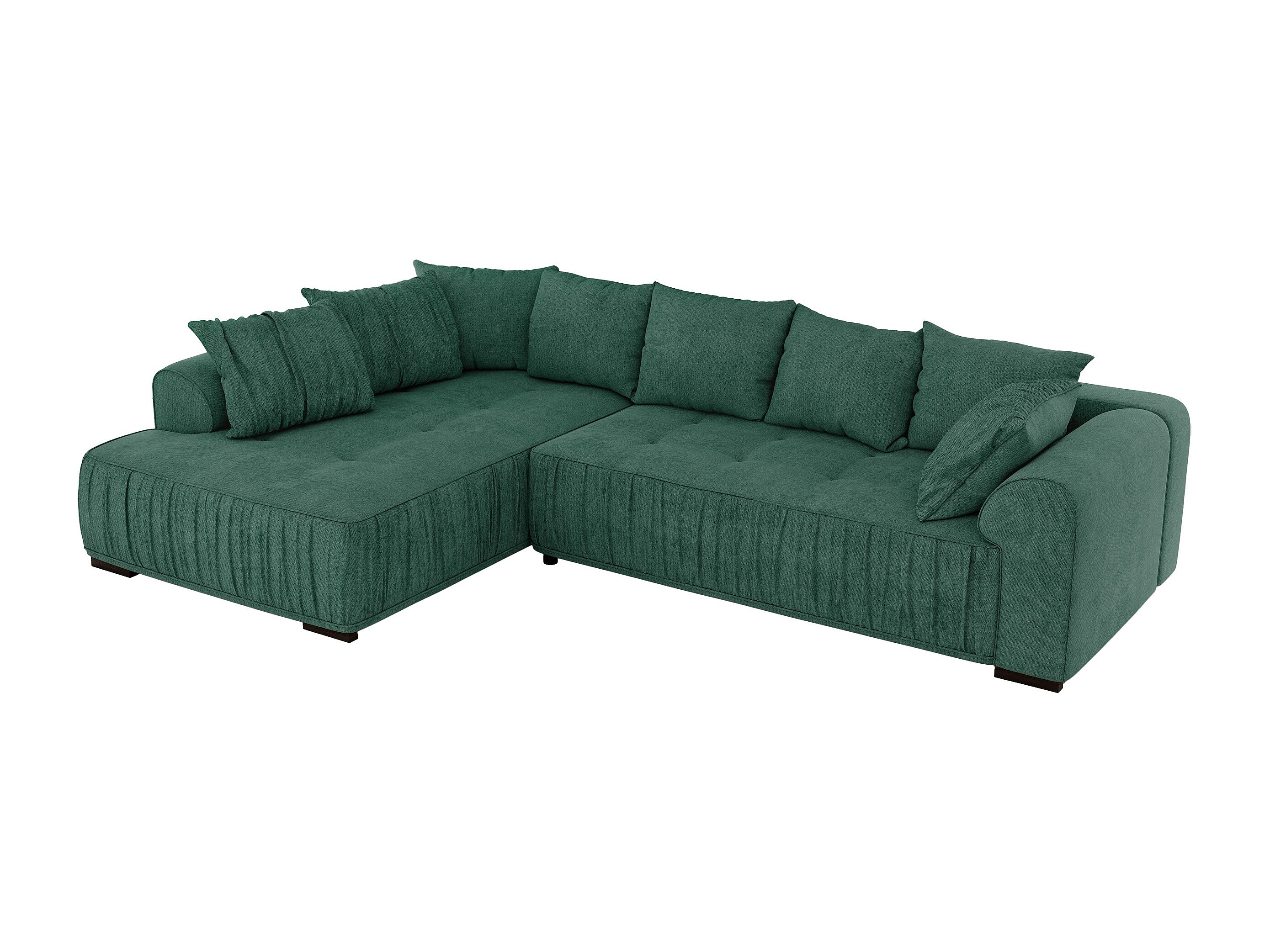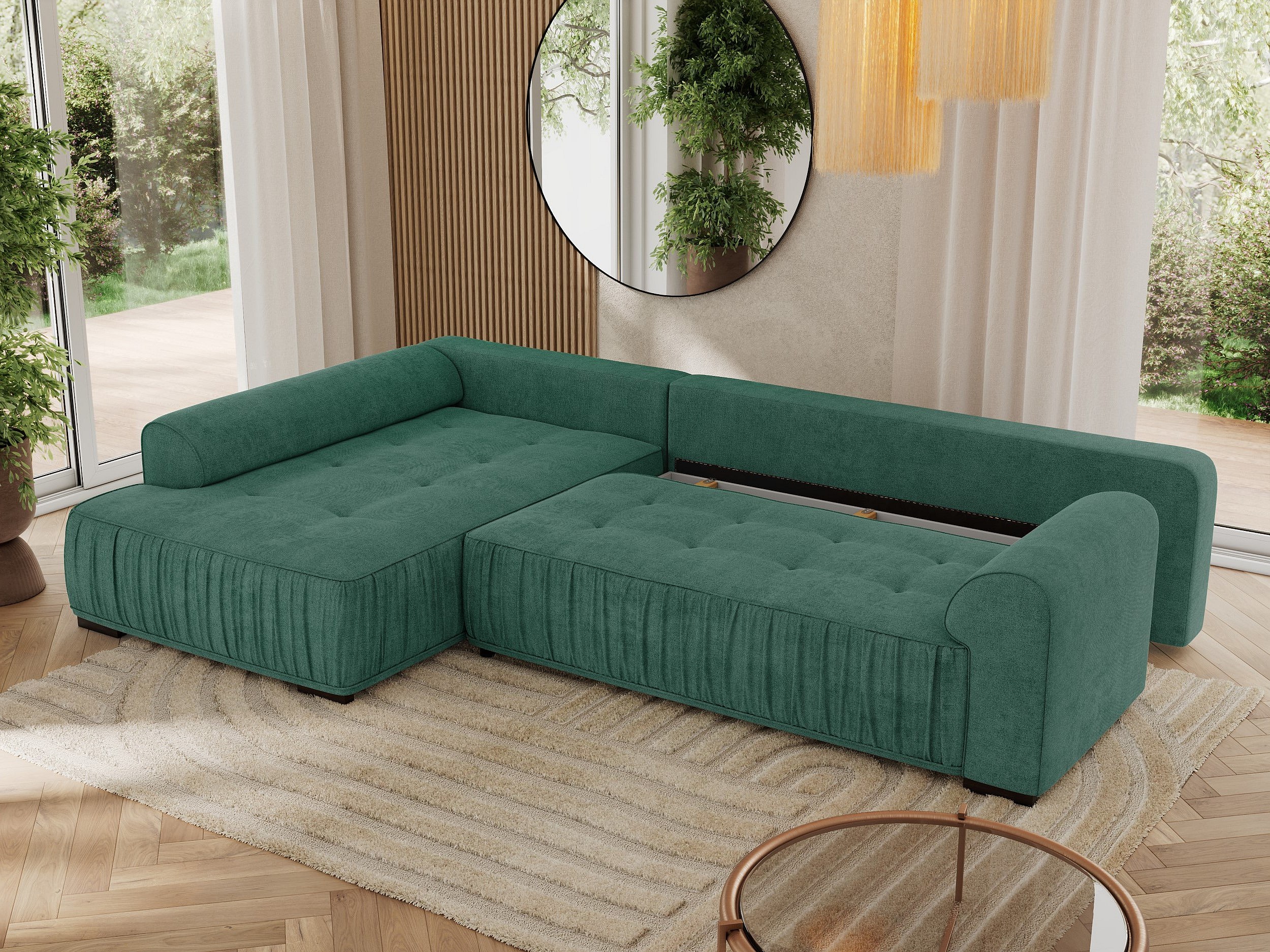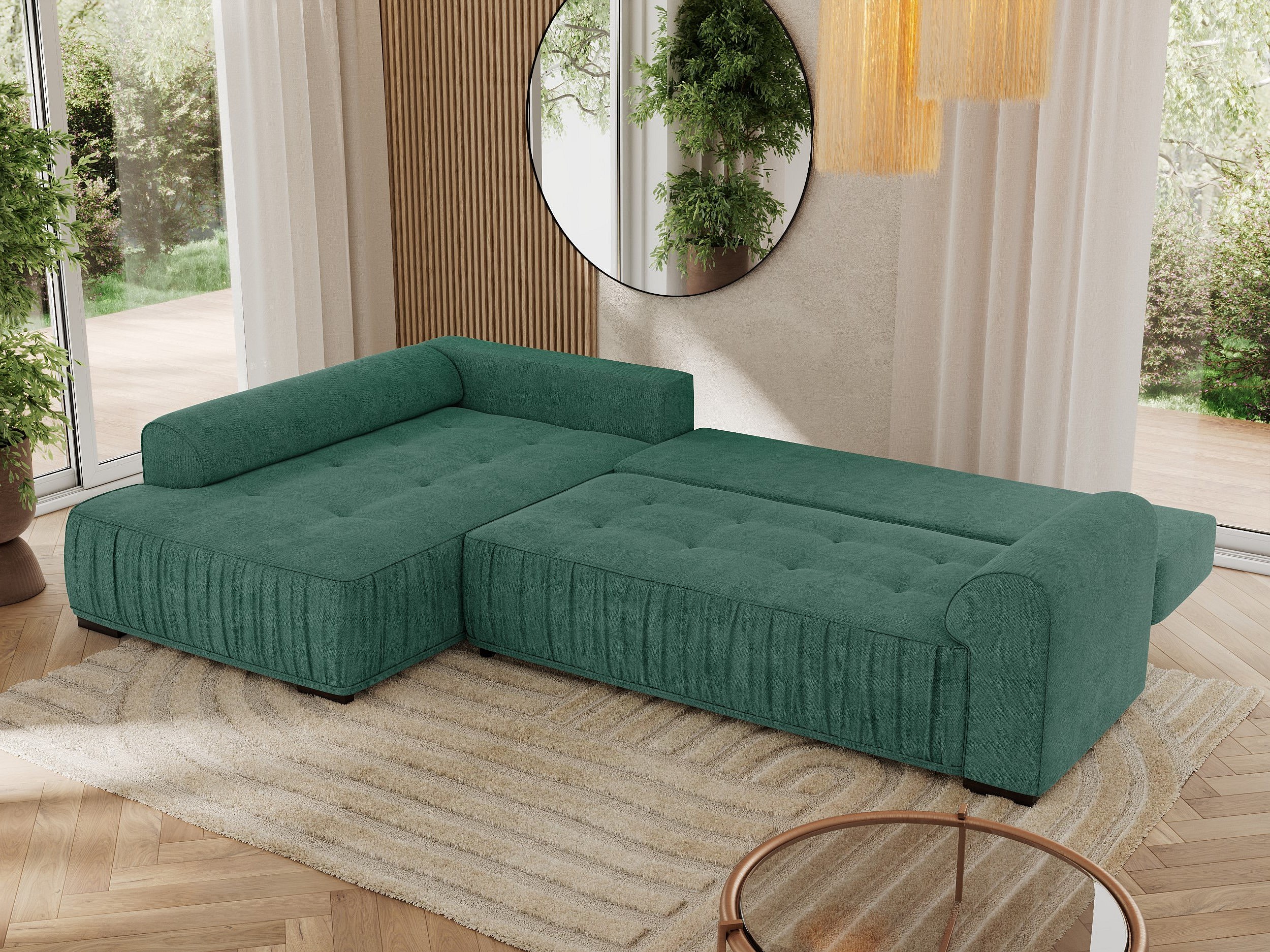 Ecksofa ORTA - Schlaffunktion und Bettkasten, lose Kissen, gesteppter Sitz, L-förmige Ecke - Grün Stukture - Ecke Links