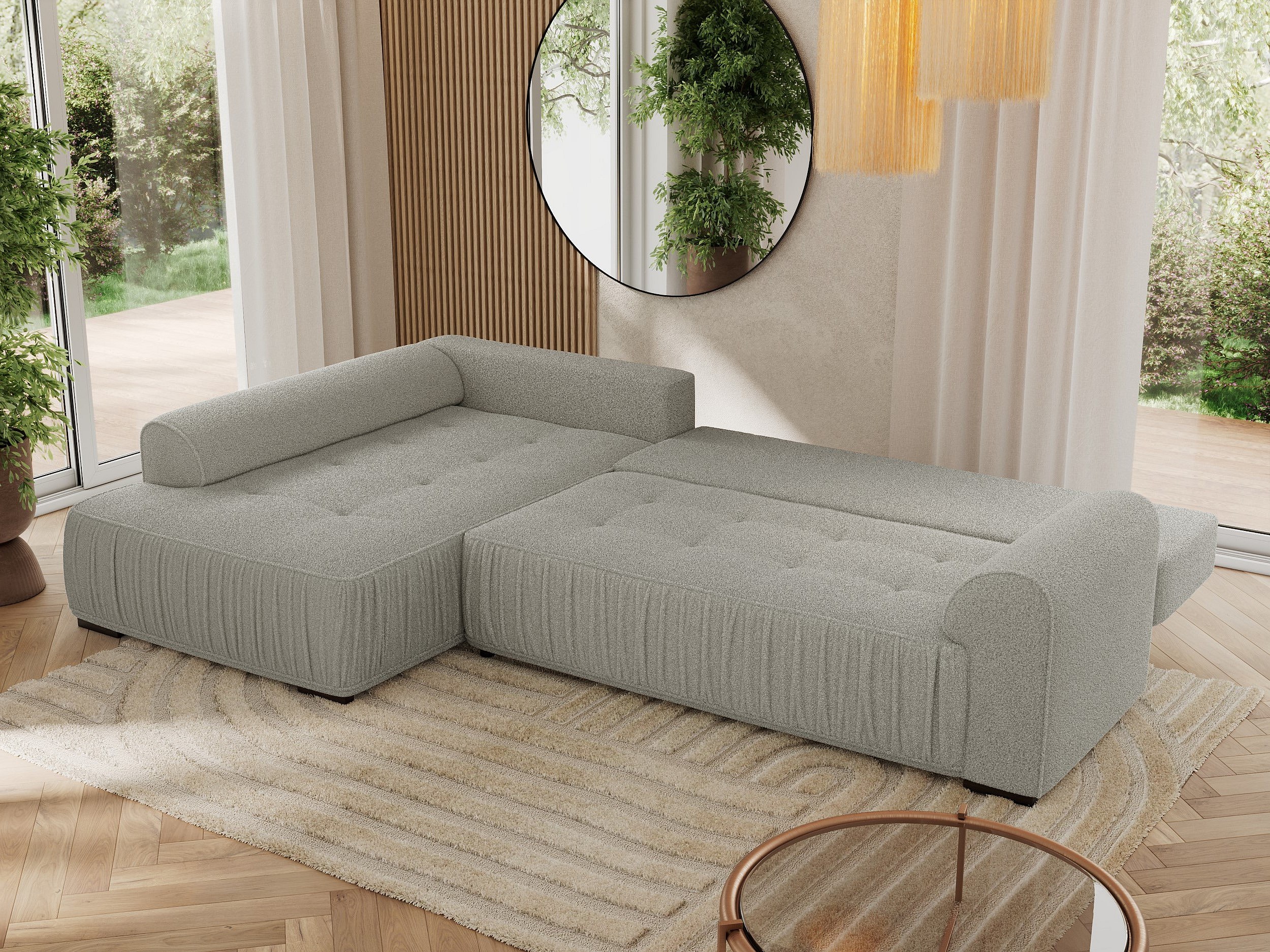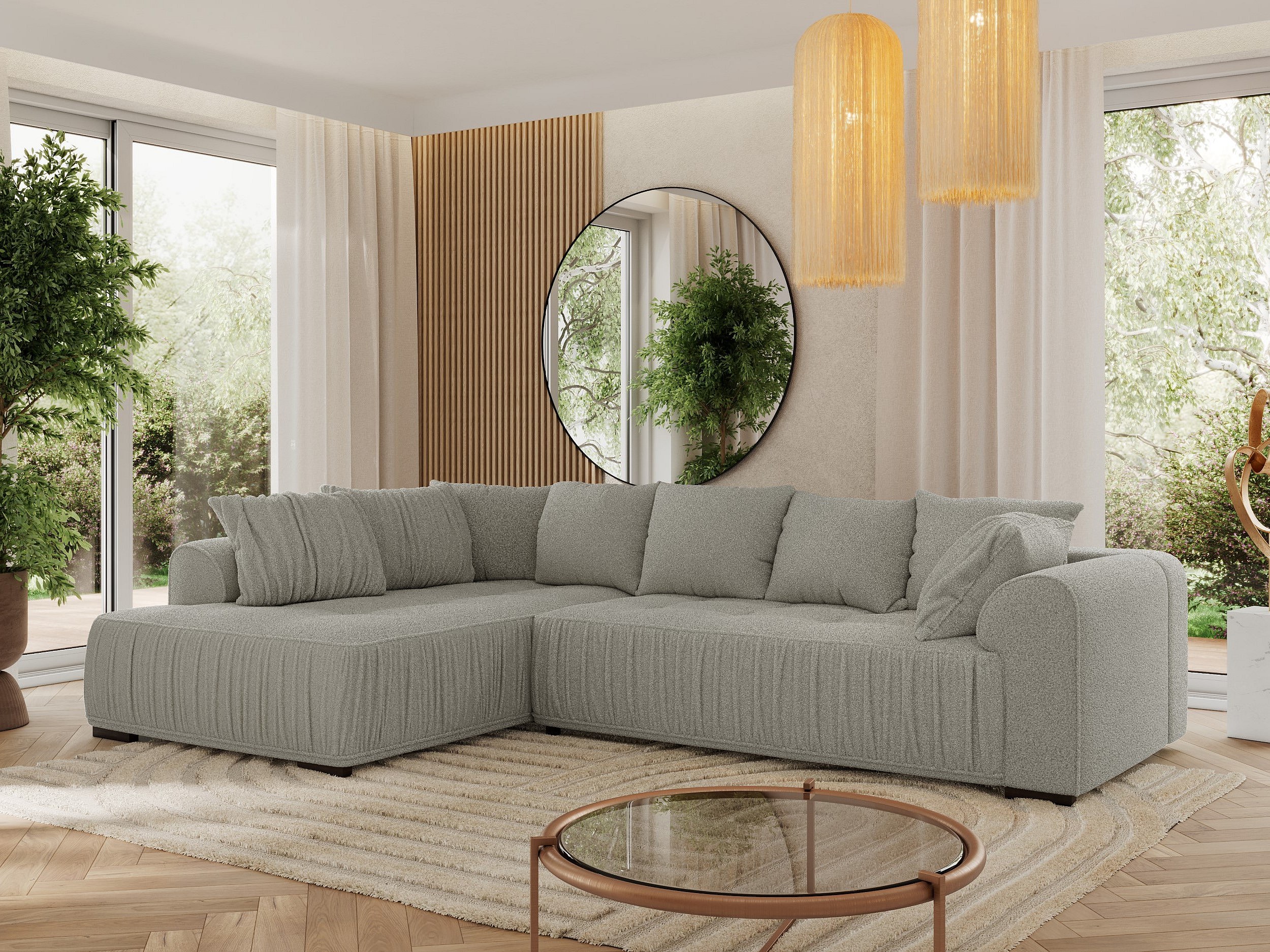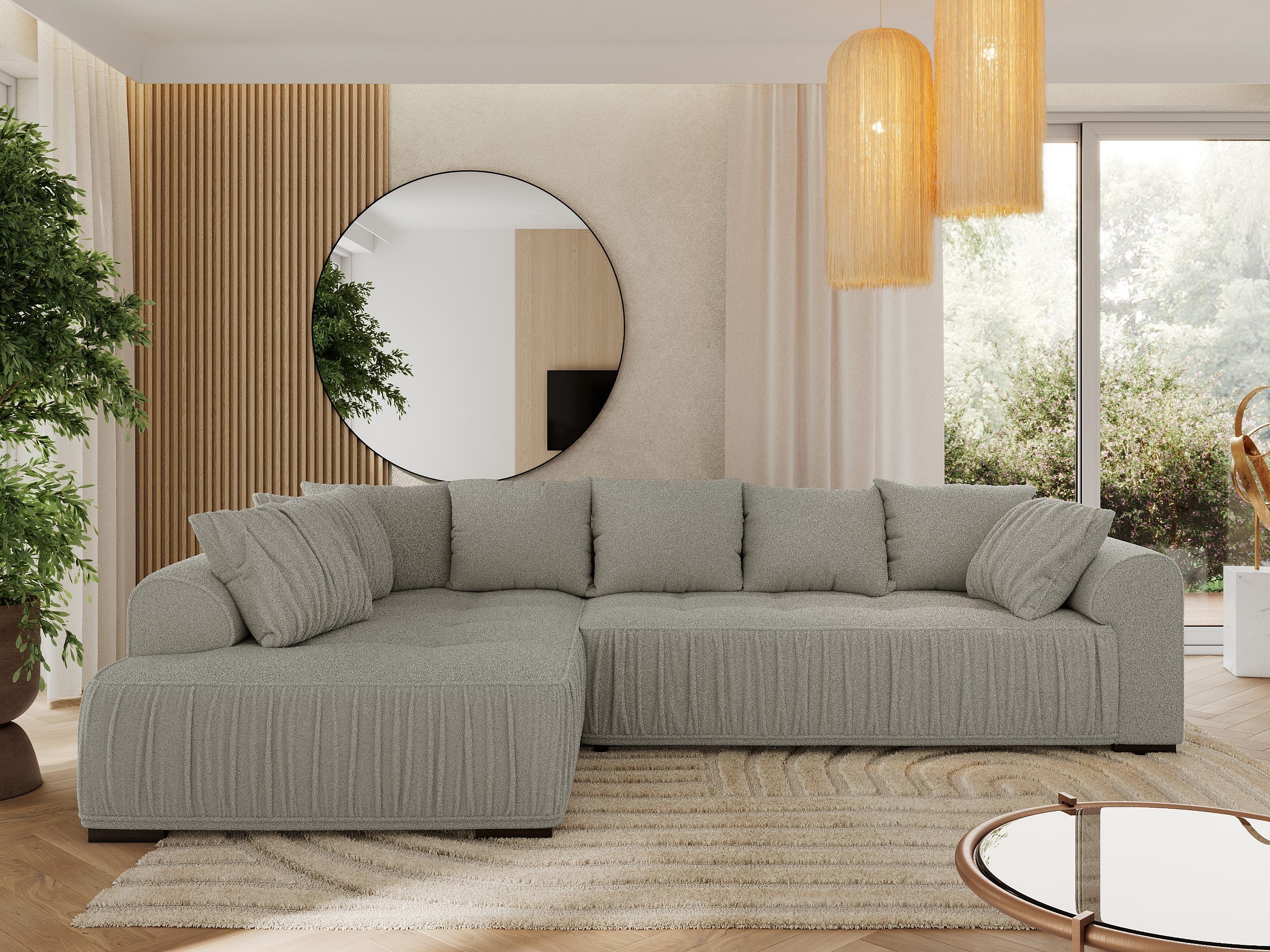 Ecksofa ORTA - Schlaffunktion und Bettkasten, lose Kissen, gesteppter Sitz, L-förmige Ecke - Hellgrau Boucle - Ecke Links