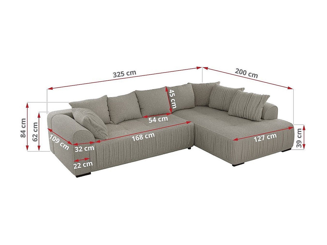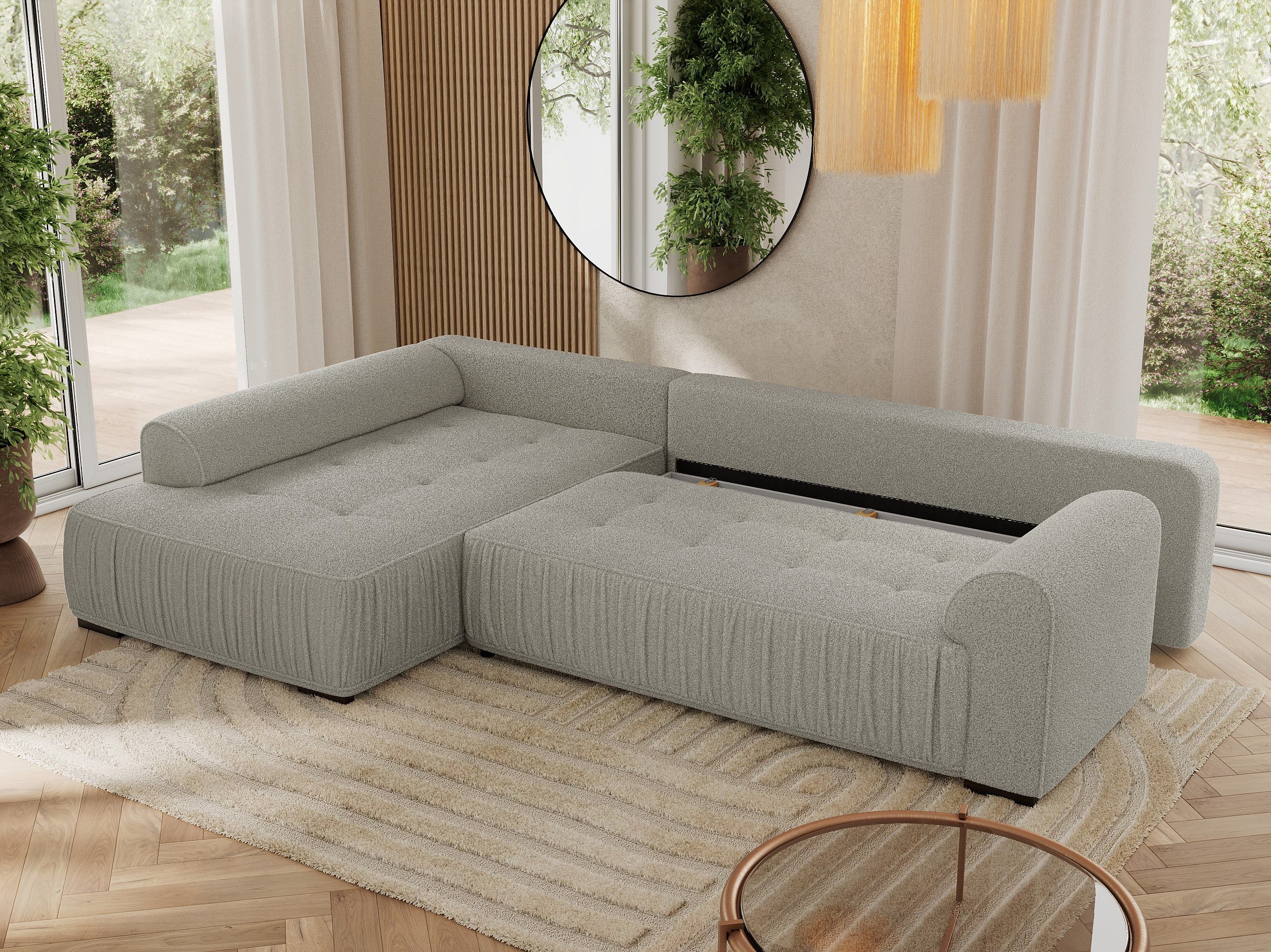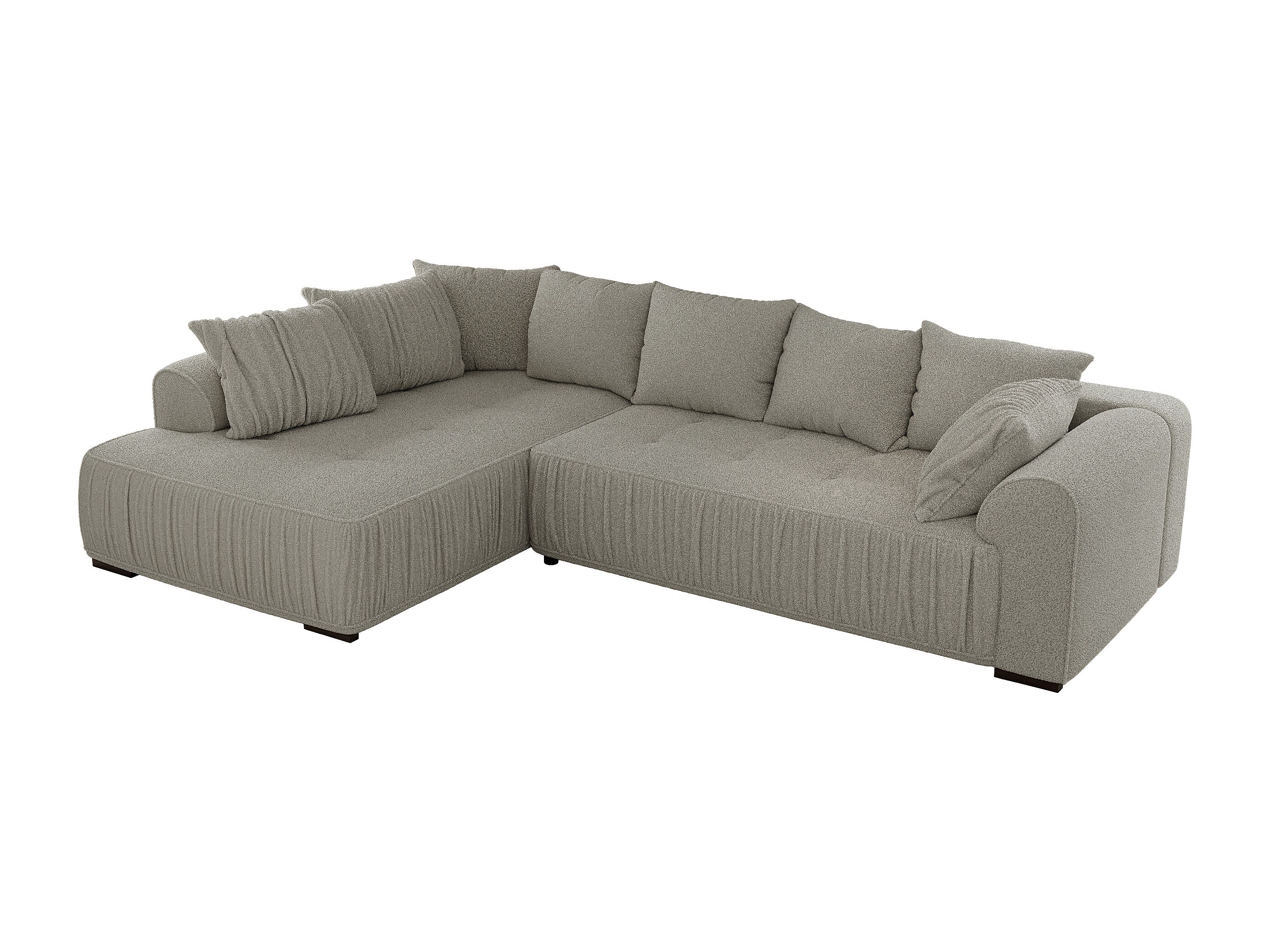 Ecksofa ORTA - Schlaffunktion und Bettkasten, lose Kissen, gesteppter Sitz, L-förmige Ecke - Hellgrau Boucle - Ecke Links