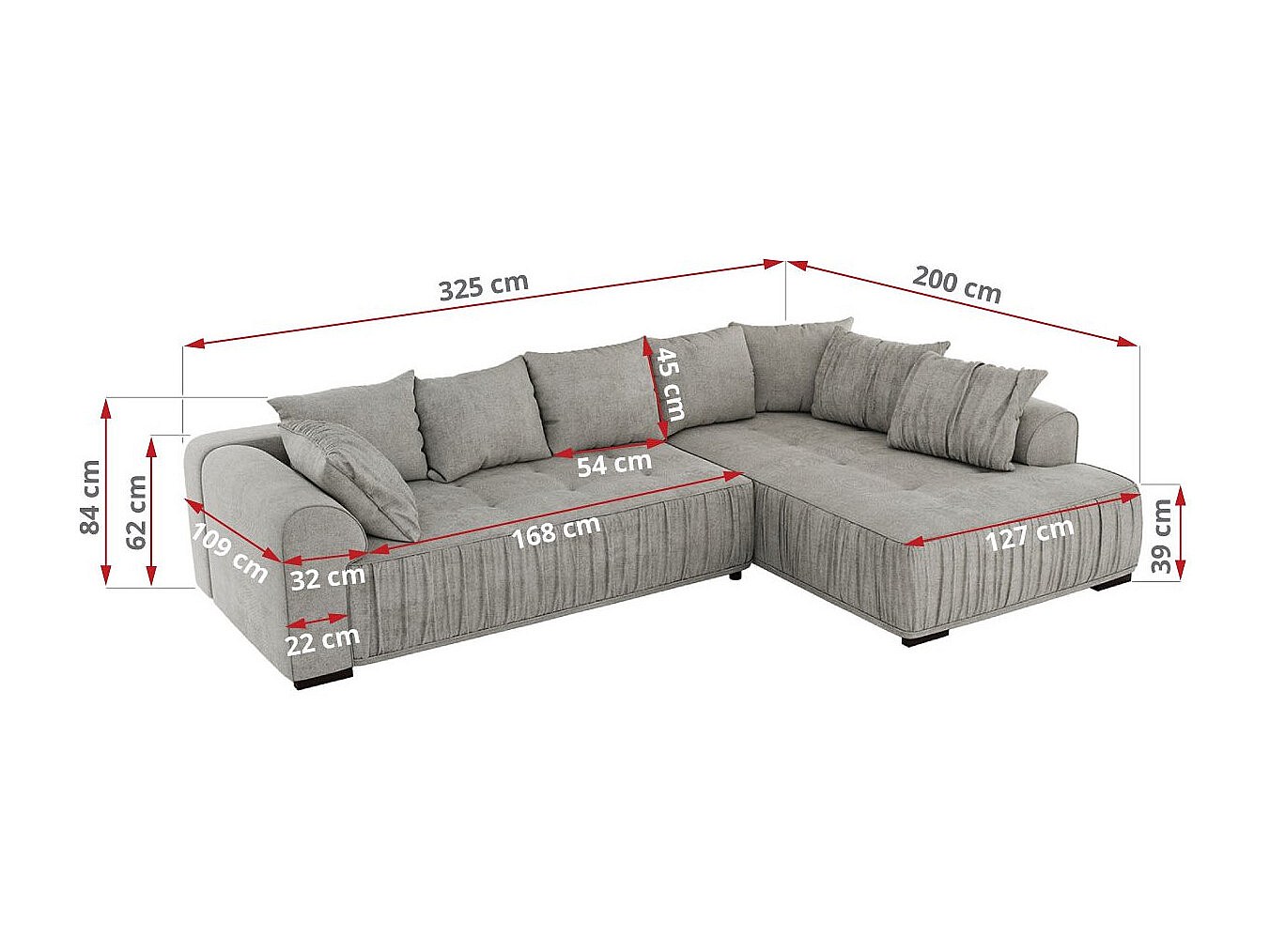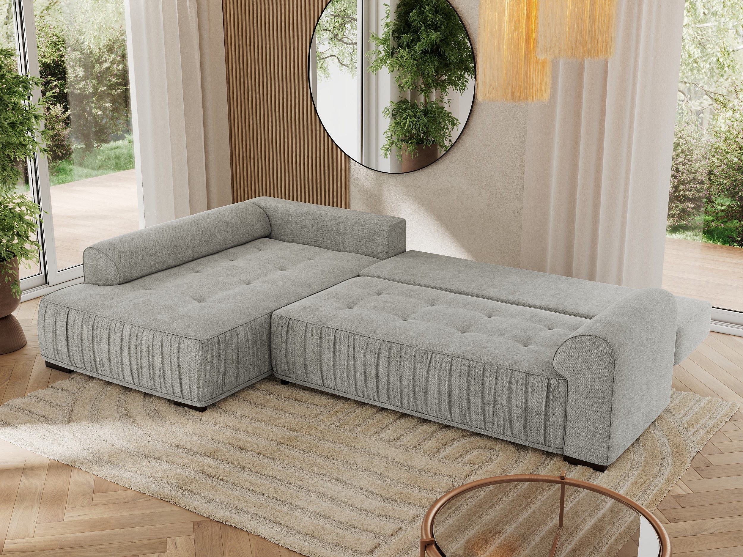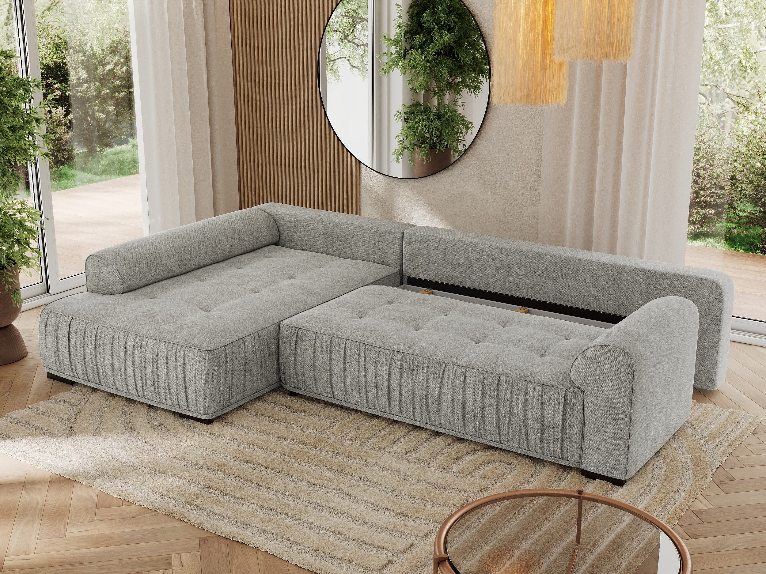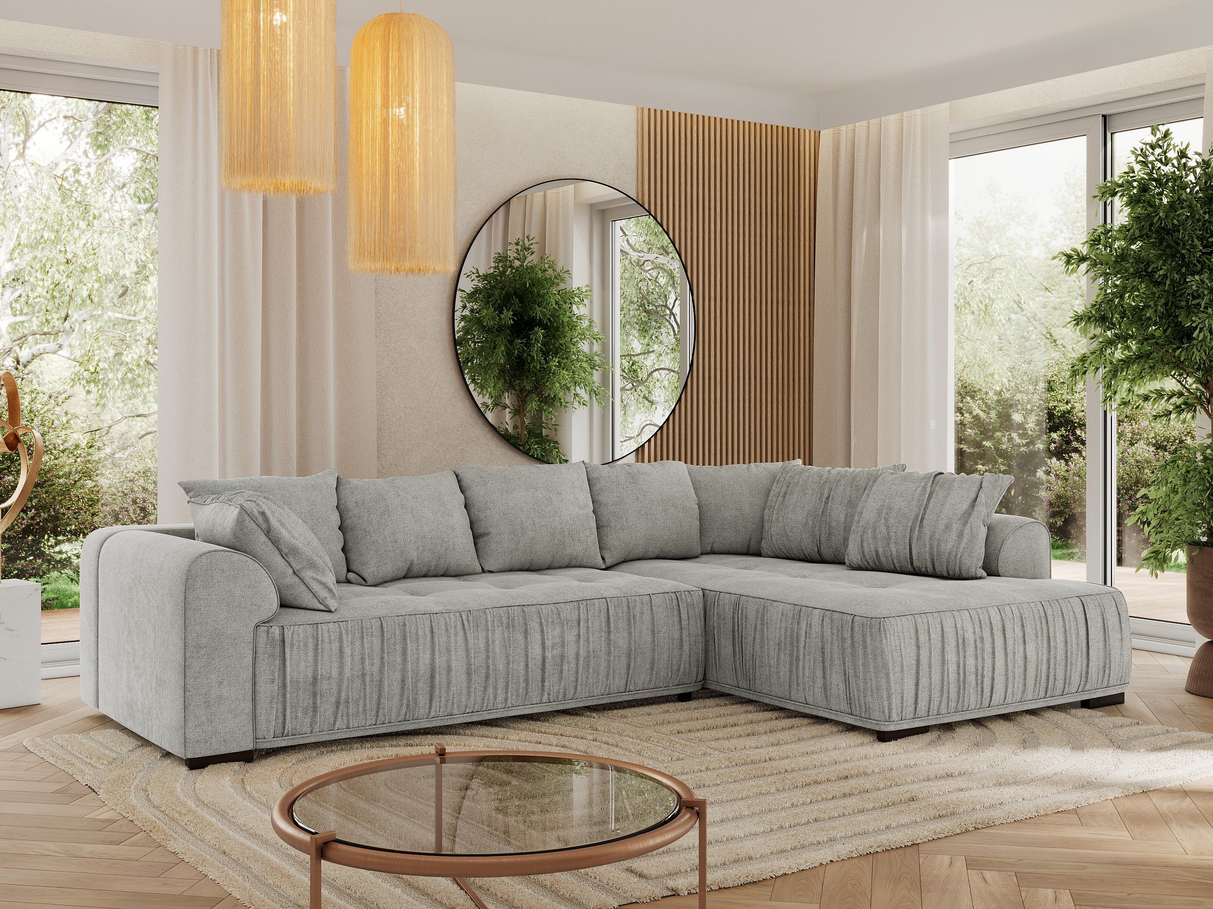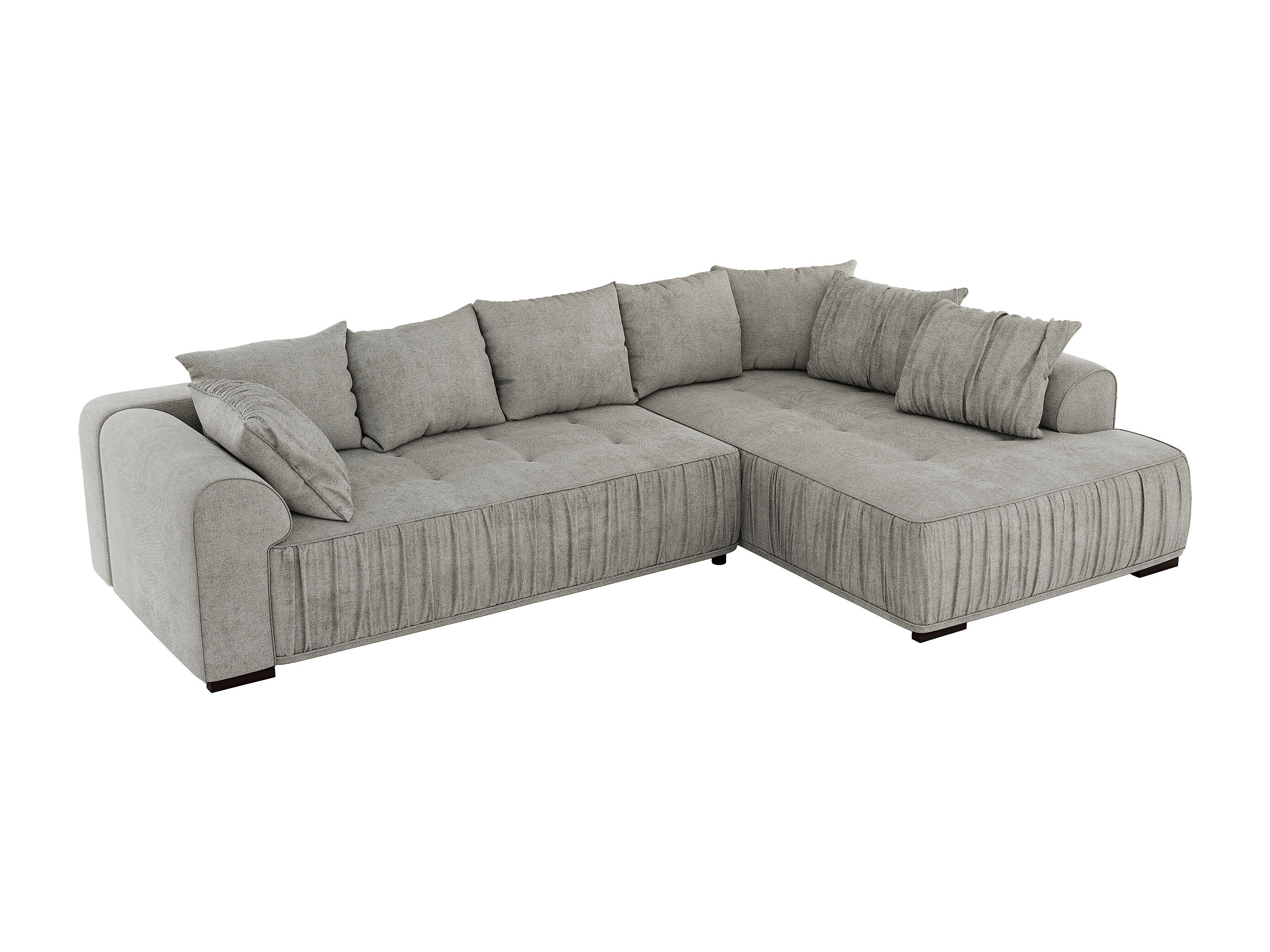 Ecksofa ORTA - Schlaffunktion und Bettkasten, lose Kissen, gesteppter Sitz, L-förmige Ecke - Hellgrau Stukture - Ecke Rechts