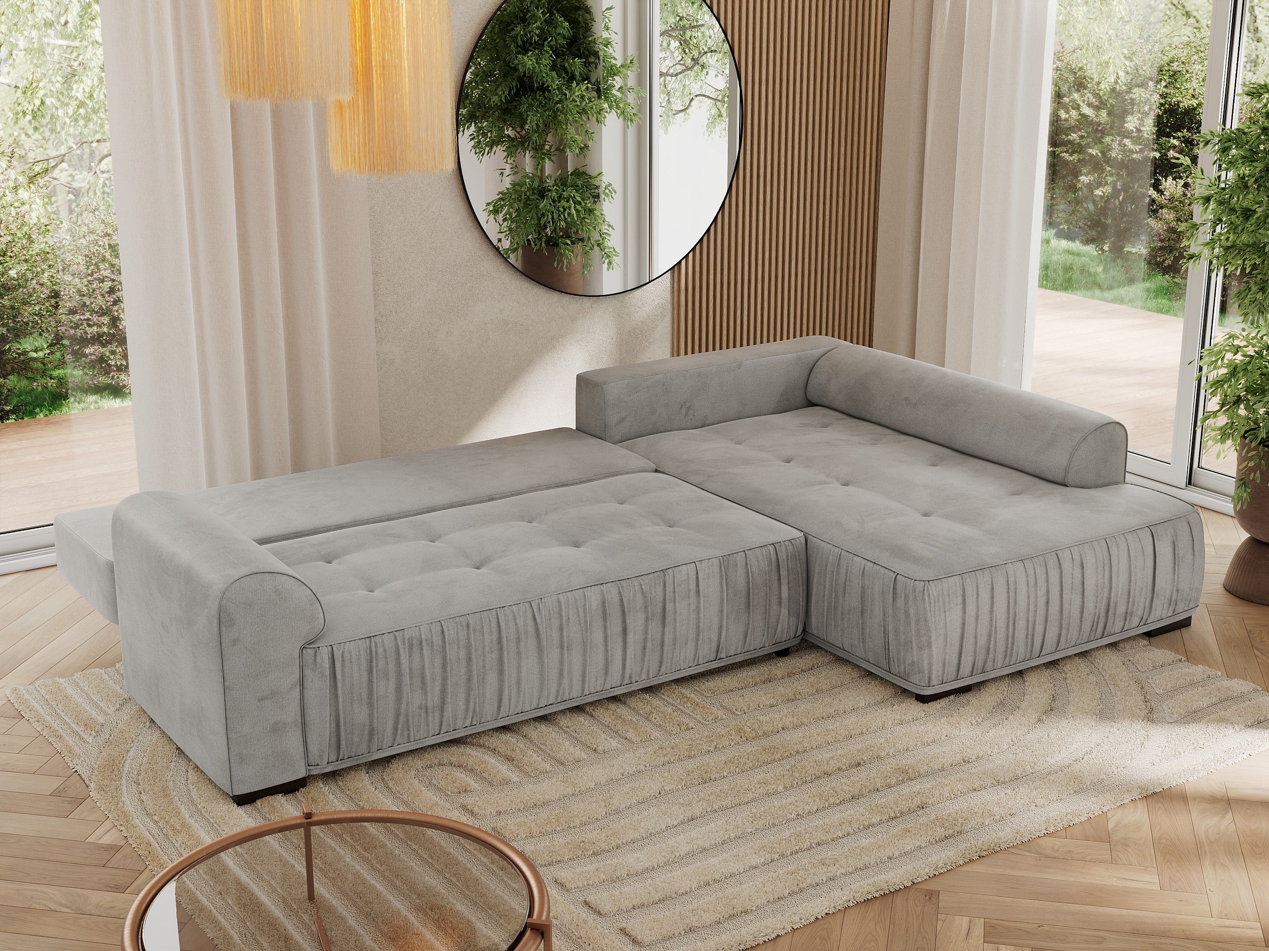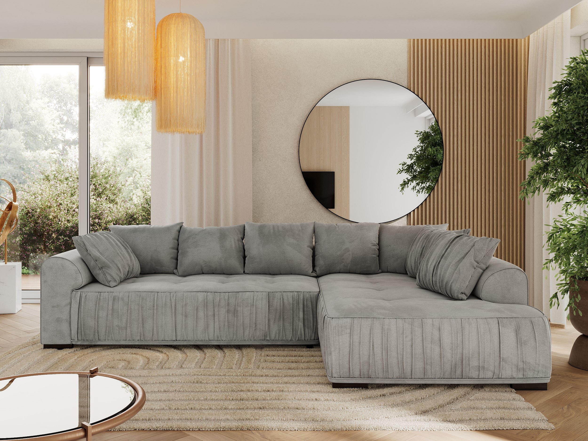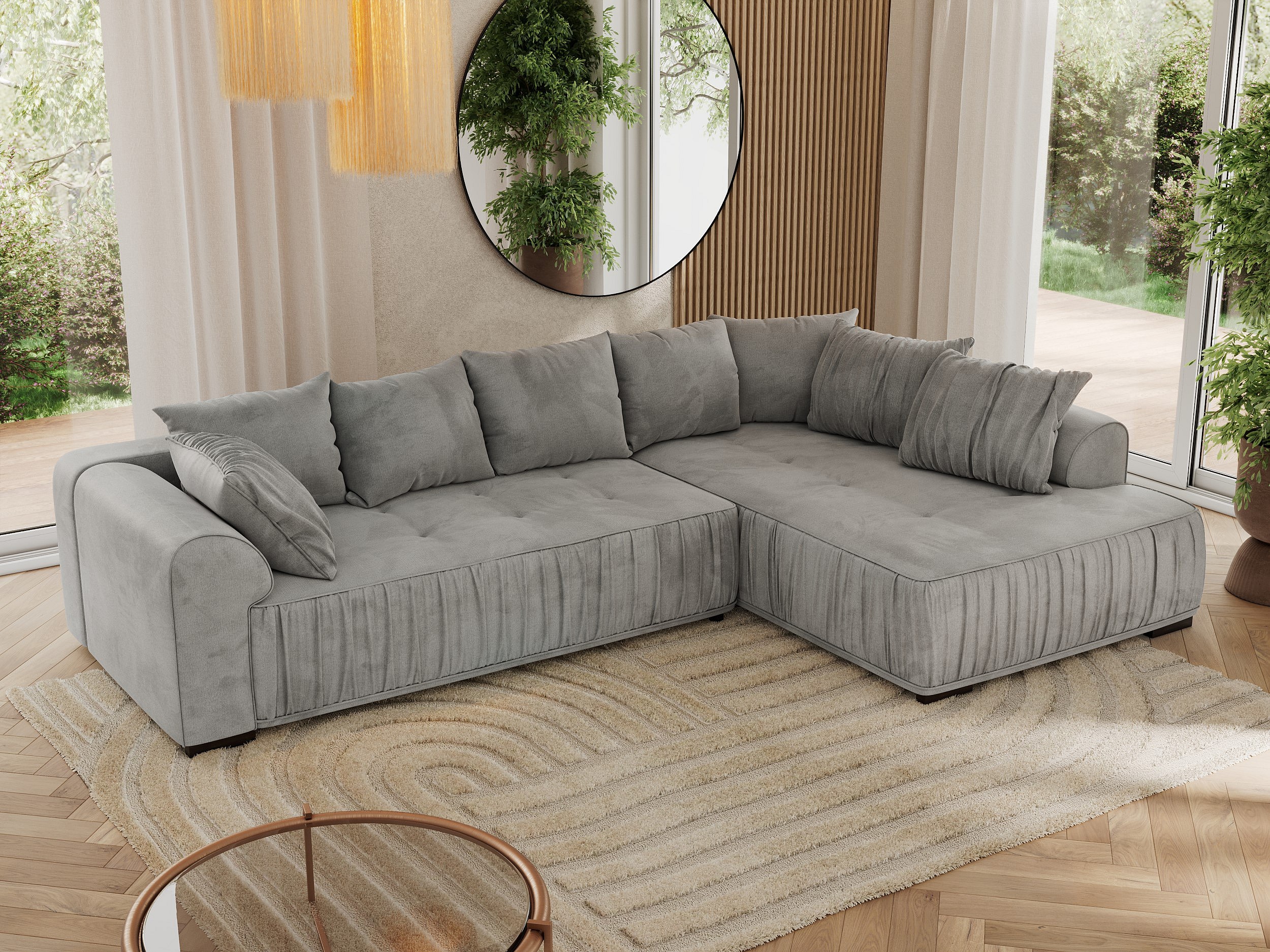Ecksofa ORTA - Schlaffunktion und Bettkasten, lose Kissen, gesteppter Sitz, L-förmige Ecke - Hellgrau Velvet - Ecke Rechts