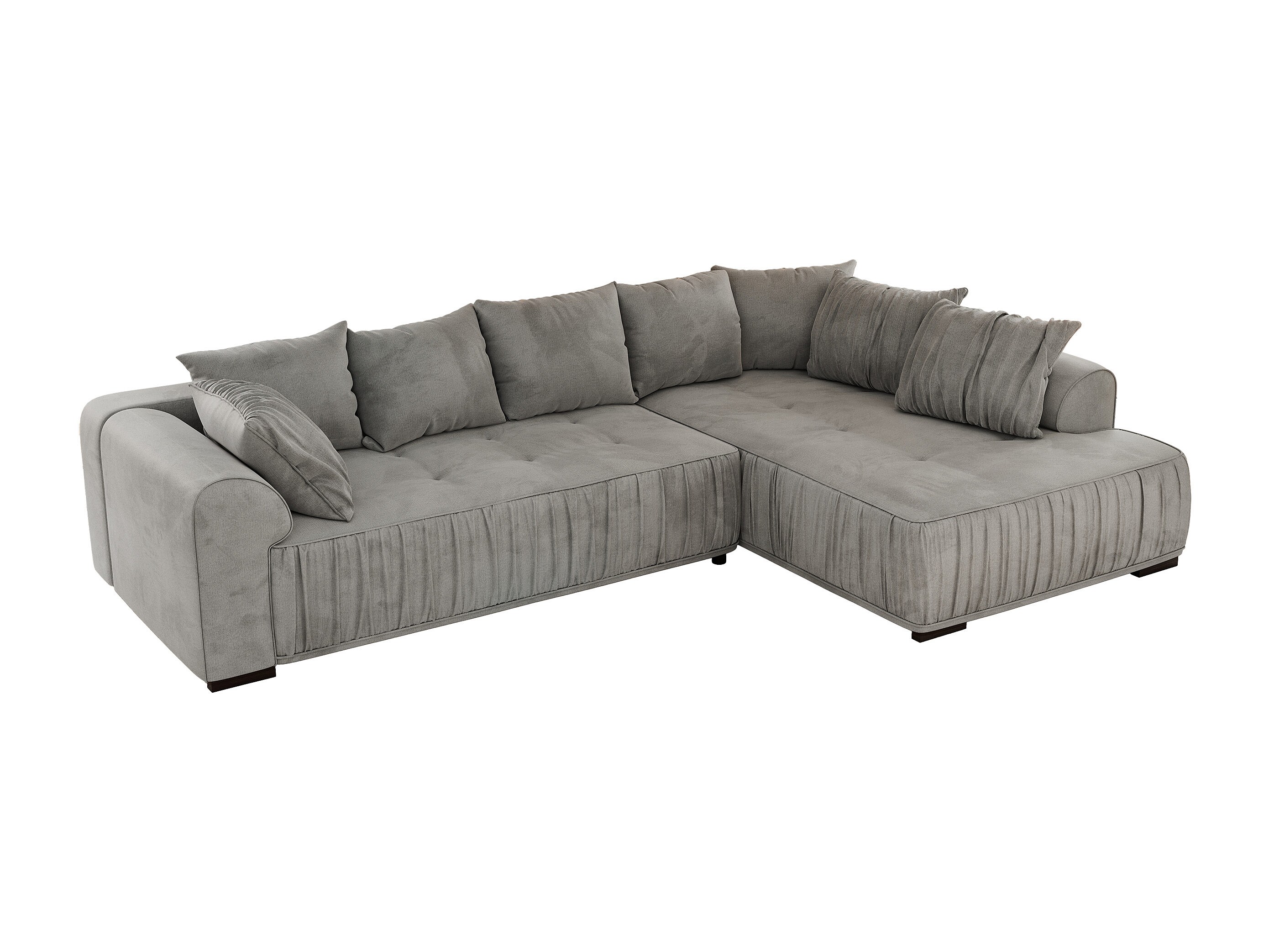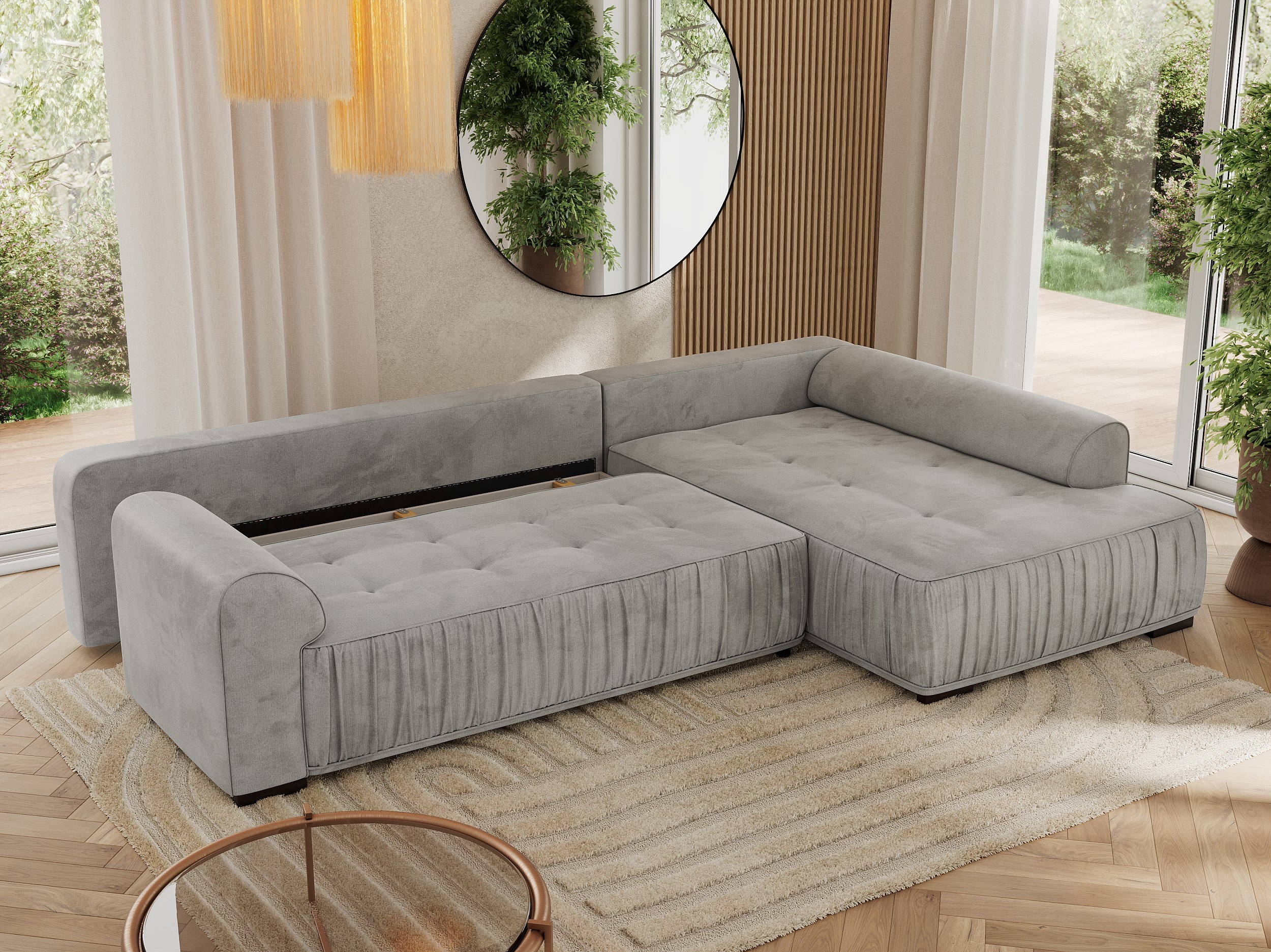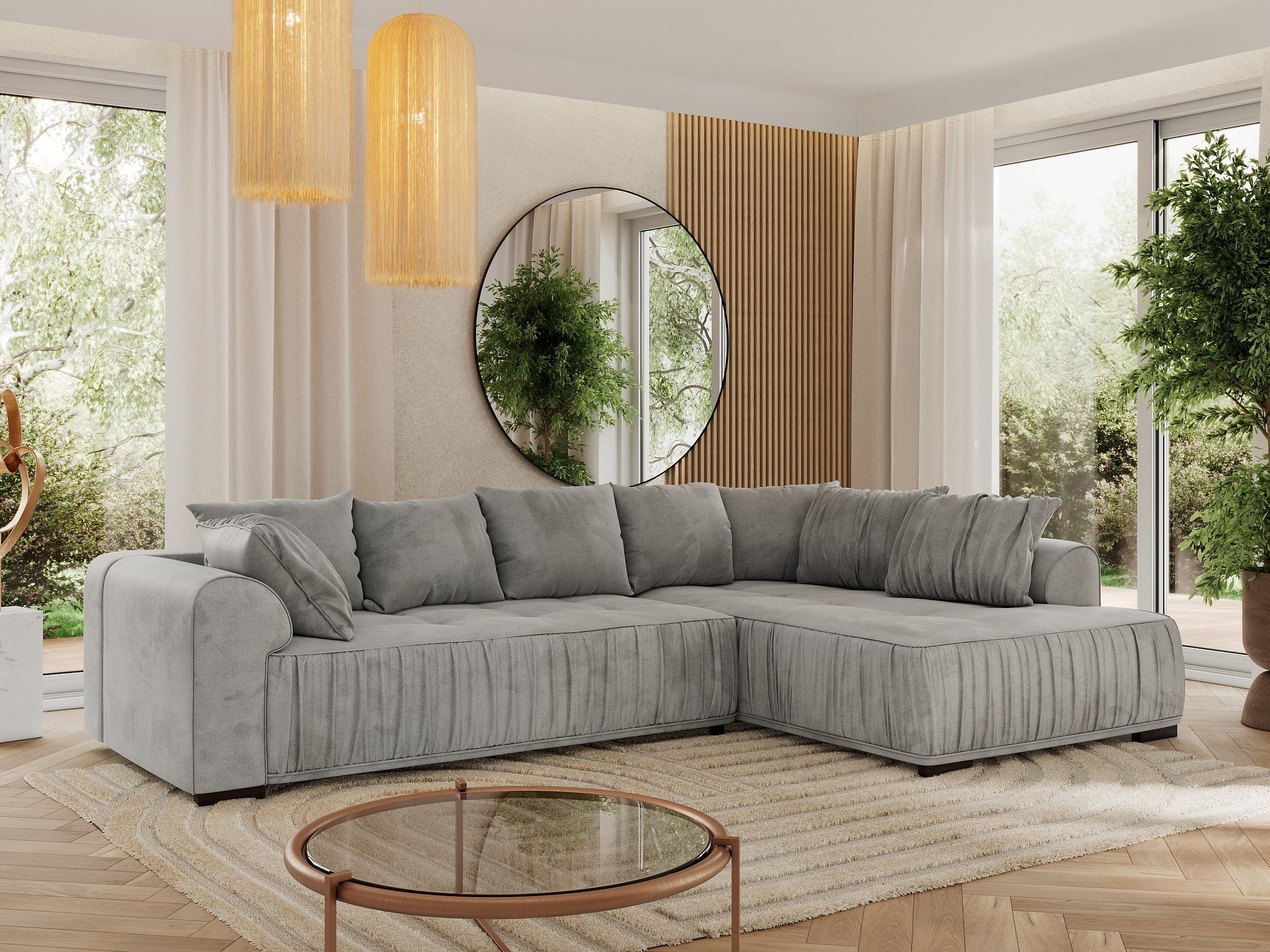 Ecksofa ORTA - Schlaffunktion und Bettkasten, lose Kissen, gesteppter Sitz, L-förmige Ecke - Hellgrau Velvet - Ecke Rechts