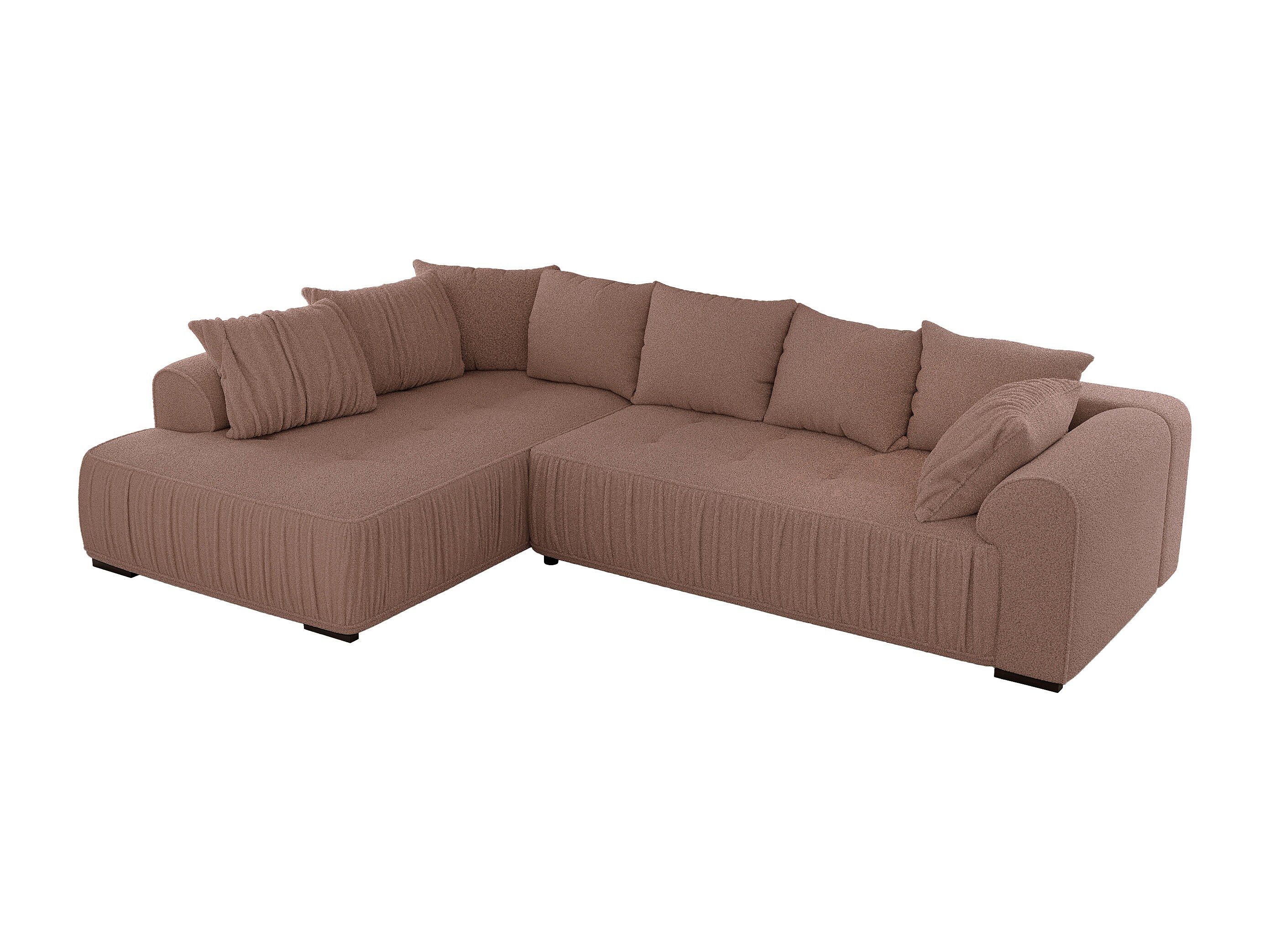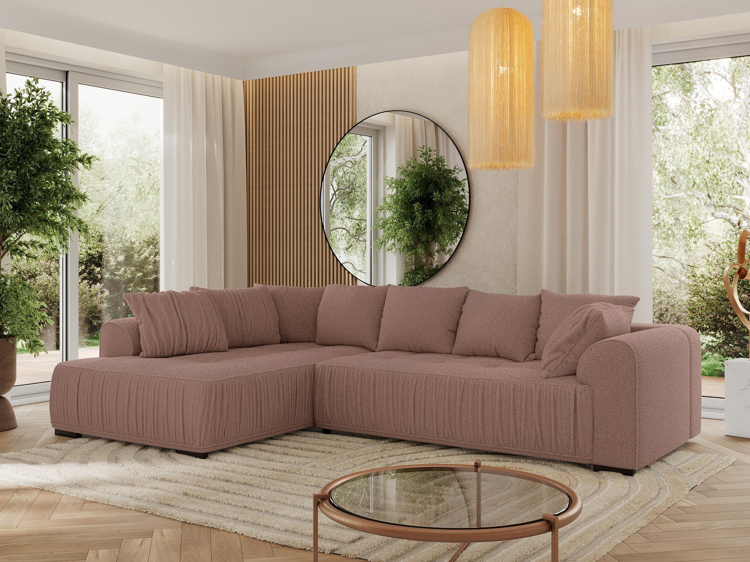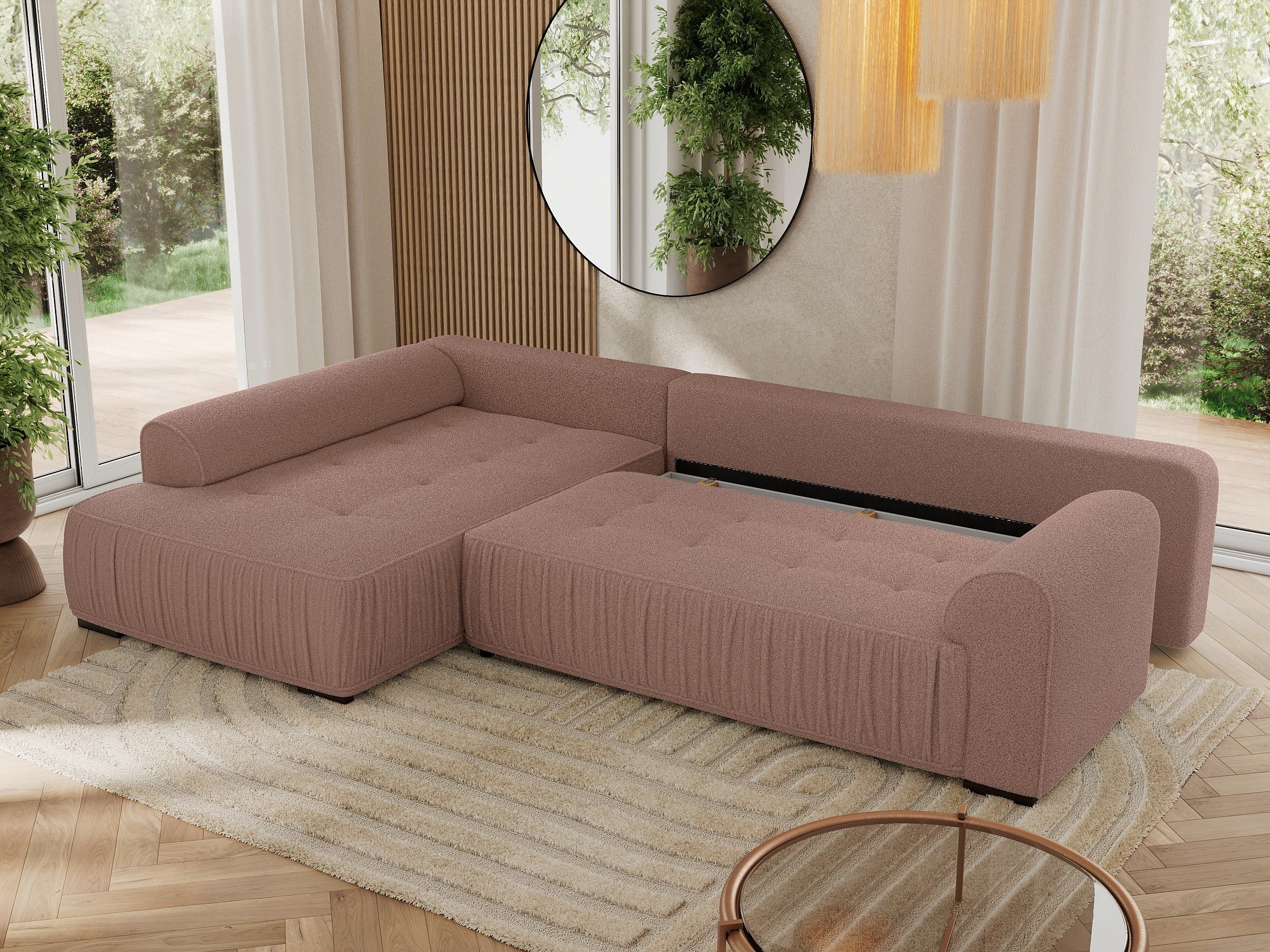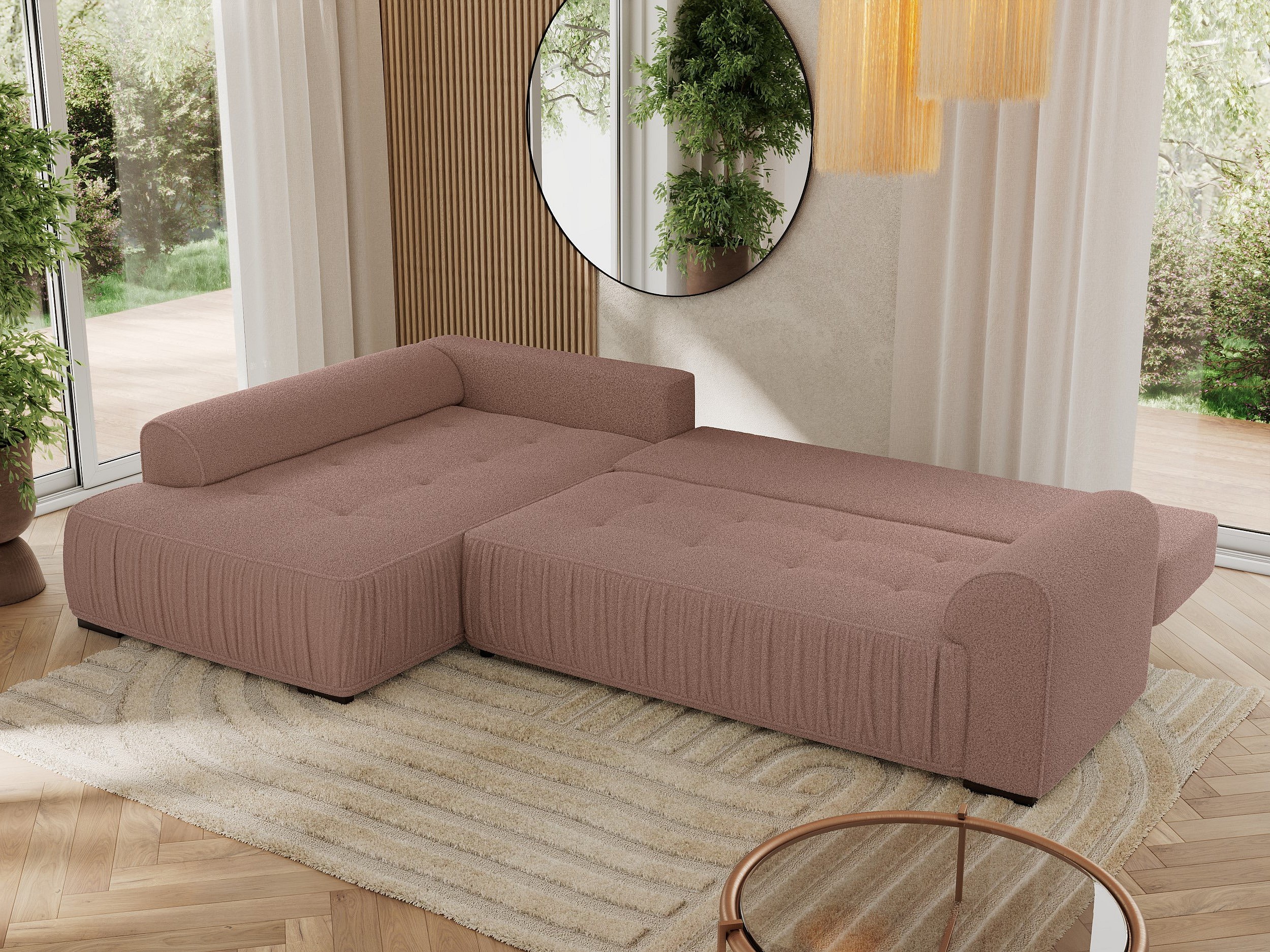 Ecksofa ORTA - Schlaffunktion und Bettkasten, lose Kissen, gesteppter Sitz, L-förmige Ecke - Rosa Boucle - Ecke Links