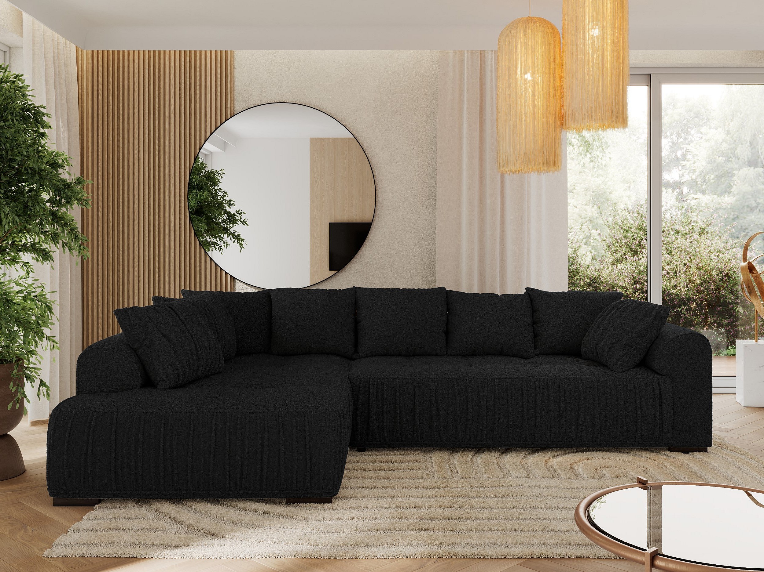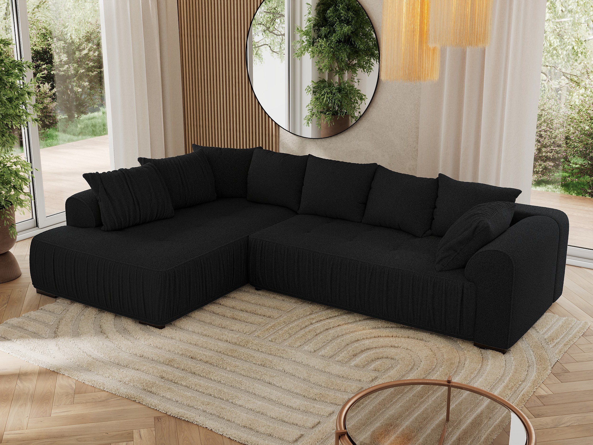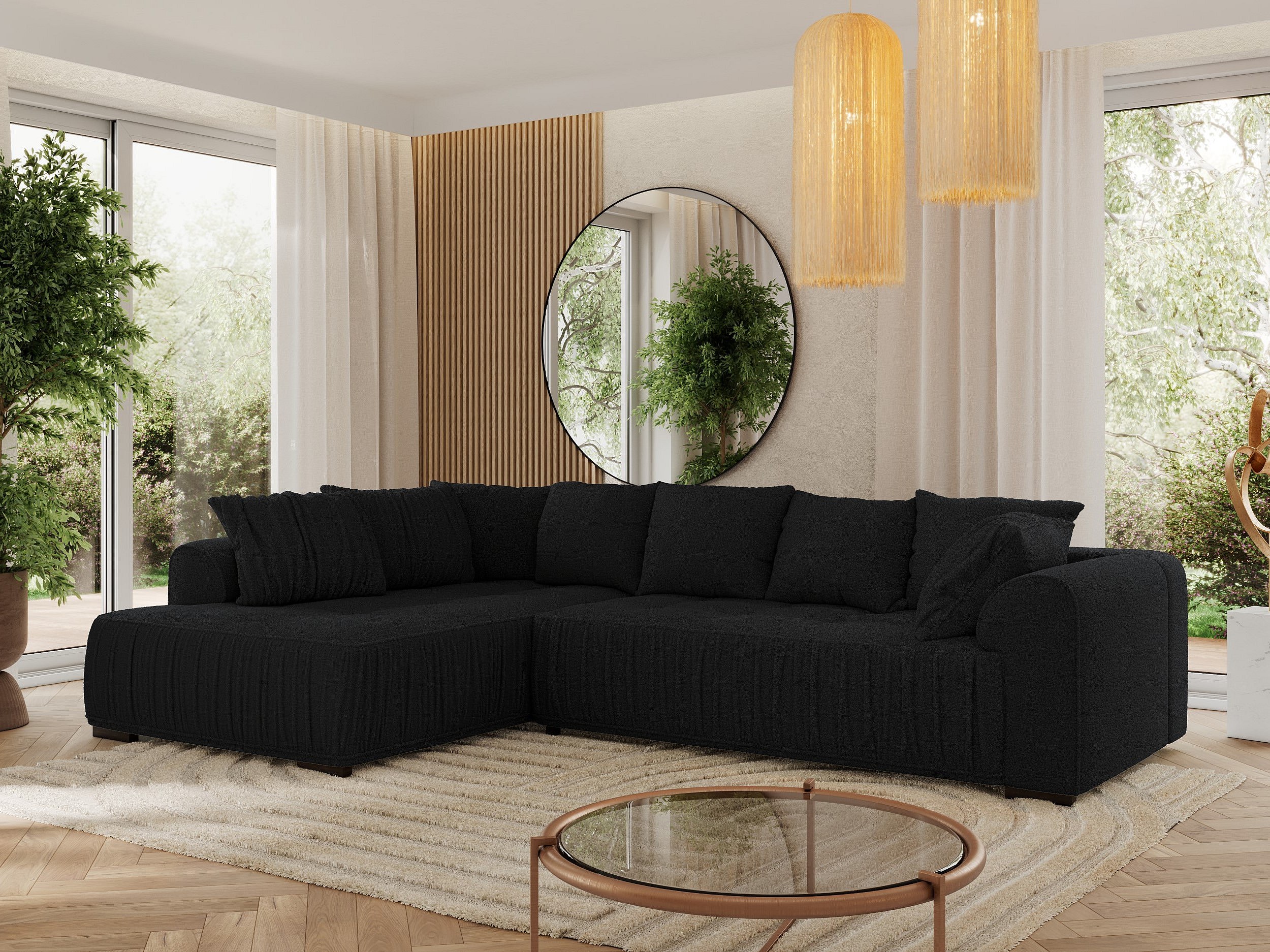 Ecksofa ORTA - Schlaffunktion und Bettkasten, lose Kissen, gesteppter Sitz, L-förmige Ecke - Schwarz Boucle - Ecke Links