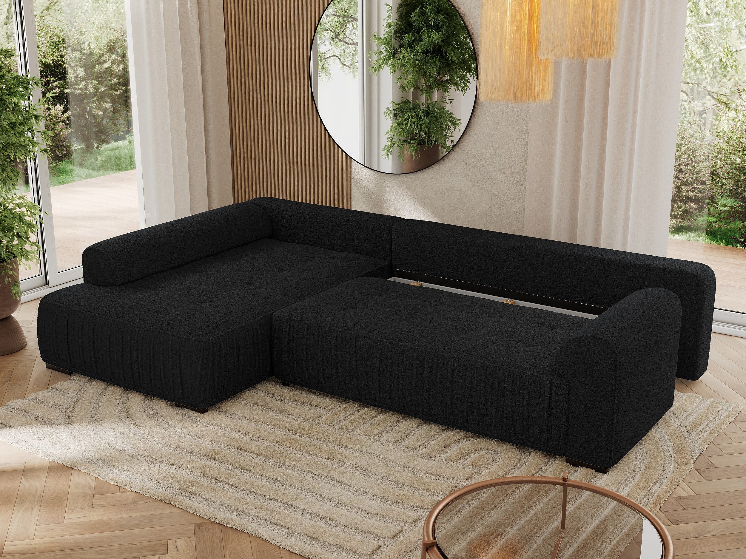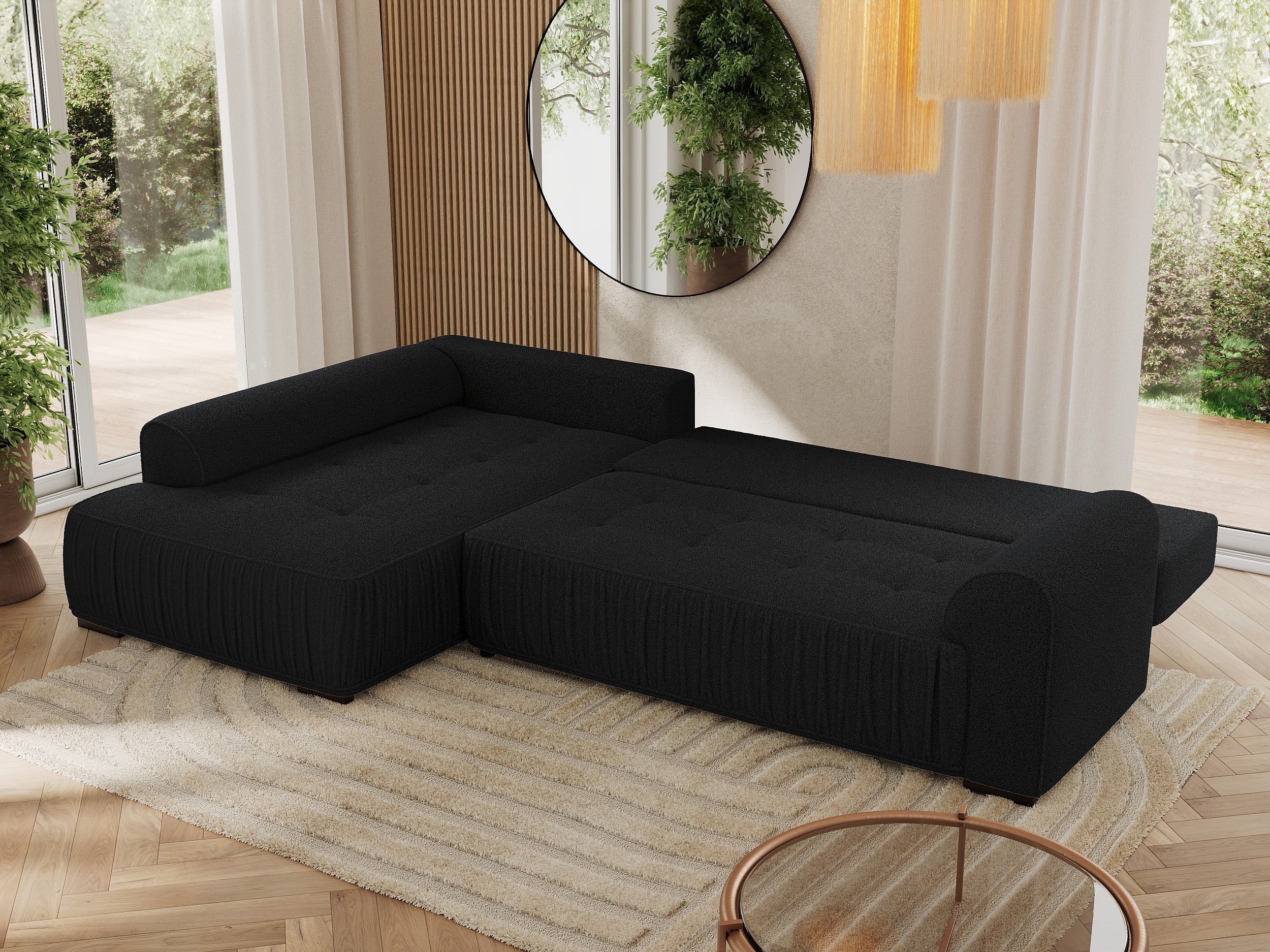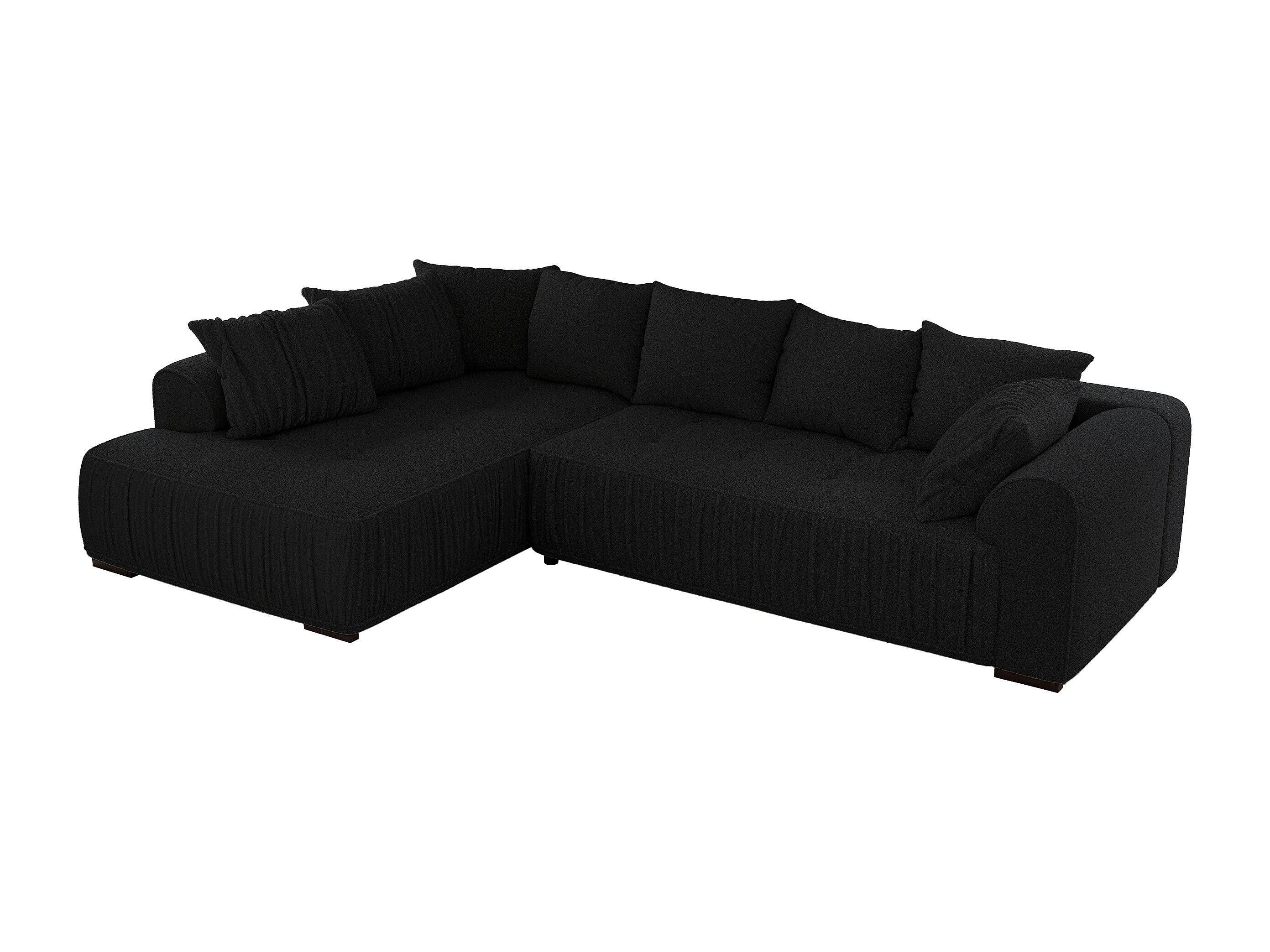 Ecksofa ORTA - Schlaffunktion und Bettkasten, lose Kissen, gesteppter Sitz, L-förmige Ecke - Schwarz Boucle - Ecke Links