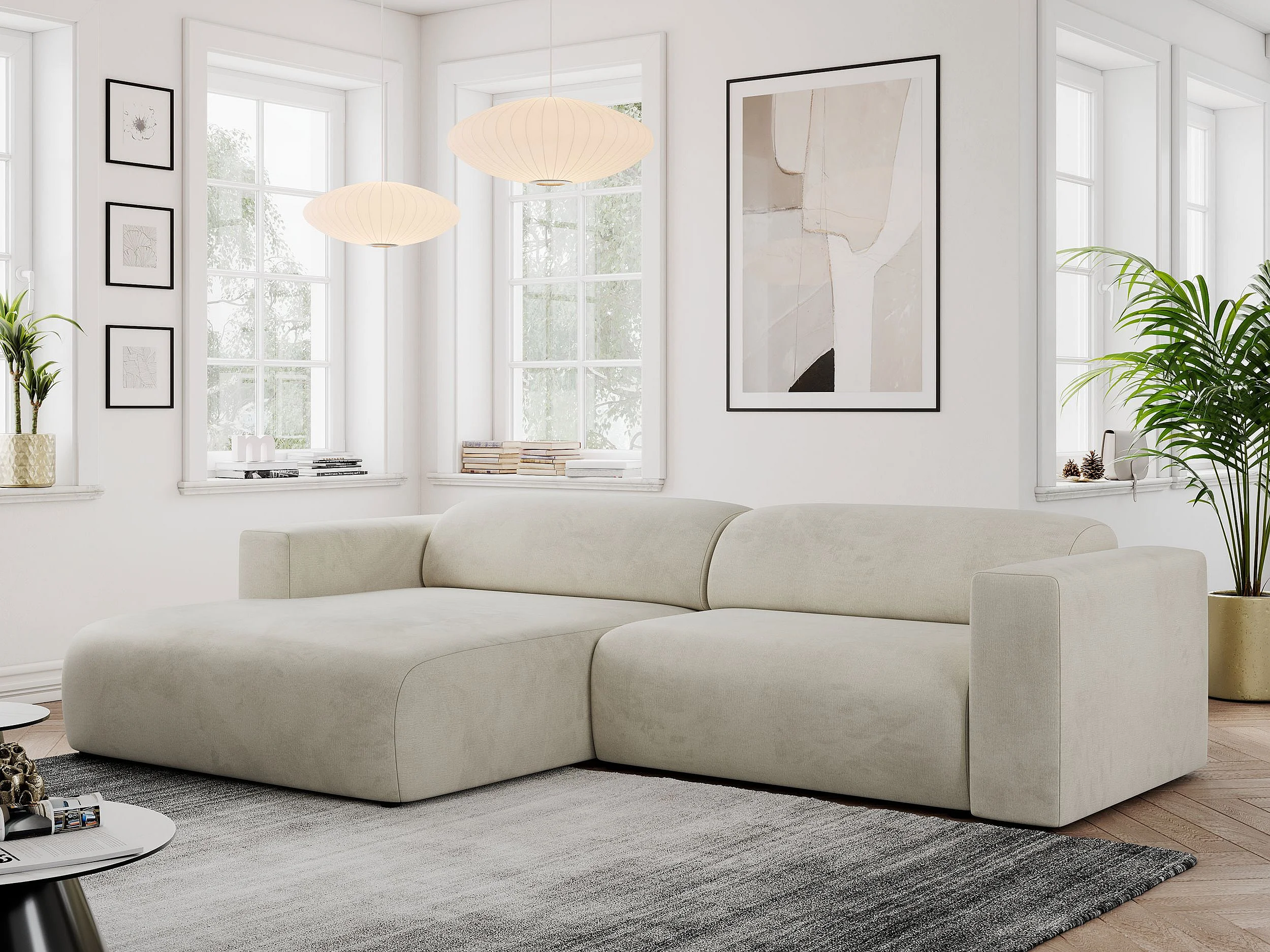Ecksofa PASADENA - mit Armlehnen, Wohnlandschaft, freistehendes Sofa, große Ecke - Beige Velvet - Ecke Links