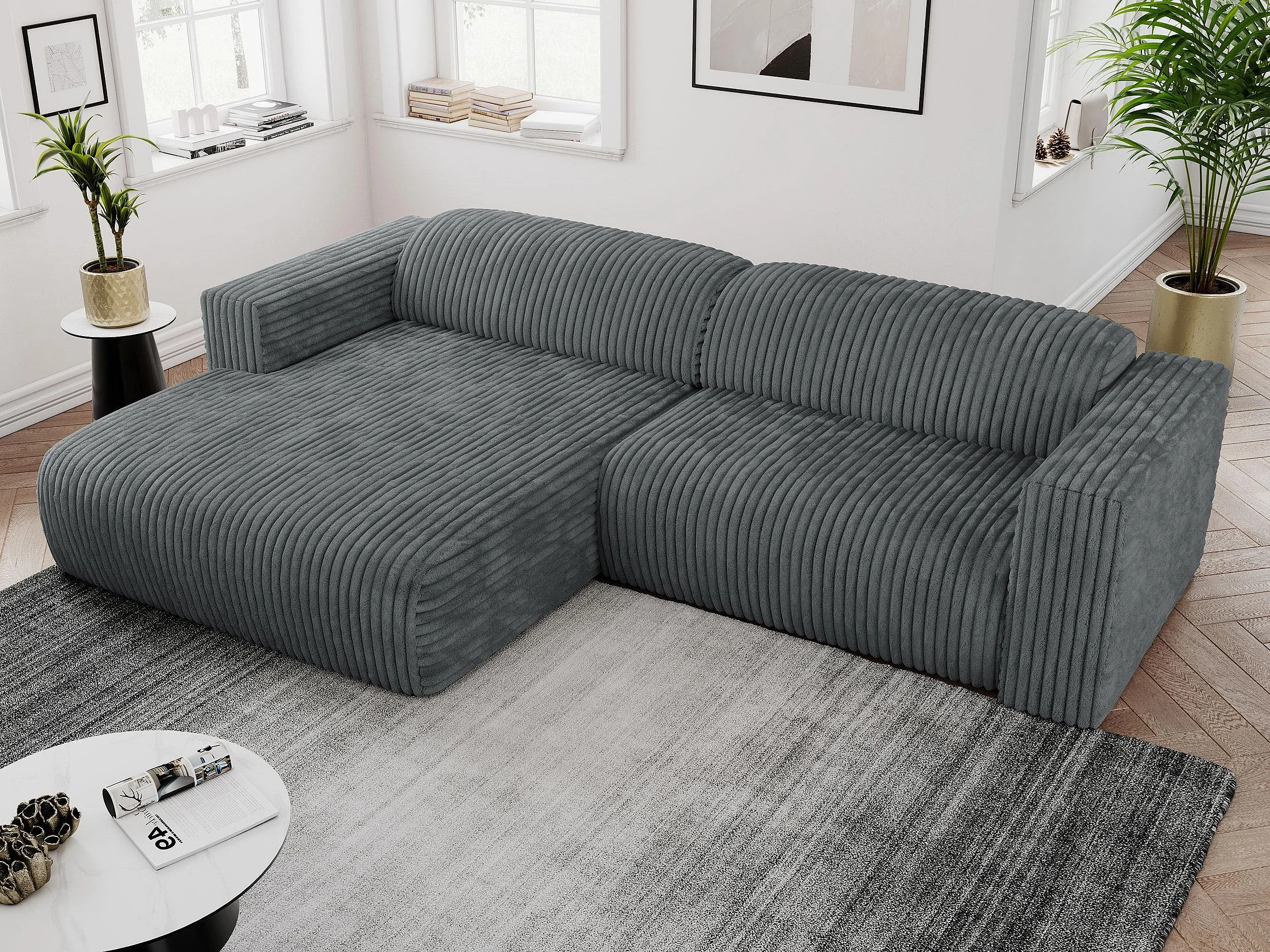 Ecksofa PASADENA - mit Armlehnen, Wohnlandschaft, freistehendes Sofa, große Ecke - Dunkelgrau Cord - Ecke Links