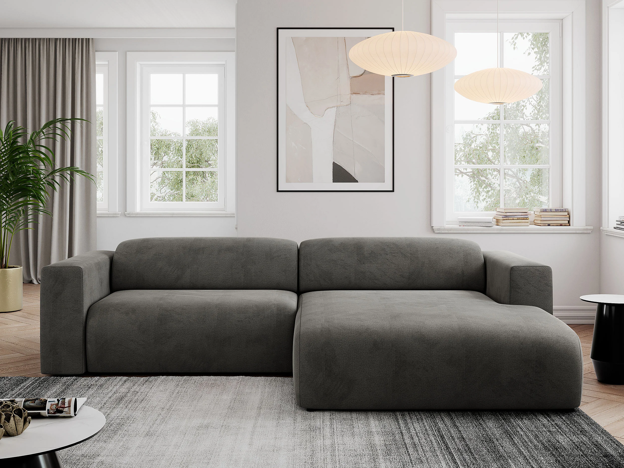 Ecksofa PASADENA - mit Armlehnen, Wohnlandschaft, freistehendes Sofa, große Ecke - Dunkelgrau Velvet - Ecke Rechts