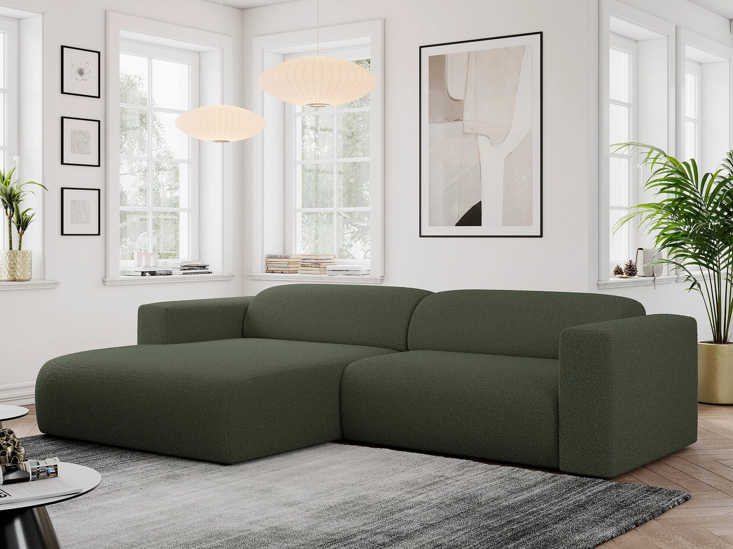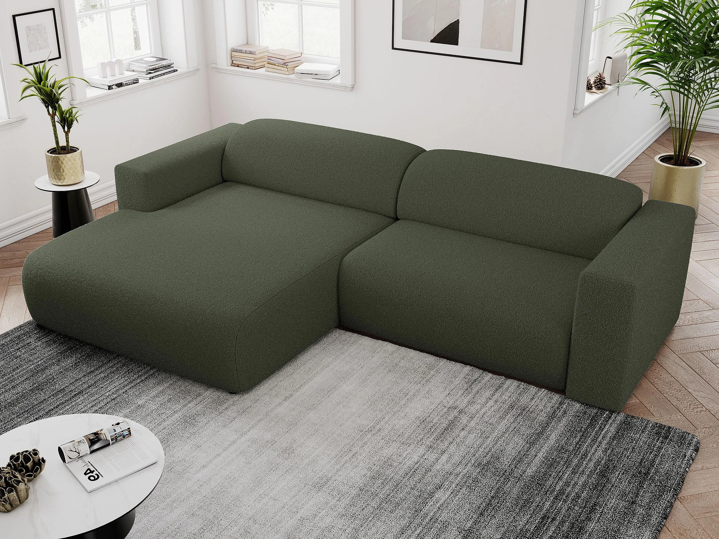 Ecksofa PASADENA - mit Armlehnen, Wohnlandschaft, freistehendes Sofa, große Ecke - Grün Boucle - Ecke Links