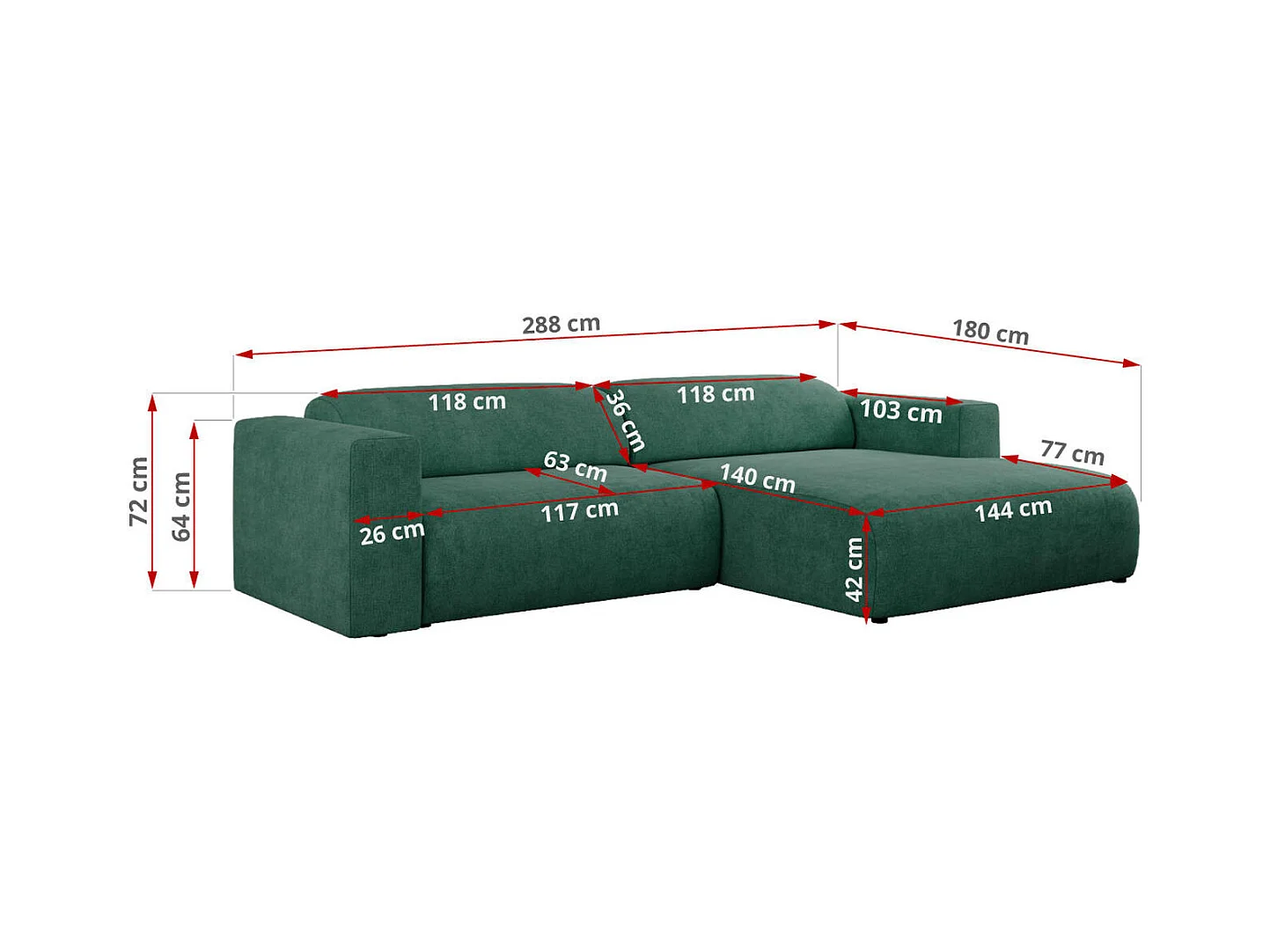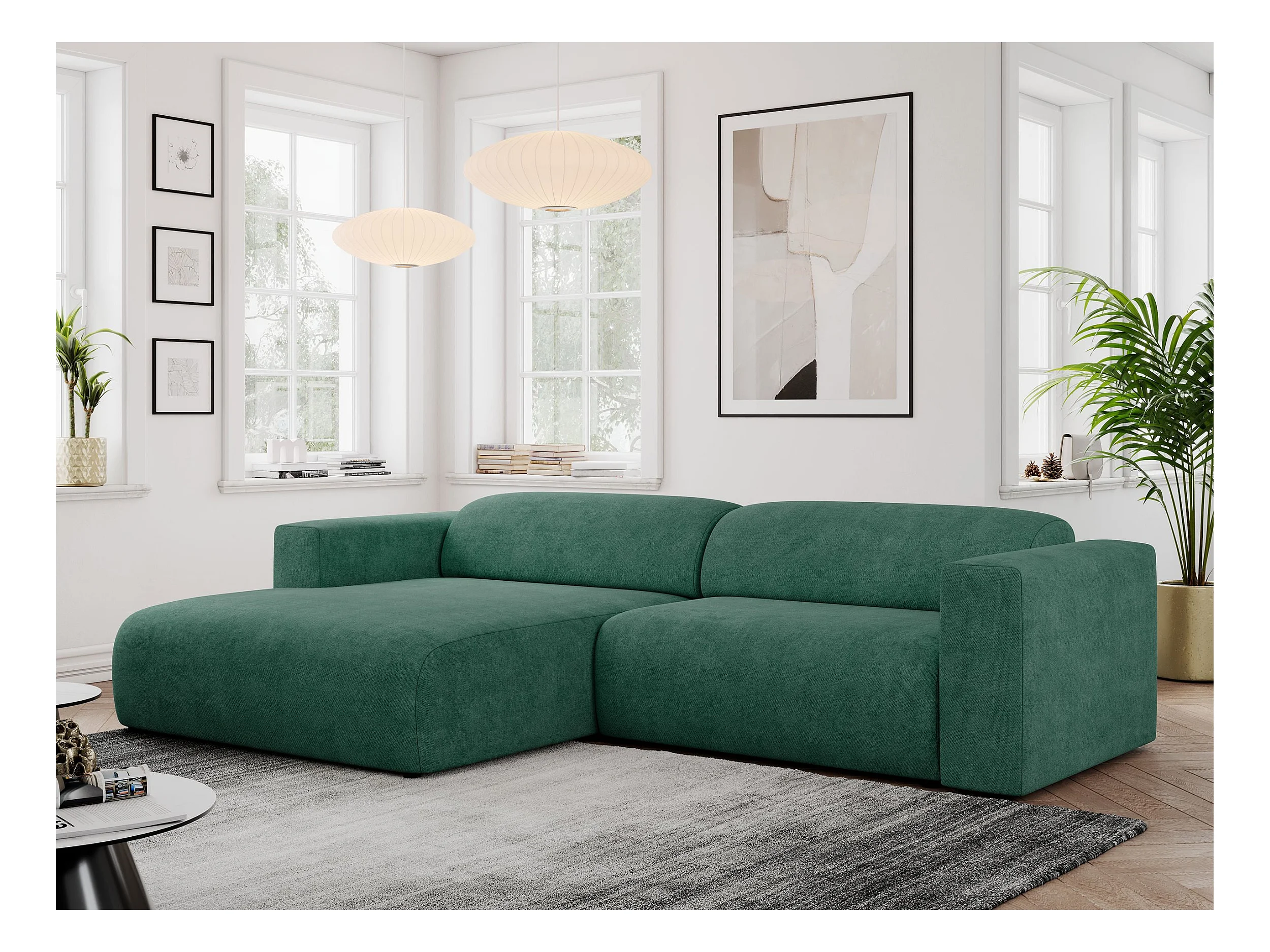 Ecksofa PASADENA - mit Armlehnen, Wohnlandschaft, freistehendes Sofa, große Ecke - Grün Stukture - Ecke Links