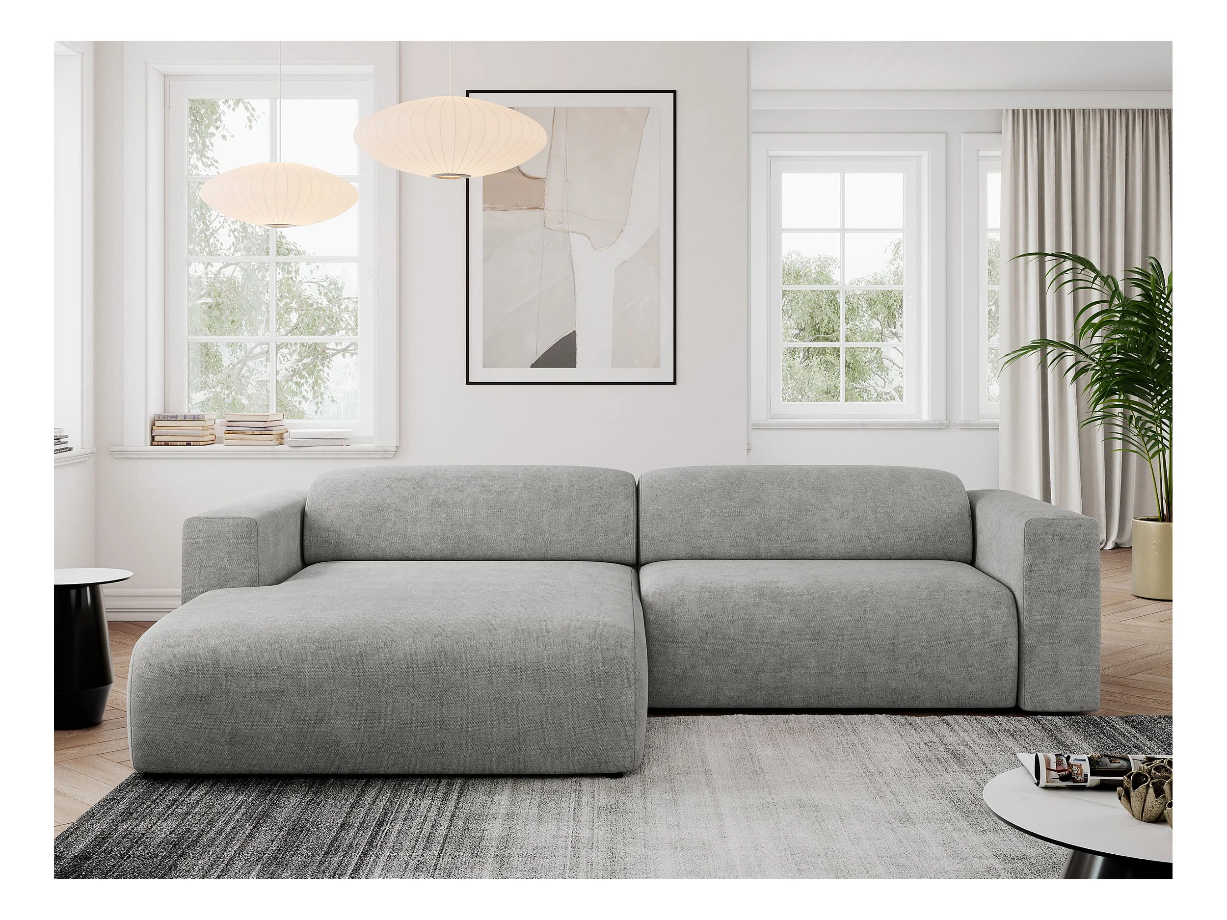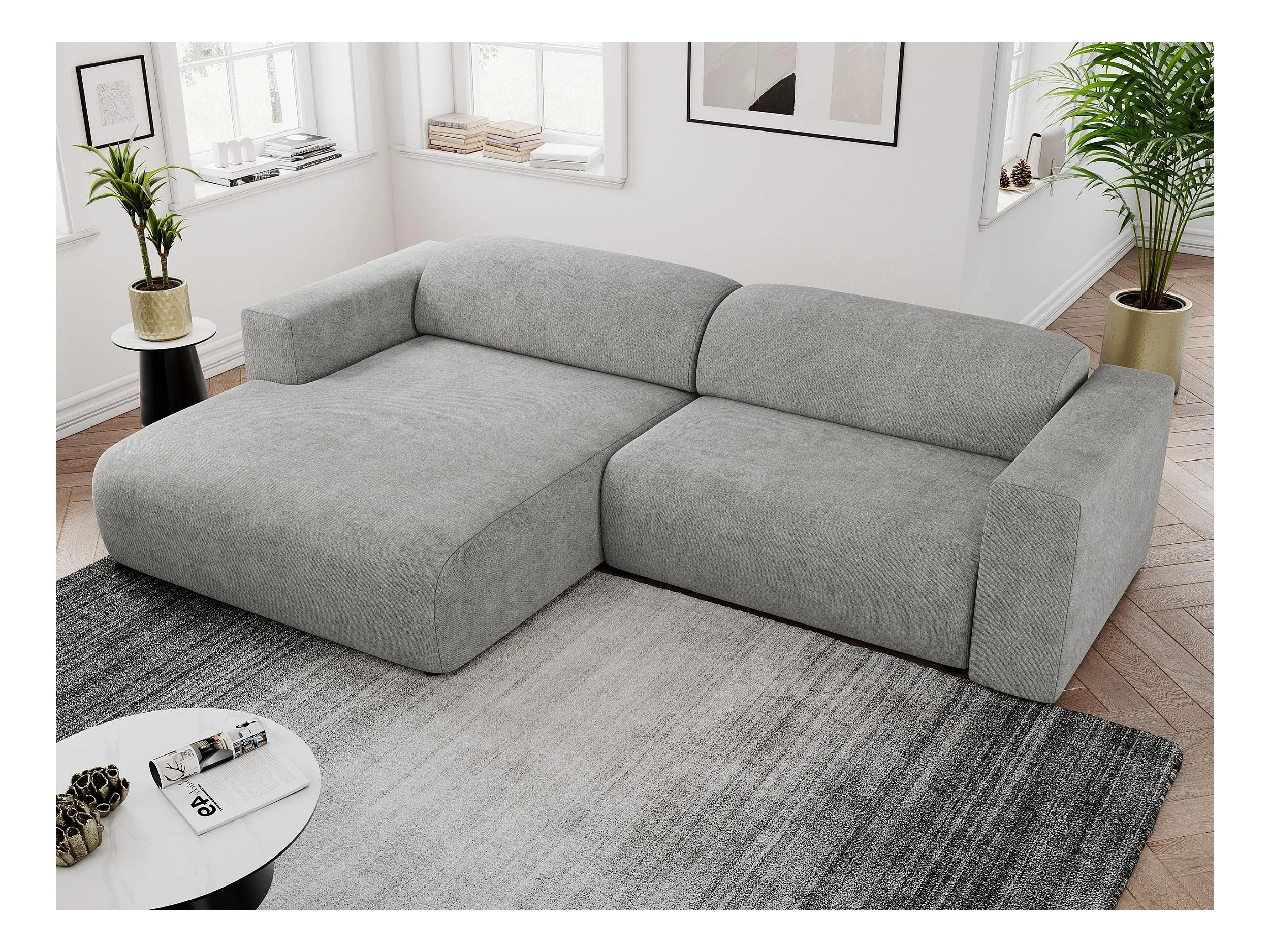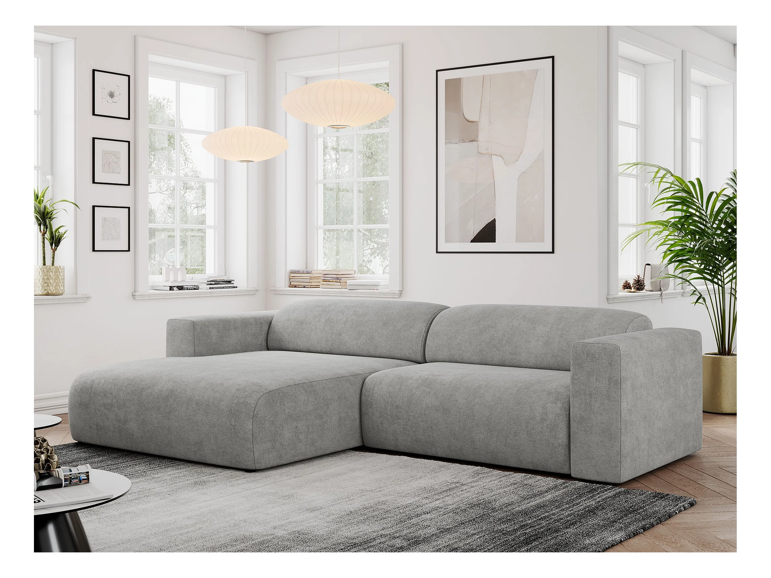 Ecksofa PASADENA - mit Armlehnen, Wohnlandschaft, freistehendes Sofa, große Ecke - Hellgrau Stukture - Ecke Links
