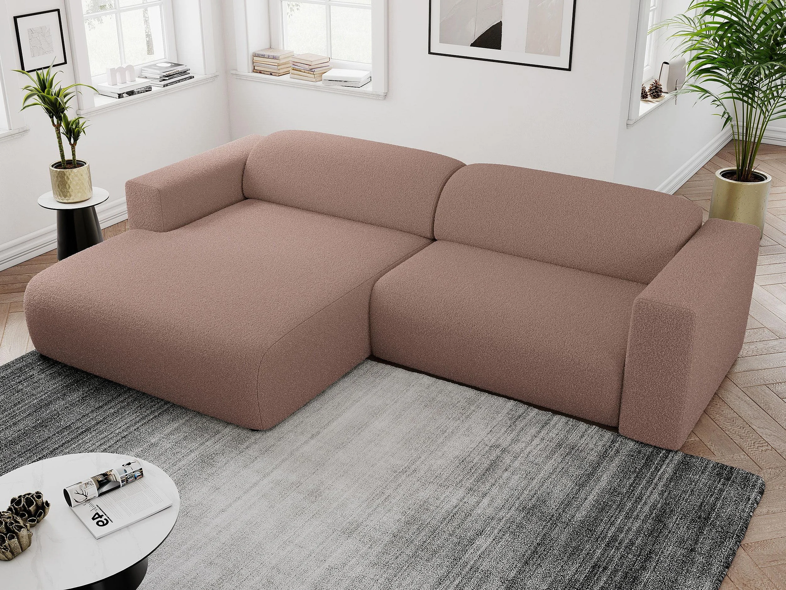 Ecksofa PASADENA - mit Armlehnen, Wohnlandschaft, freistehendes Sofa, große Ecke - Rosa Boucle - Ecke Links
