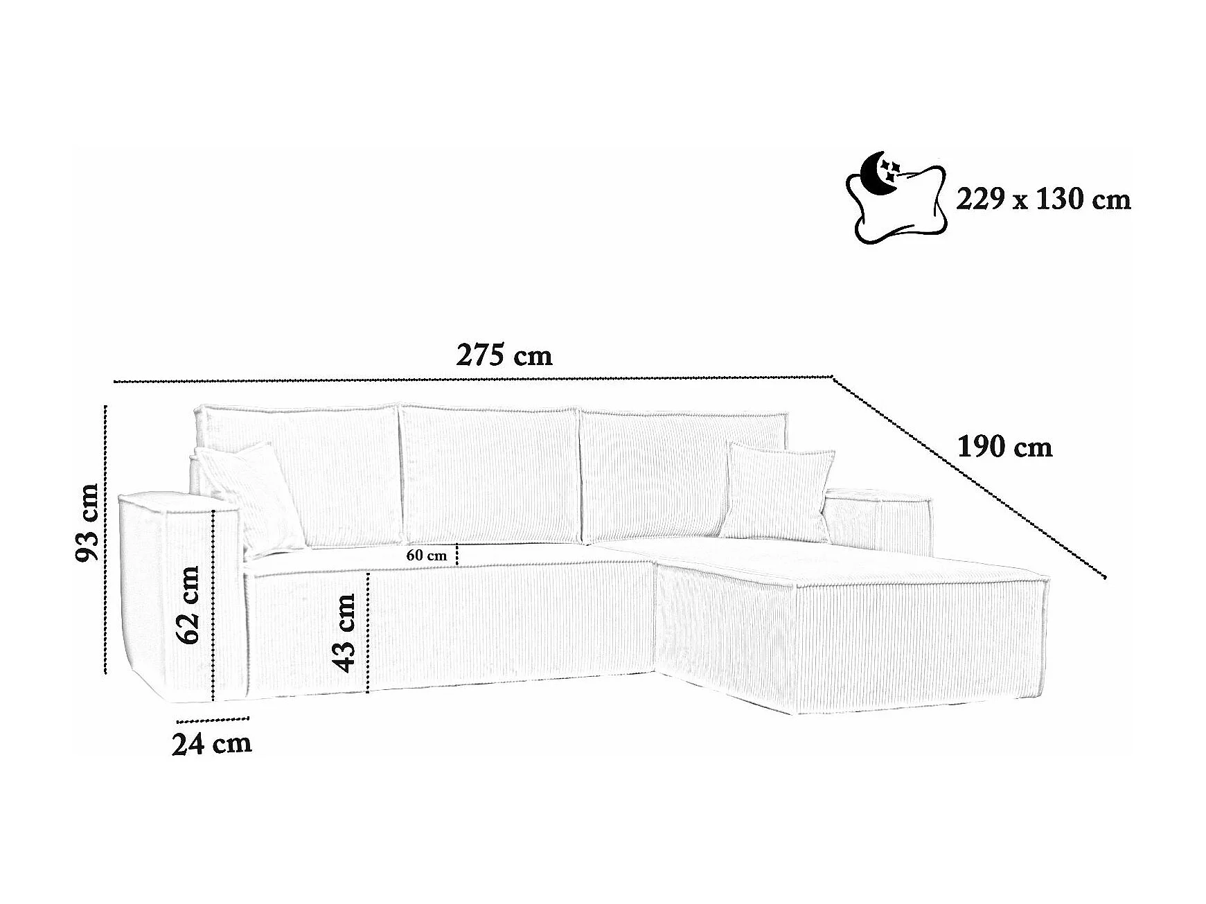 Ecksofa Passio L-Form mit Schlaffunktion Bettkasten Sofa Couch 275 cm universelle Ottomane, grau