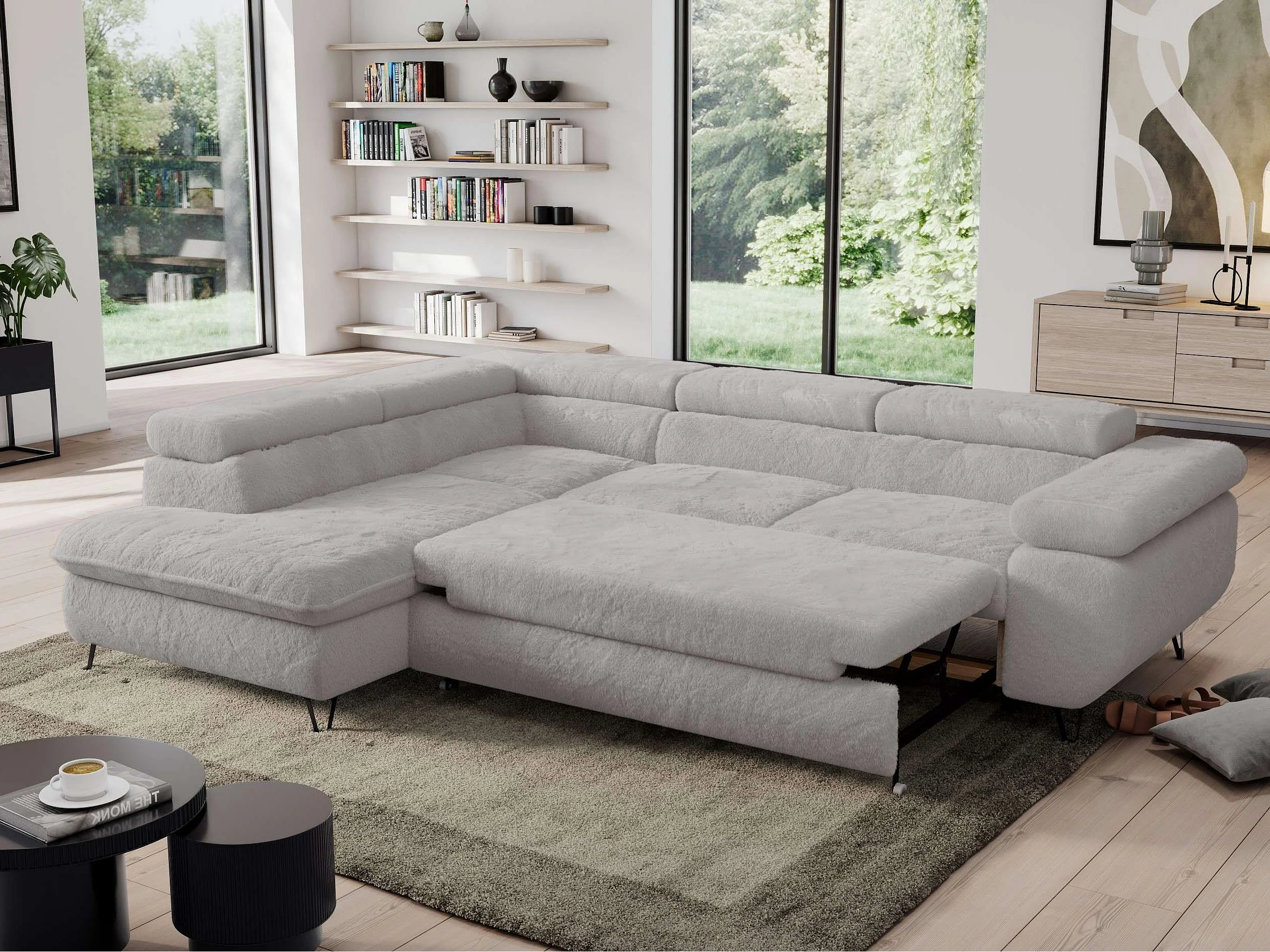Ecksofa PEDRO - L-Form mit Schlaffunktion 200x125 cm, verstellbaren Kopfstützen - Aschgrau Plüsch - Ecke Links