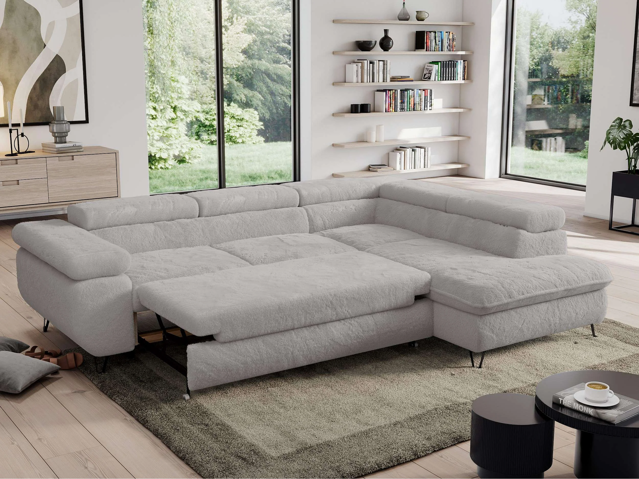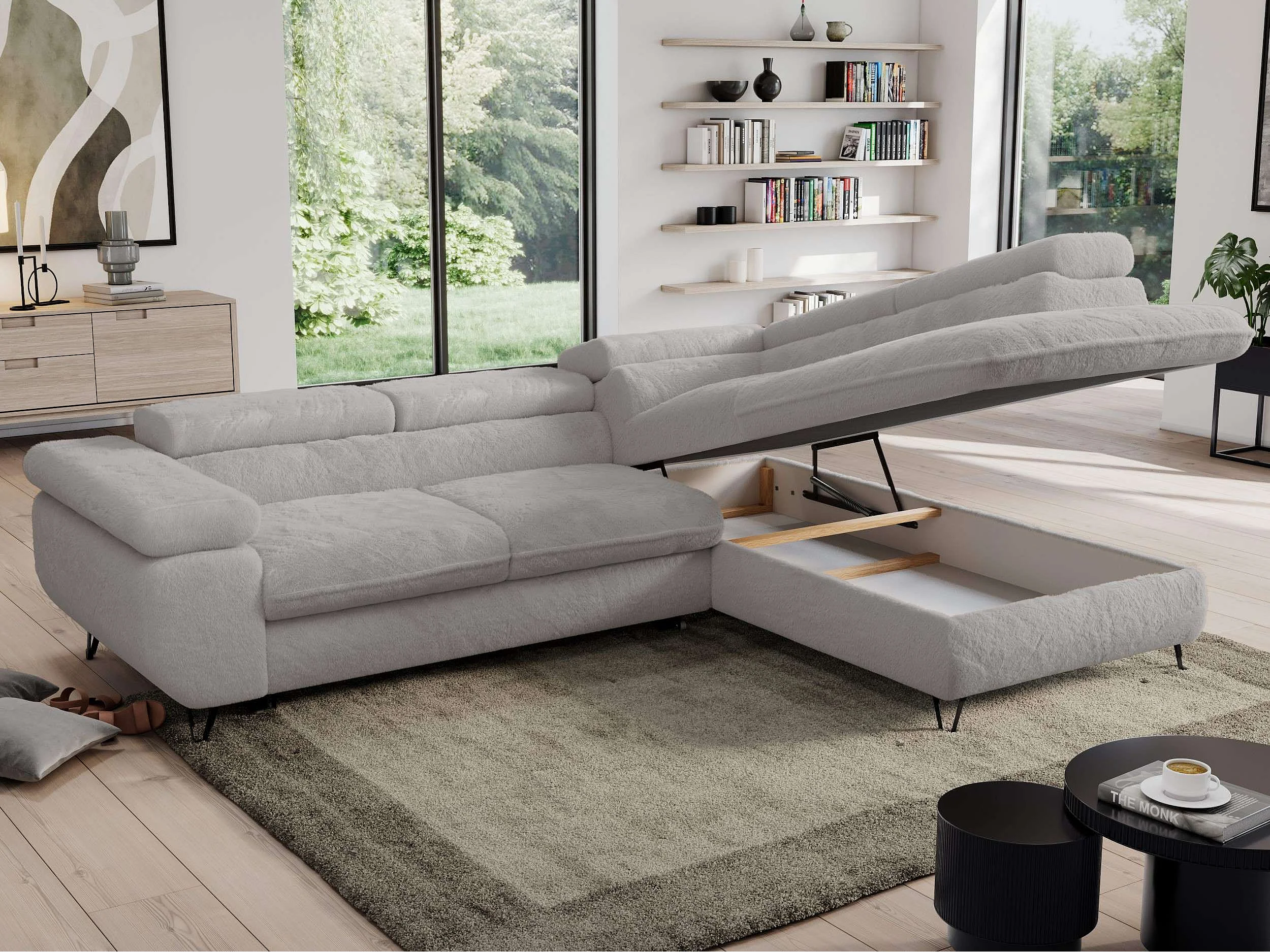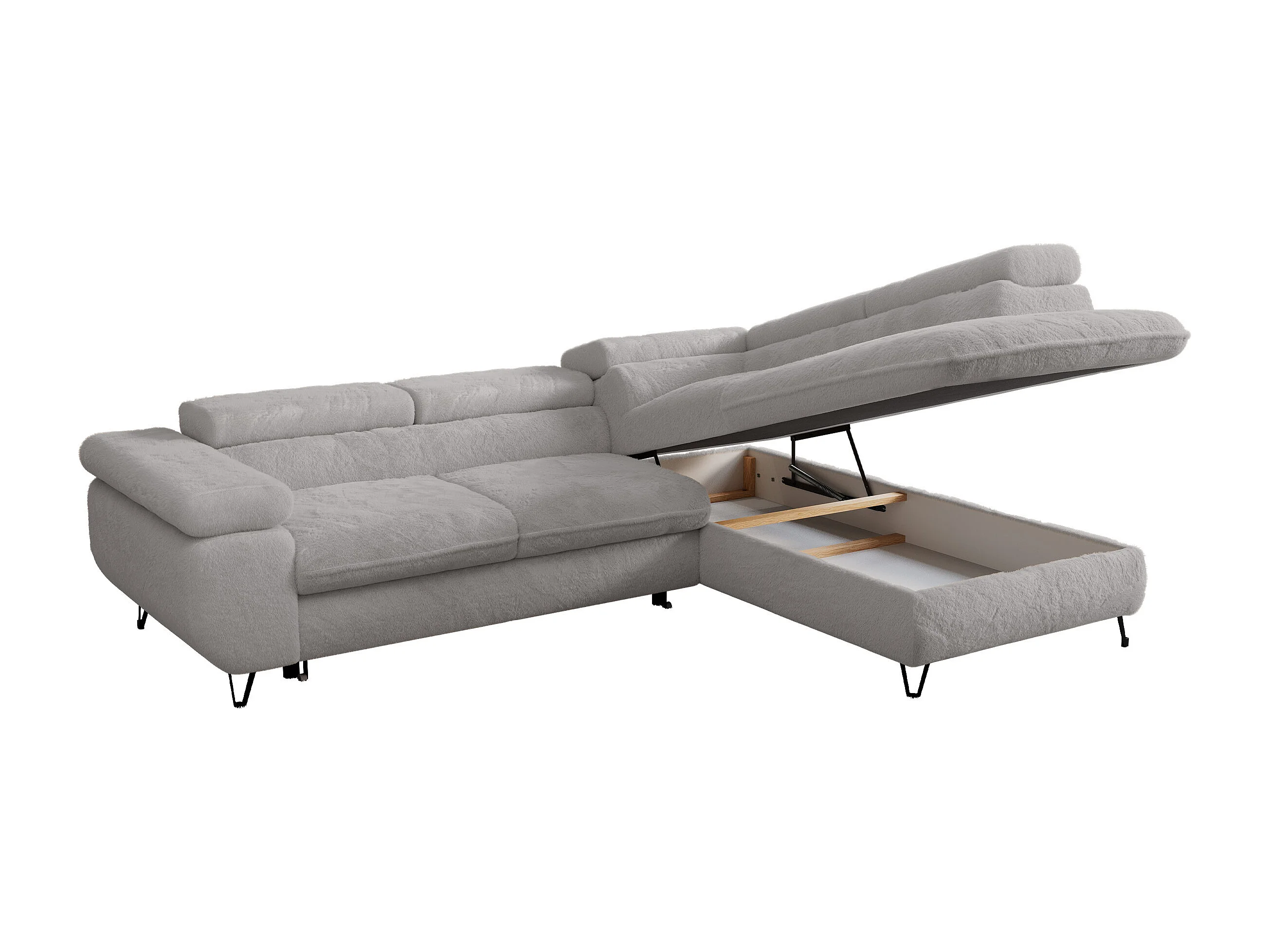 Ecksofa PEDRO - L-Form mit Schlaffunktion 200x125 cm, verstellbaren Kopfstützen - Aschgrau Plüsch - Ecke Rechts