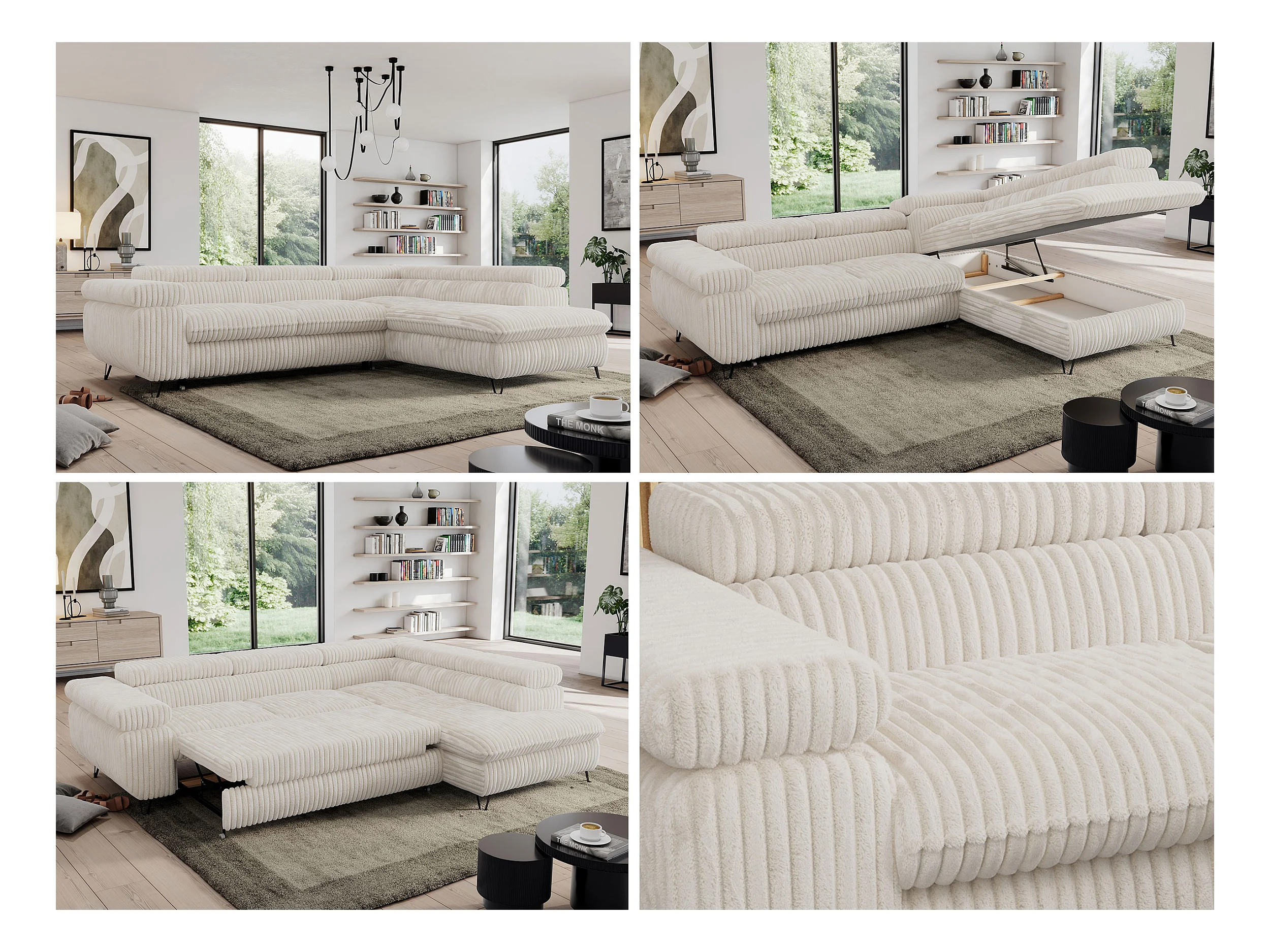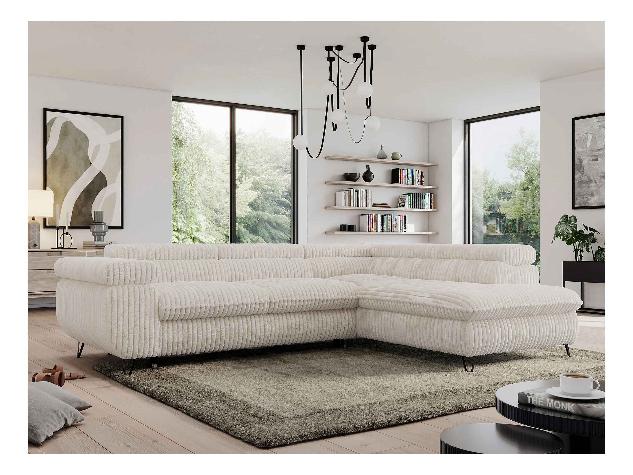 Ecksofa PEDRO - L-Form mit Schlaffunktion 200x125 cm, verstellbaren Kopfstützen - Beige Cord - Ecke Rechts