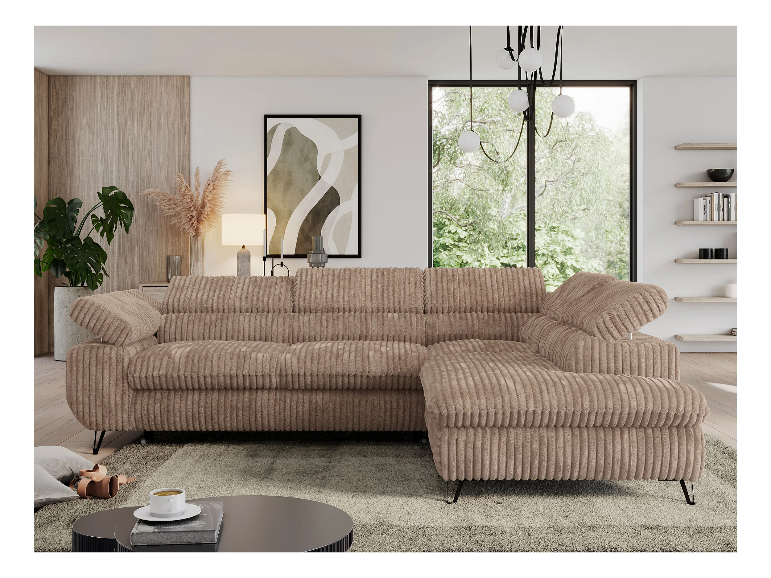 Ecksofa PEDRO - L-Form mit Schlaffunktion 200x125 cm, verstellbaren Kopfstützen - Braun Cord - Ecke Rechts