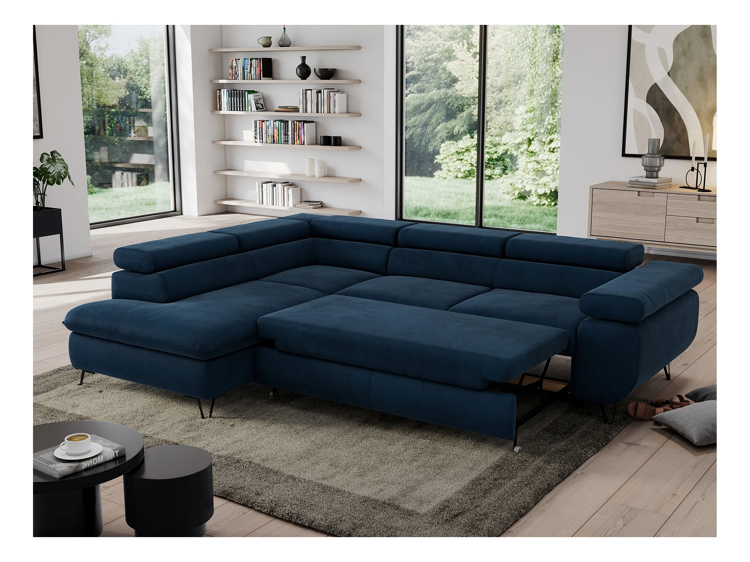 Ecksofa PEDRO - L-Form mit Schlaffunktion 200x125 cm, verstellbaren Kopfstützen - Dunkelblau Velvet - Ecke Links