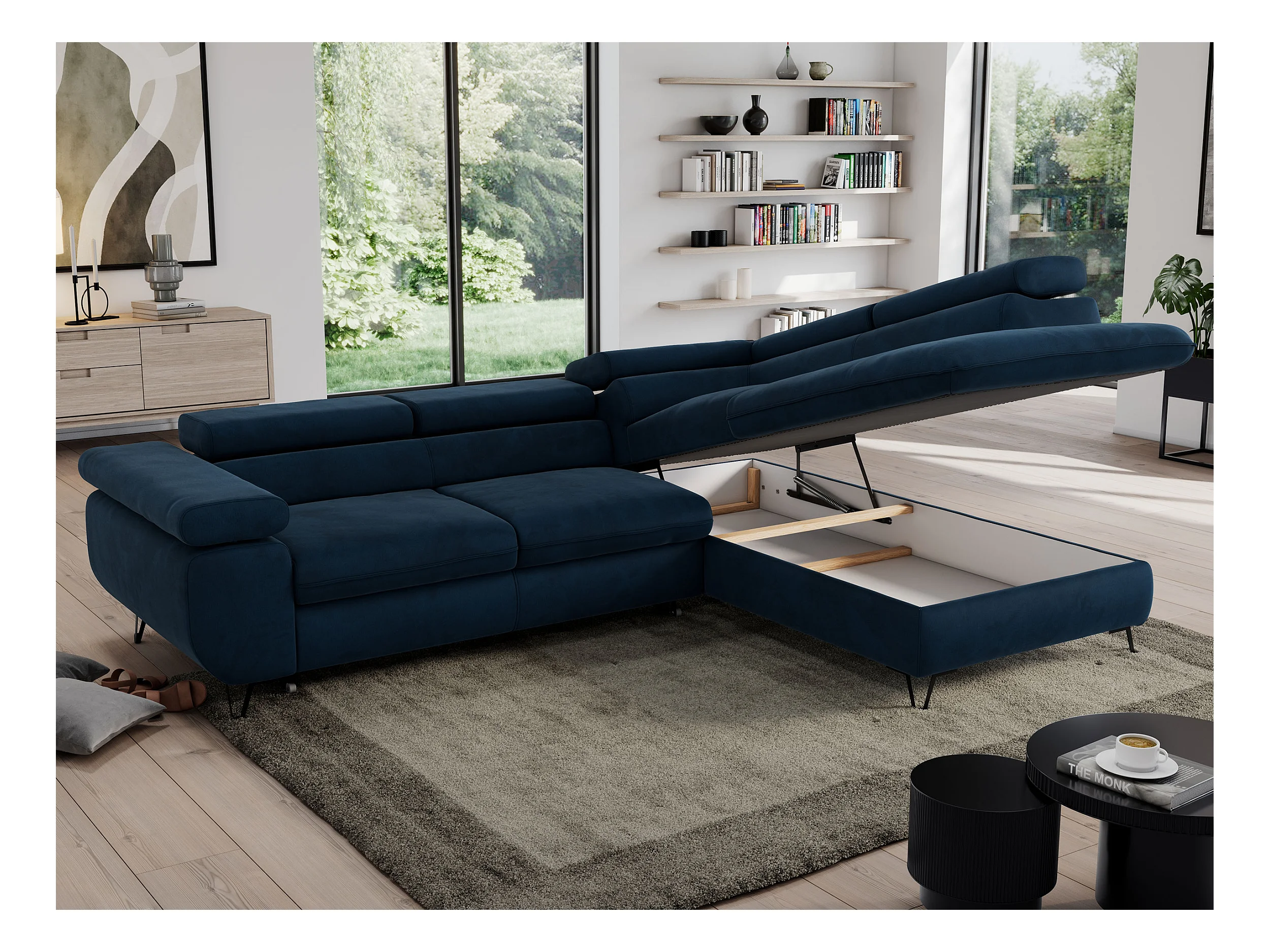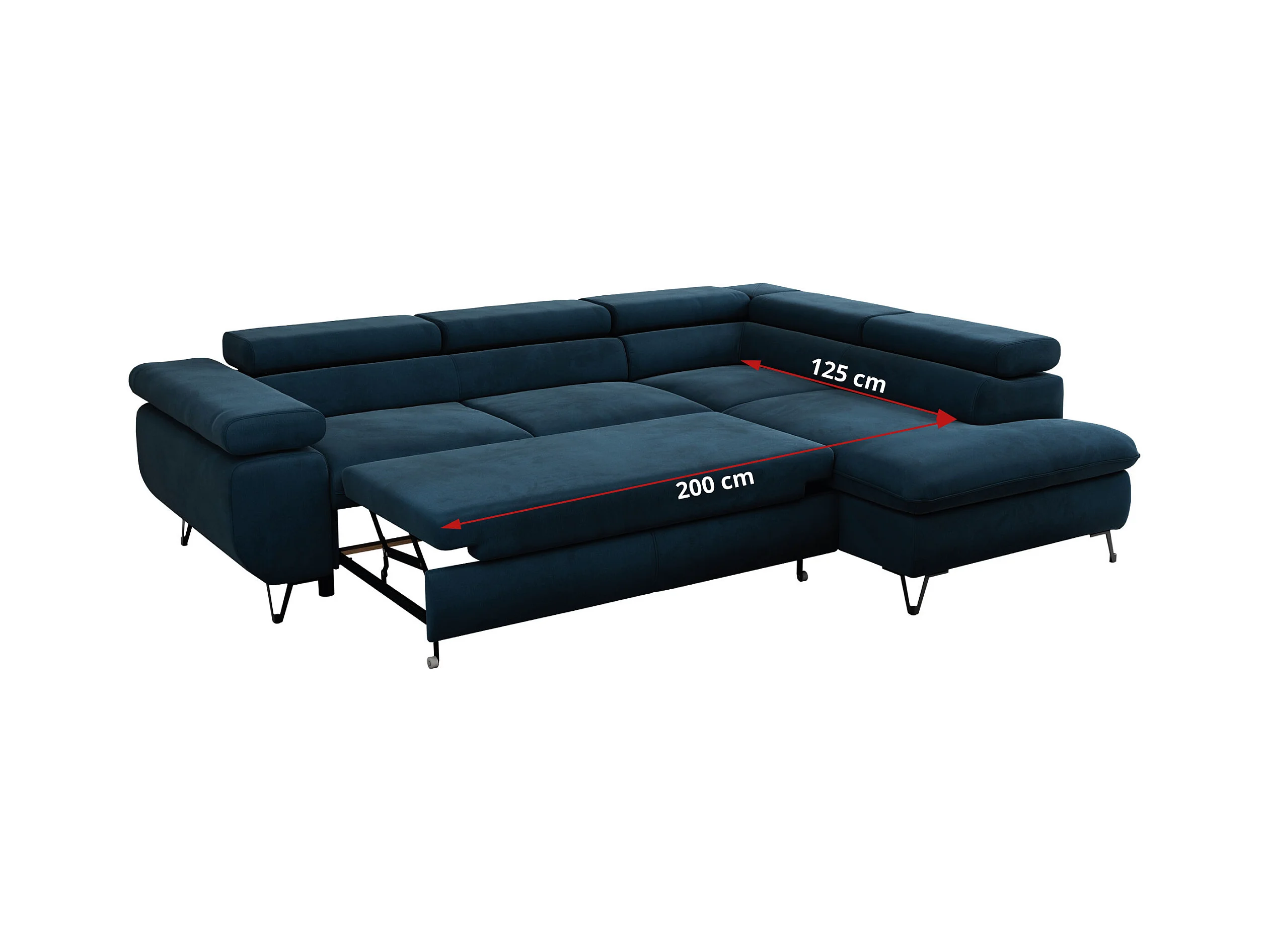 Ecksofa PEDRO - L-Form mit Schlaffunktion 200x125 cm, verstellbaren Kopfstützen - Dunkelblau Velvet - Ecke Rechts