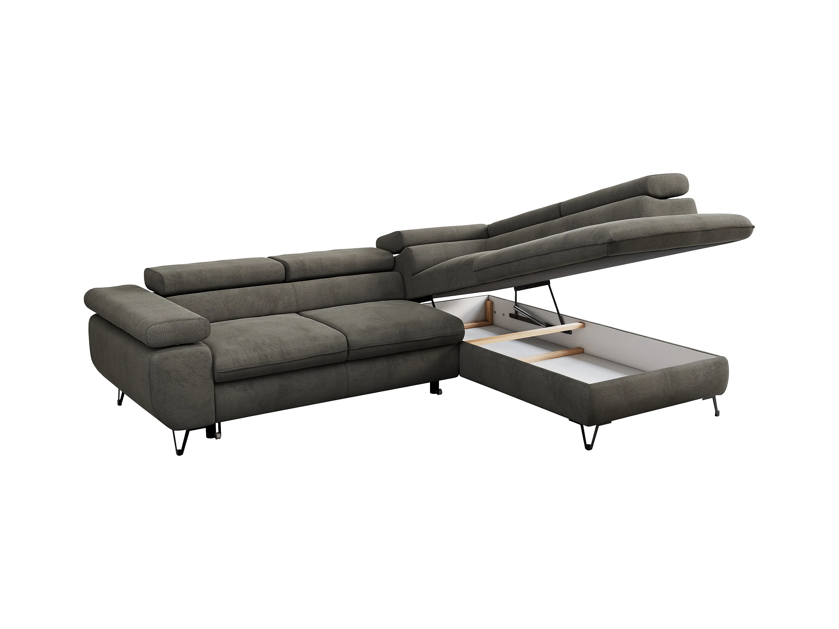 Ecksofa PEDRO - L-Form mit Schlaffunktion 200x125 cm, verstellbaren Kopfstützen - Dunkelgrau Velvet - Ecke Rechts