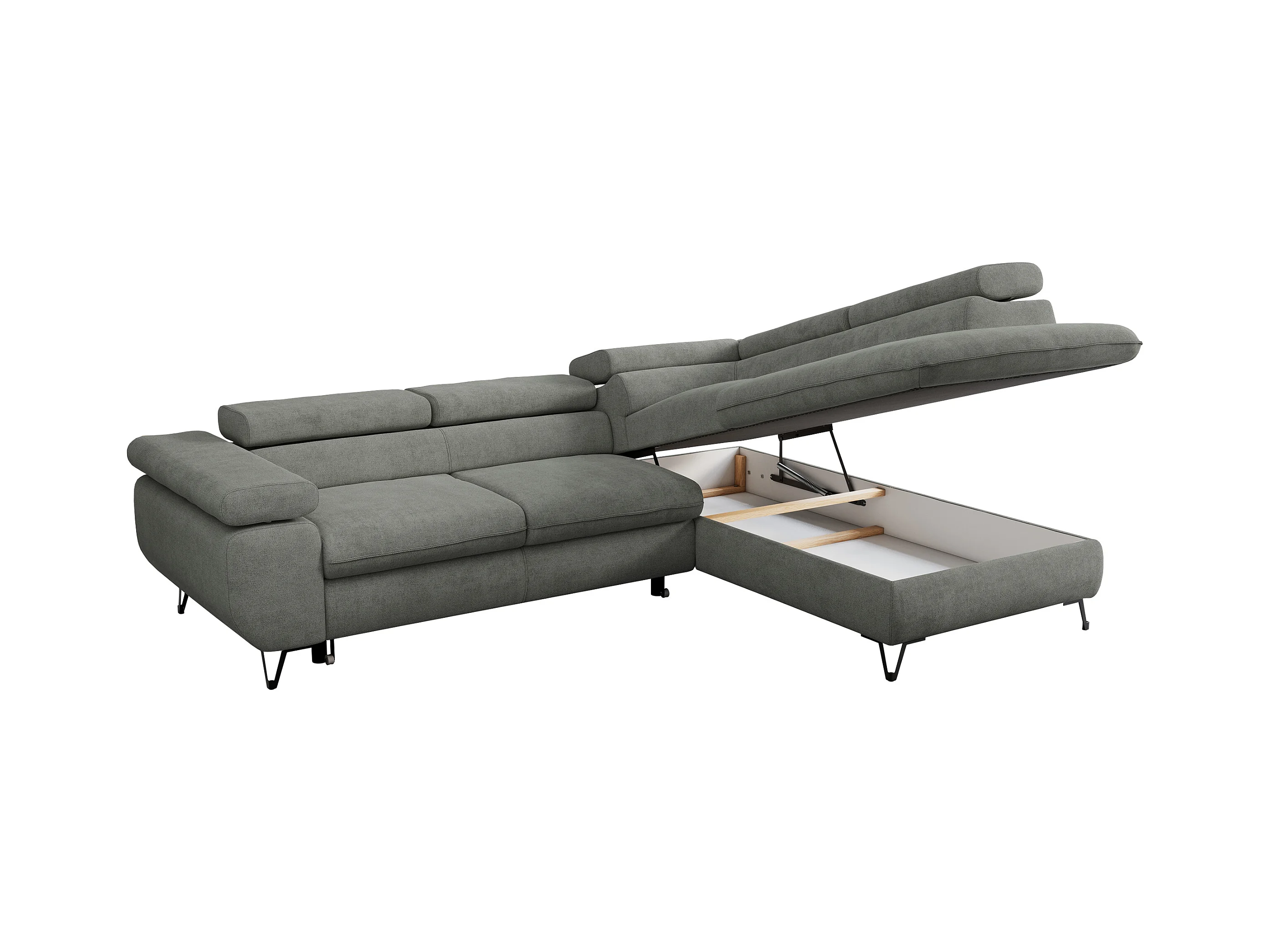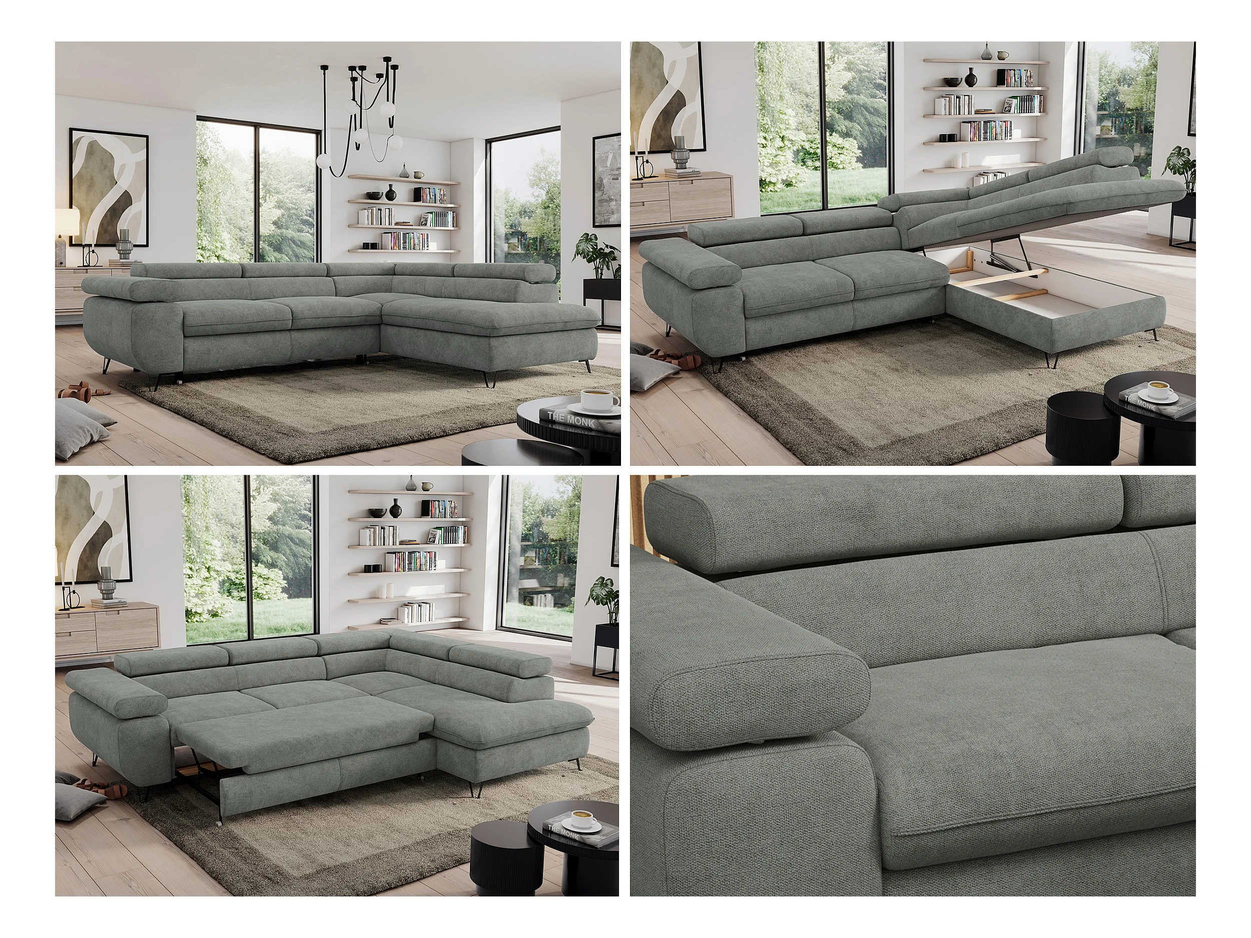 Ecksofa PEDRO - L-Form mit Schlaffunktion 200x125 cm, verstellbaren Kopfstützen - Grau Stukture - Ecke Rechts