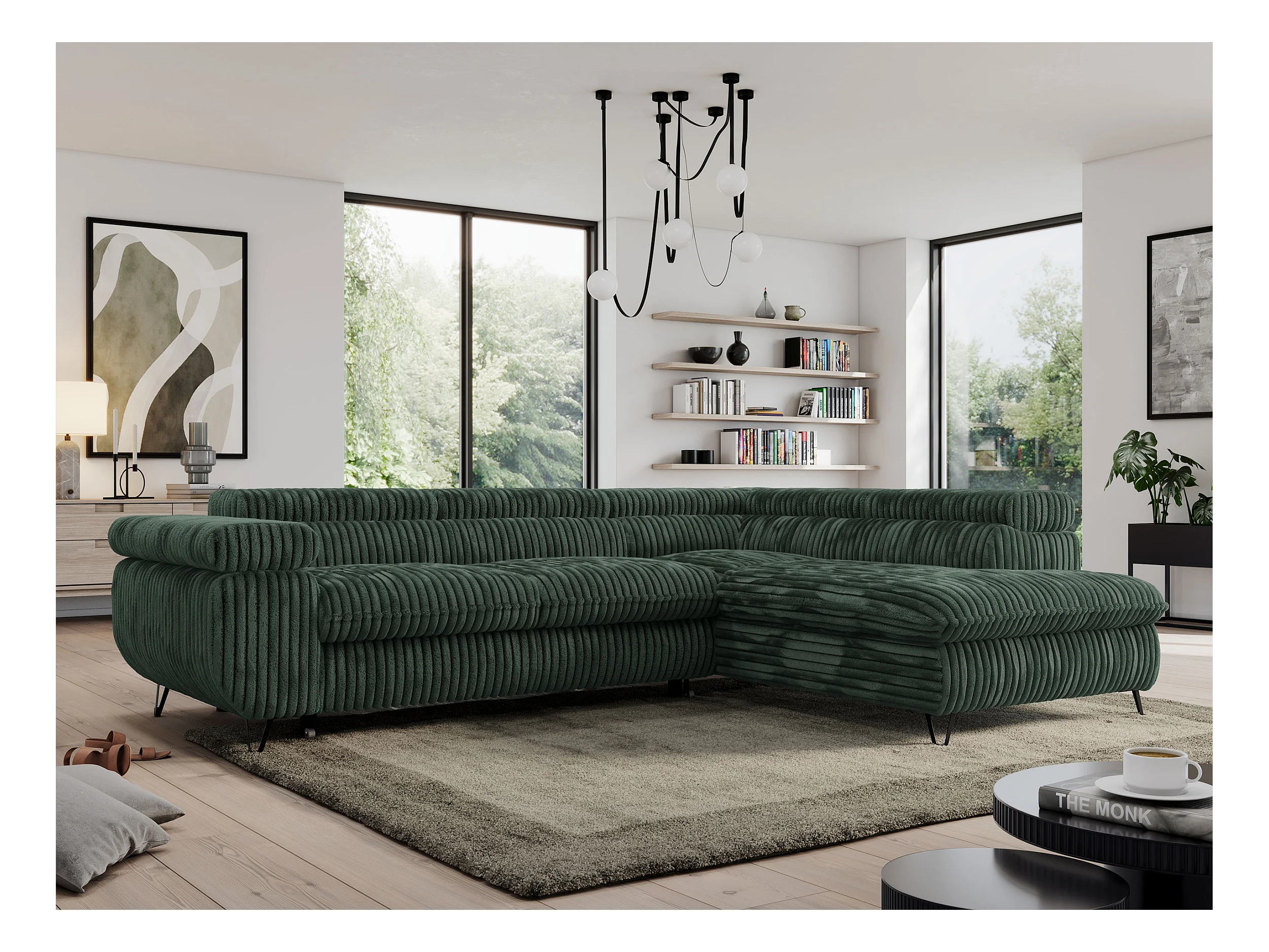 Ecksofa PEDRO - L-Form mit Schlaffunktion 200x125 cm, verstellbaren Kopfstützen - Grün Cord - Ecke Rechts