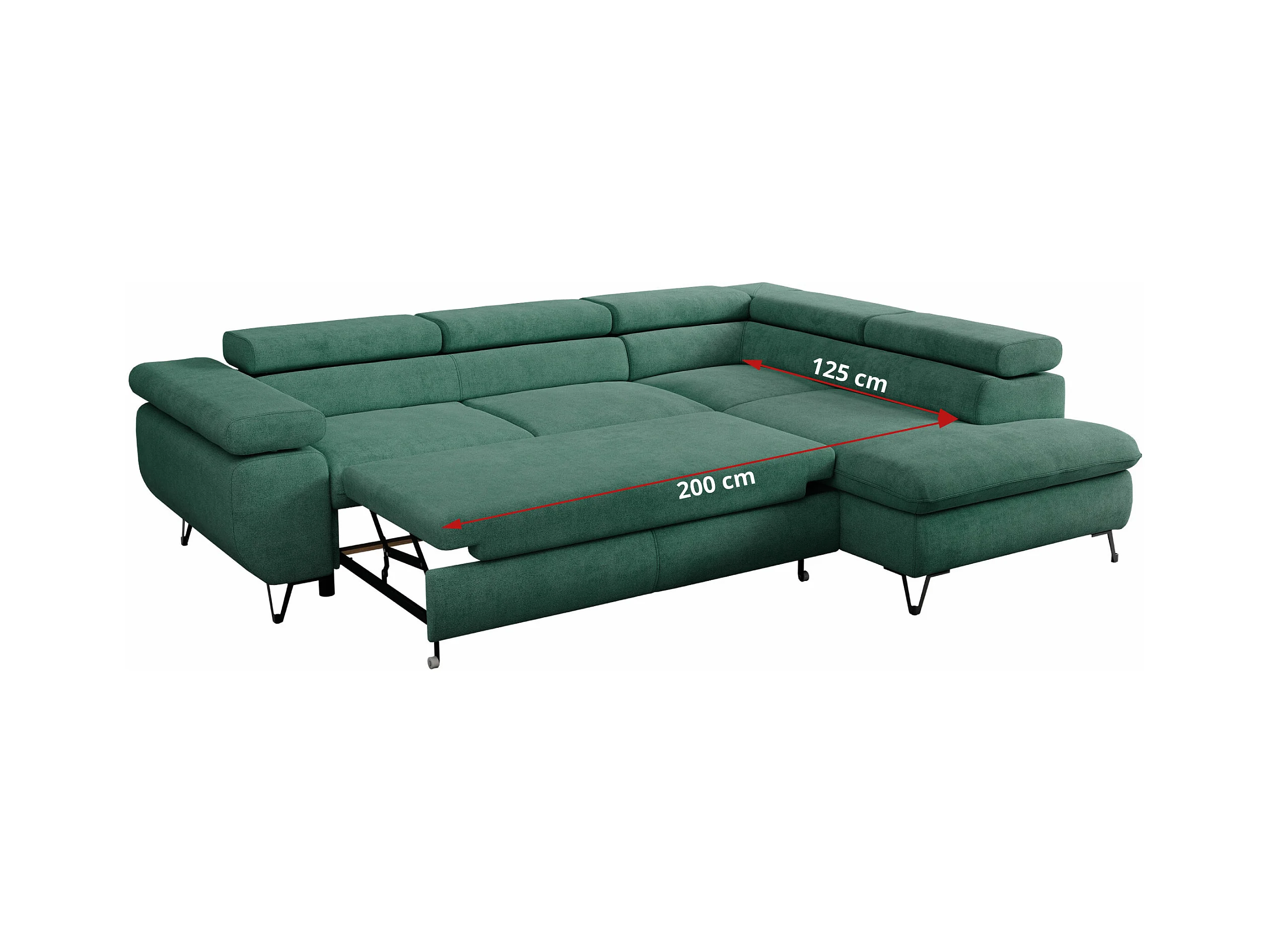 Ecksofa PEDRO - L-Form mit Schlaffunktion 200x125 cm, verstellbaren Kopfstützen - Grün Stukture - Ecke Rechts