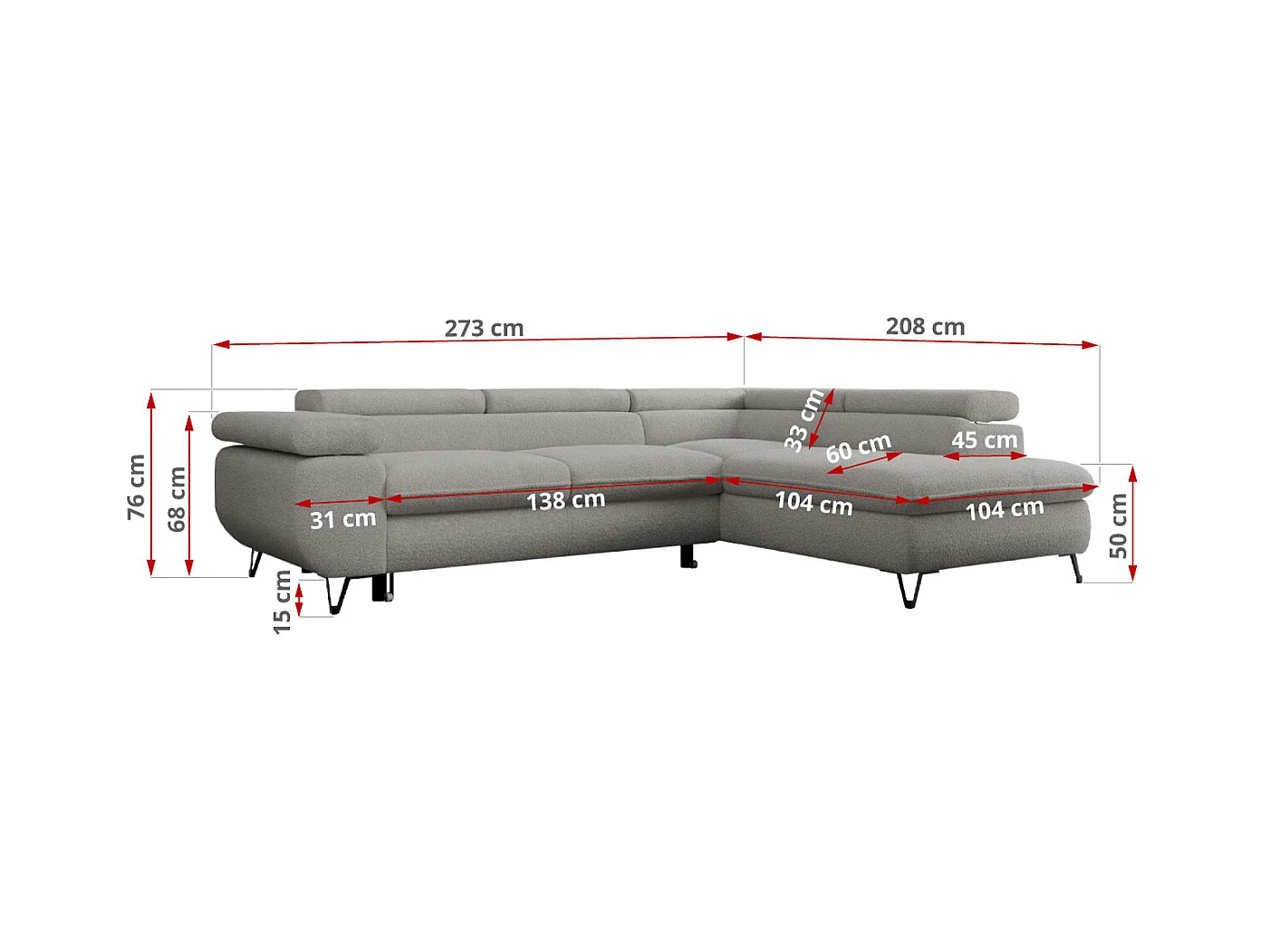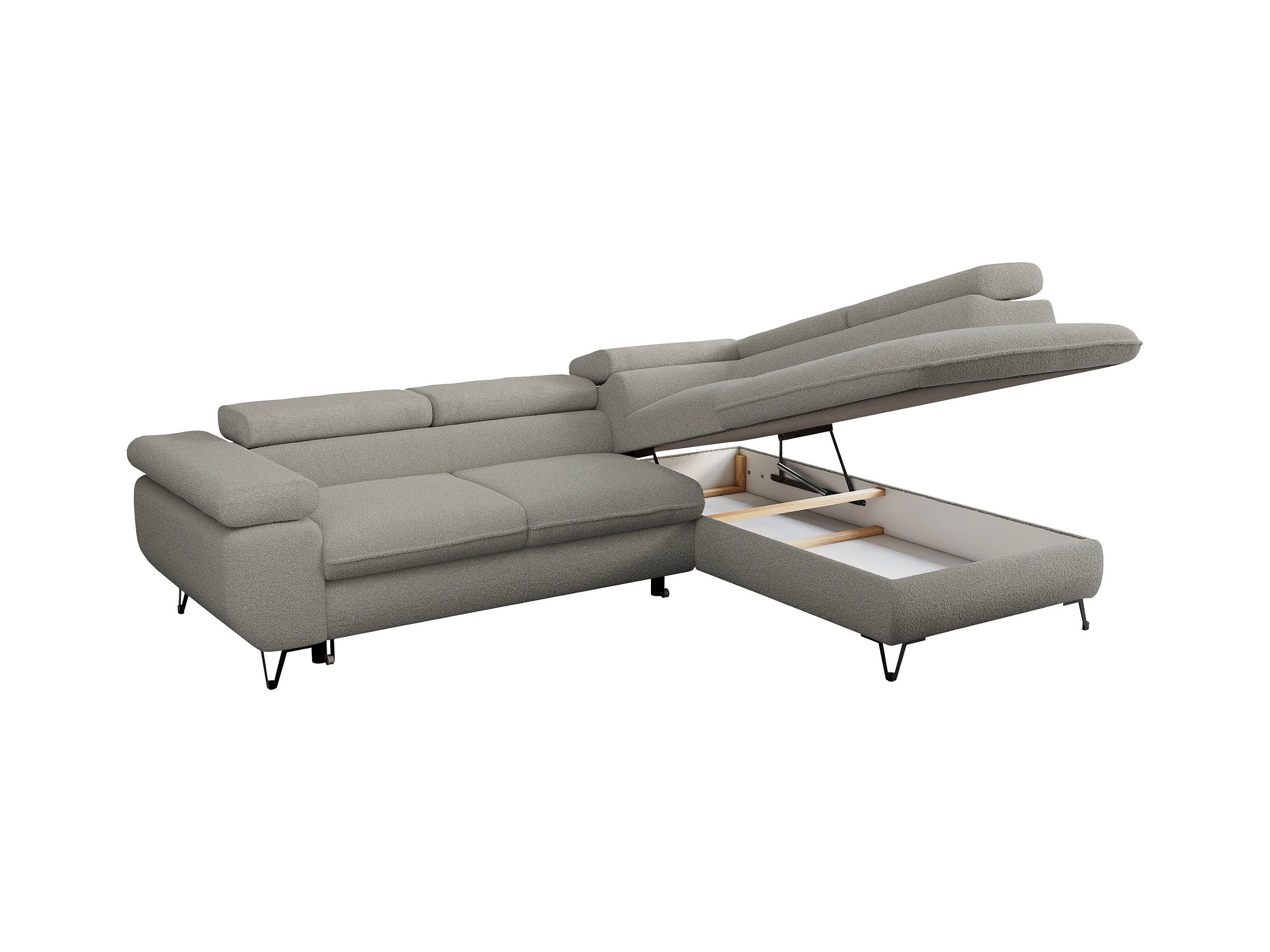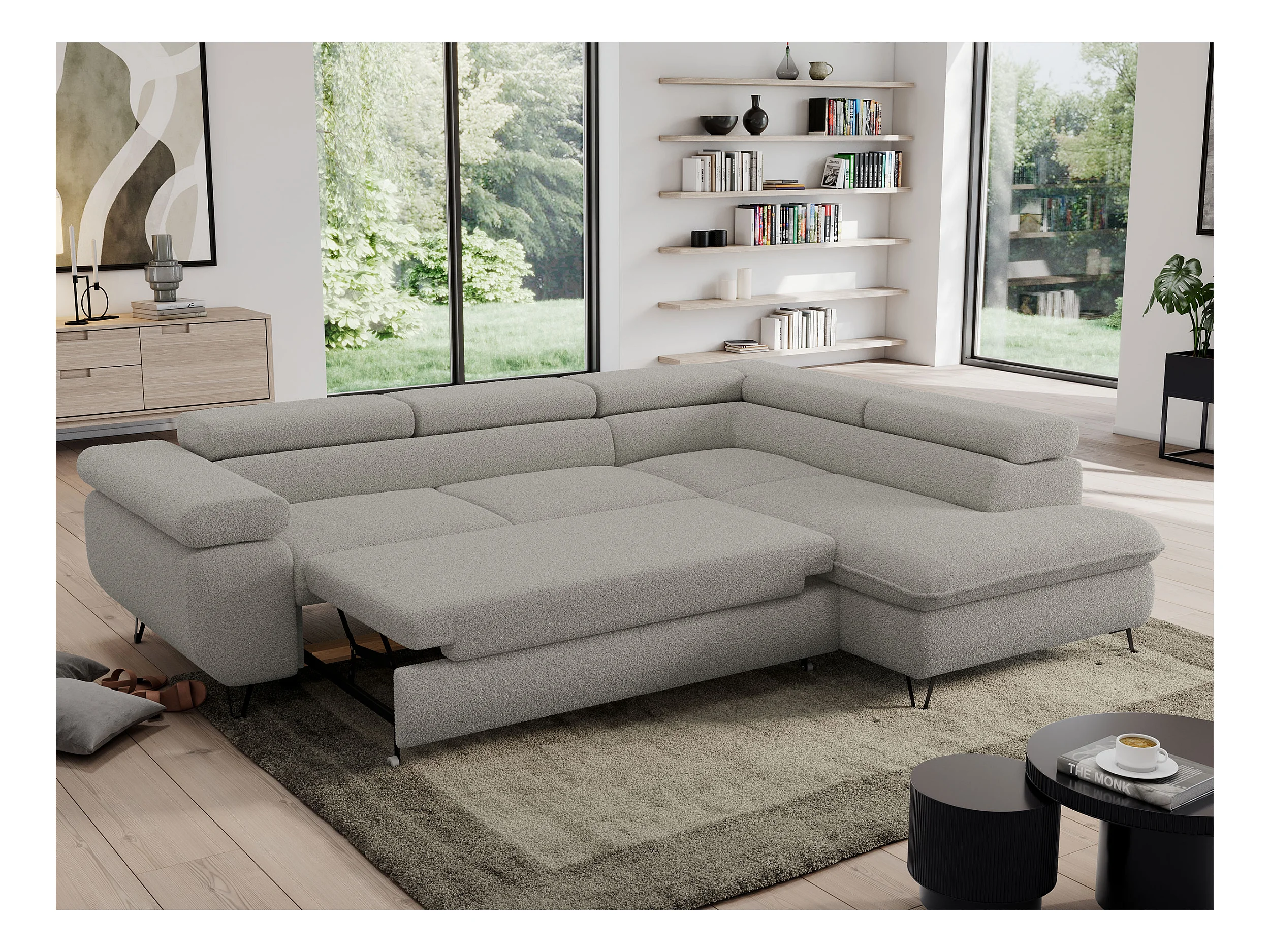Ecksofa PEDRO - L-Form mit Schlaffunktion 200x125 cm, verstellbaren Kopfstützen - Hellgrau Boucle - Ecke Rechts