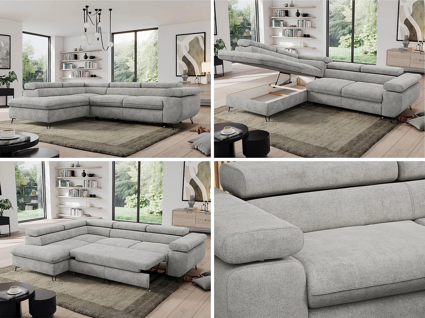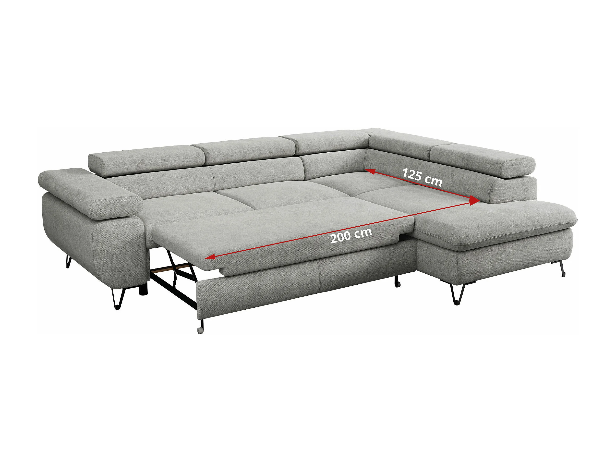 Ecksofa PEDRO - L-Form mit Schlaffunktion 200x125 cm, verstellbaren Kopfstützen - Hellgrau Stukture - Ecke Links