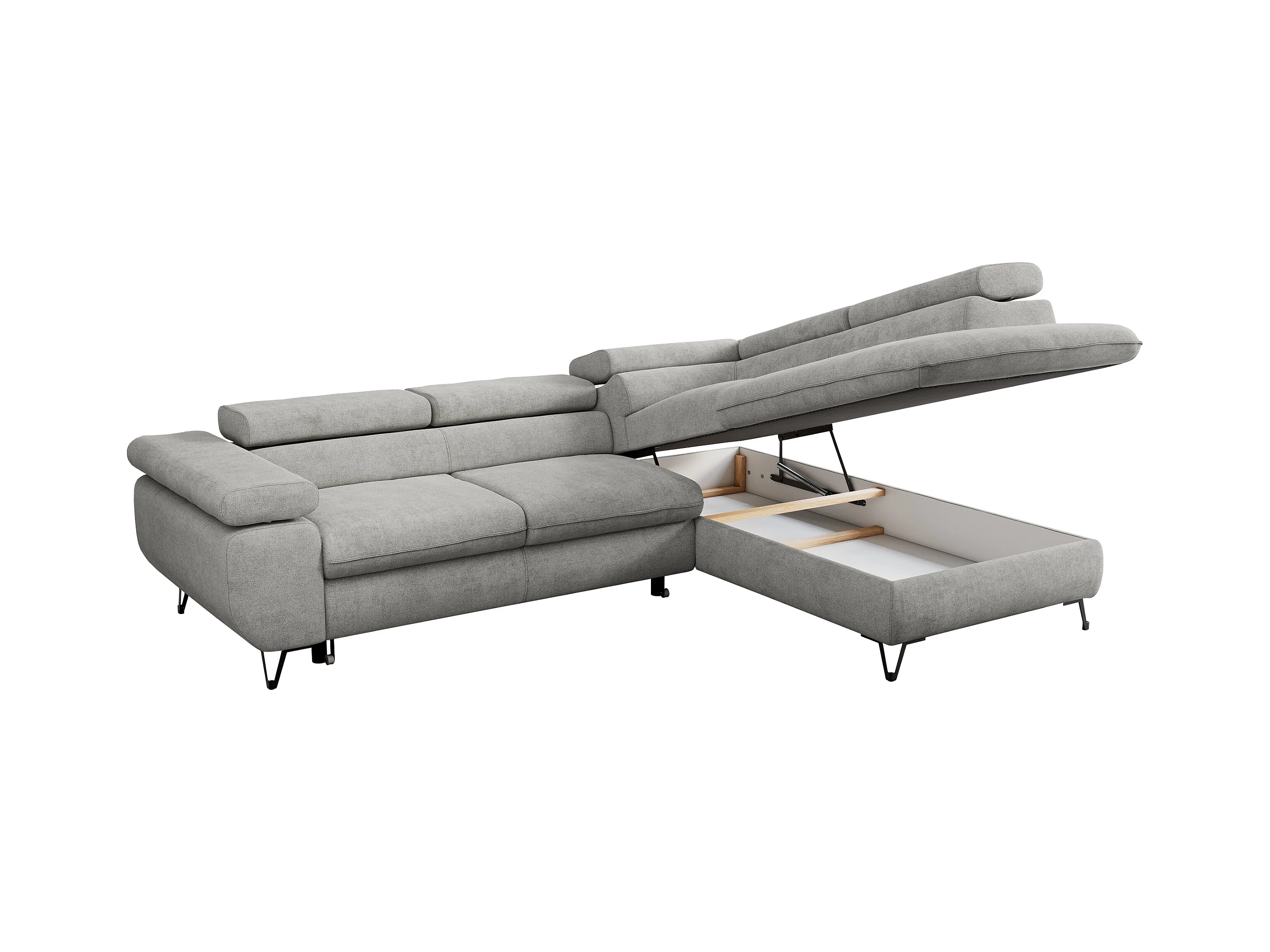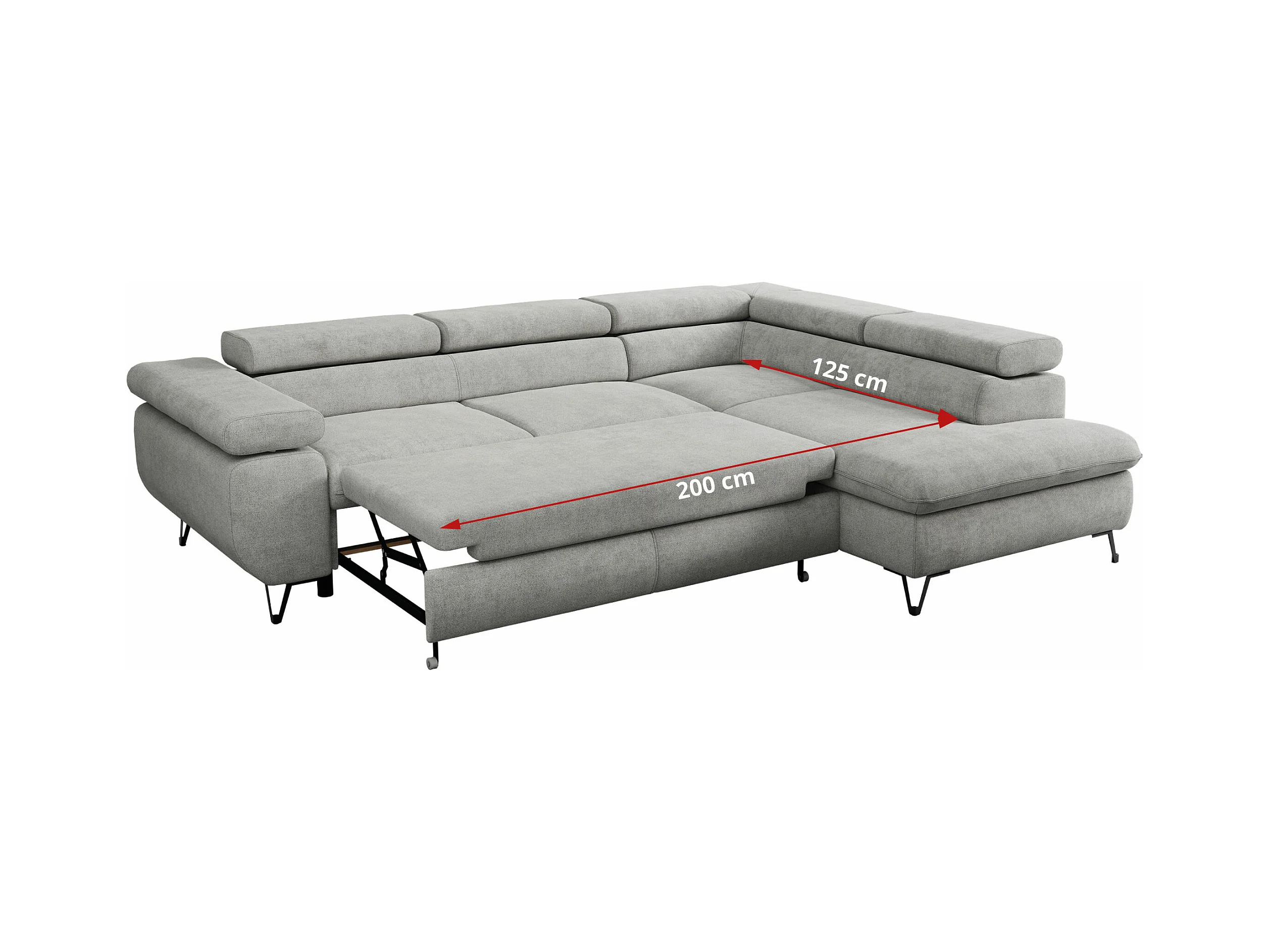 Ecksofa PEDRO - L-Form mit Schlaffunktion 200x125 cm, verstellbaren Kopfstützen - Hellgrau Stukture - Ecke Rechts