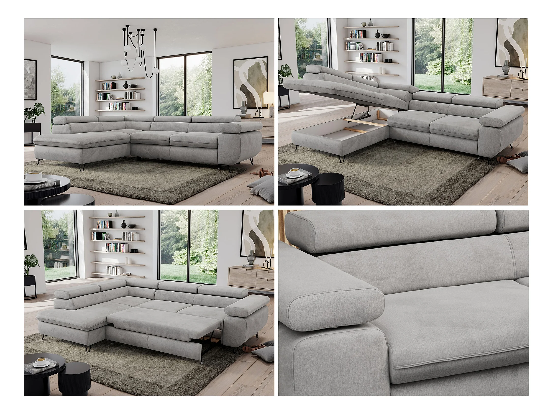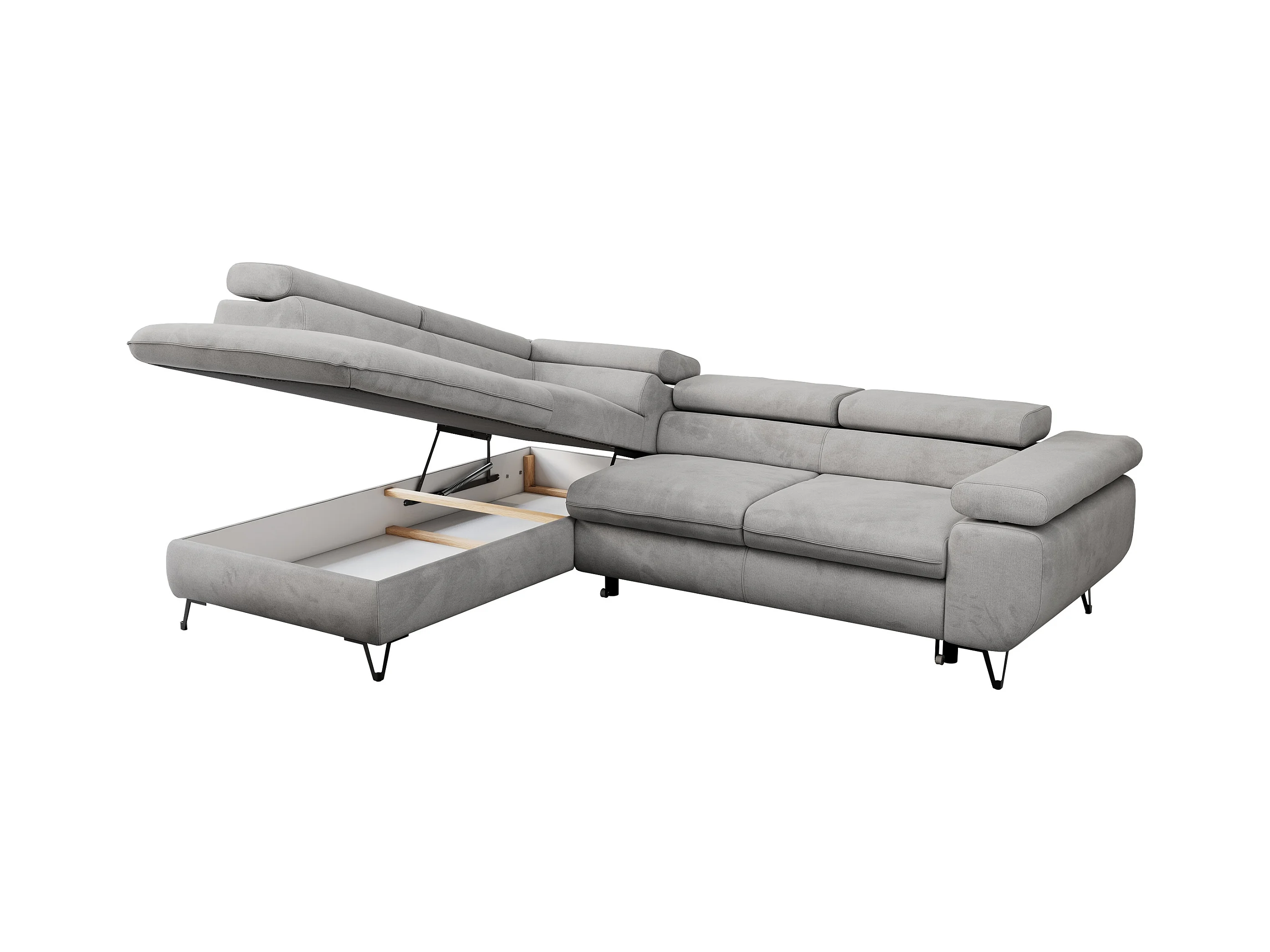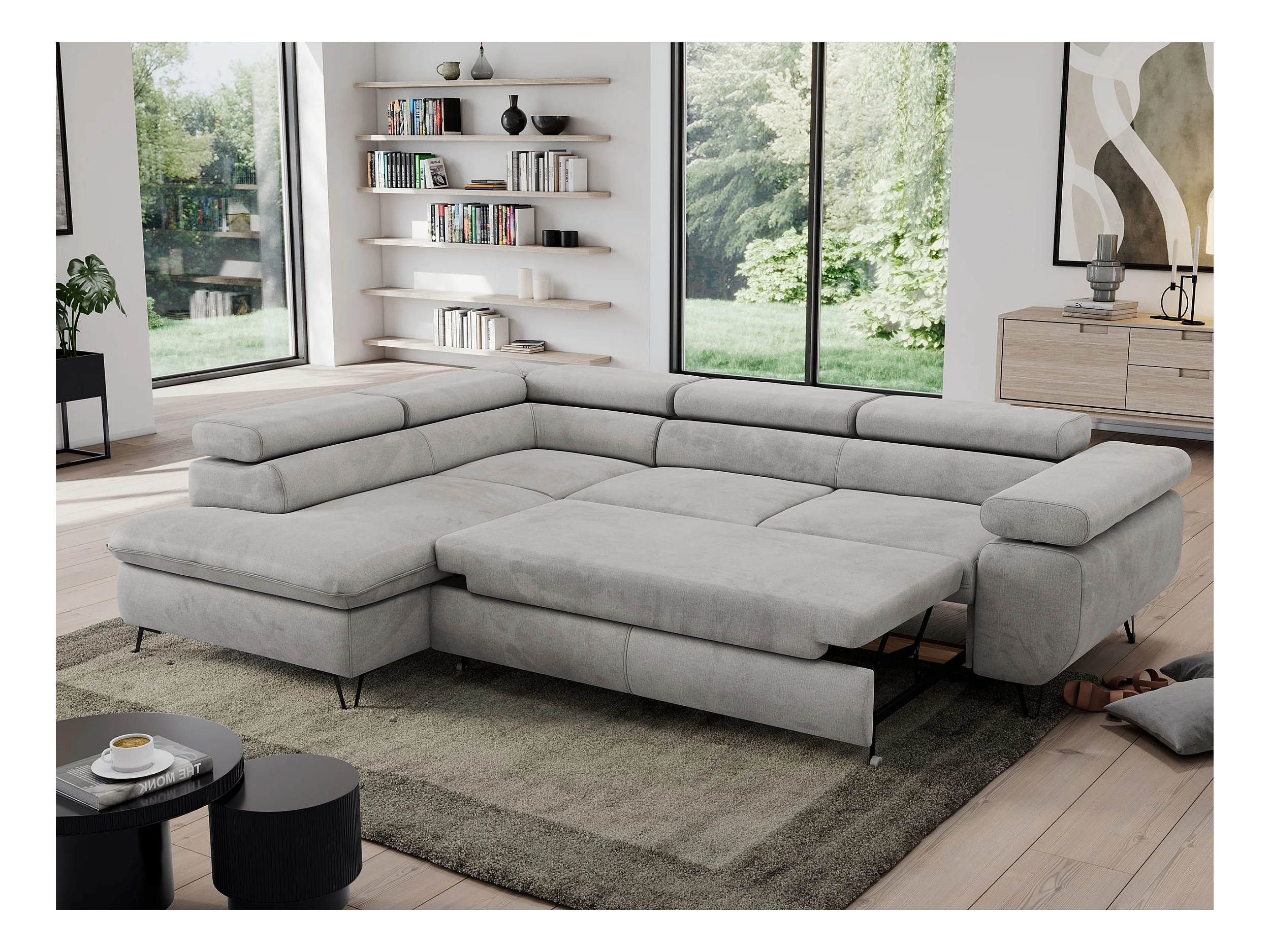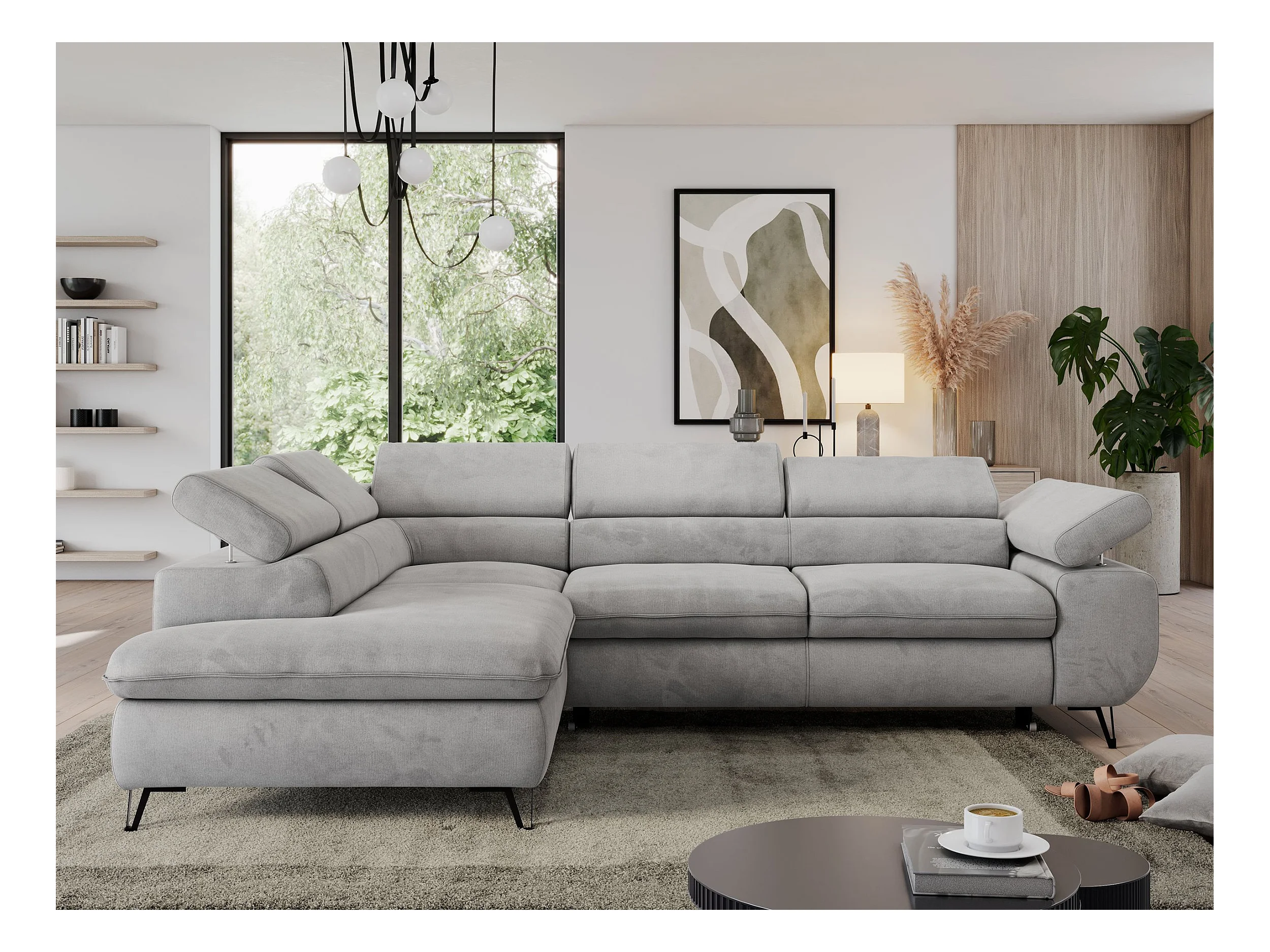 Ecksofa PEDRO - L-Form mit Schlaffunktion 200x125 cm, verstellbaren Kopfstützen - Hellgrau Velvet - Ecke Links
