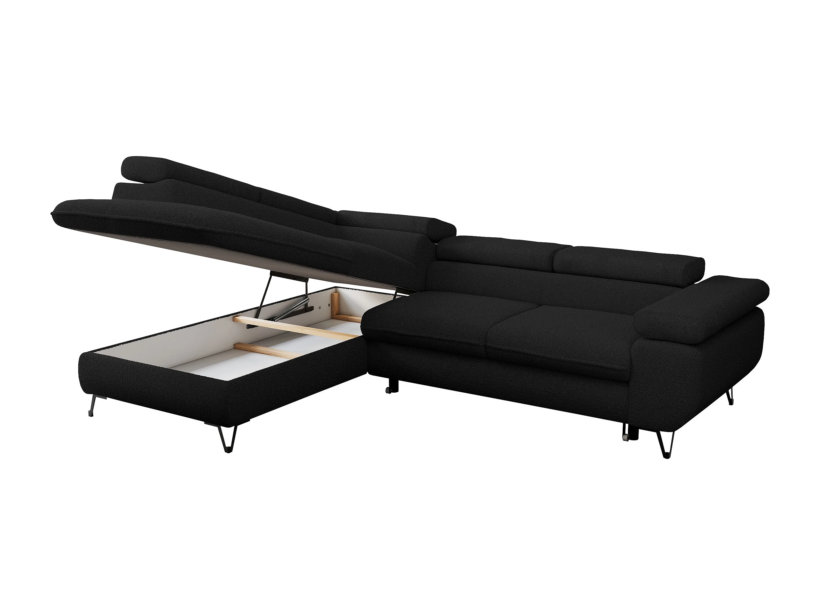 Ecksofa PEDRO - L-Form mit Schlaffunktion 200x125 cm, verstellbaren Kopfstützen - Schwarz Boucle - Ecke Links
