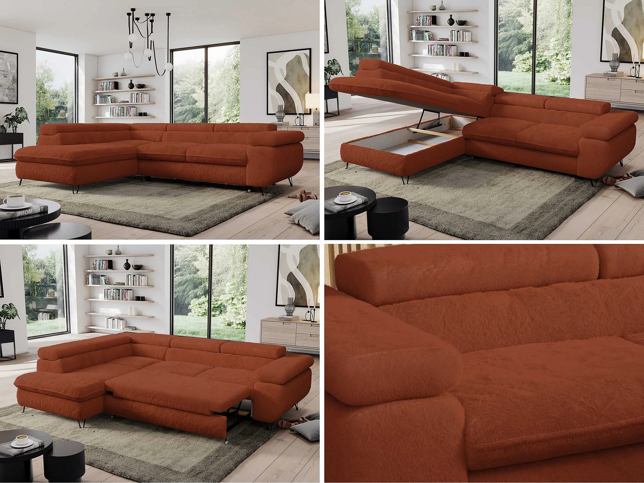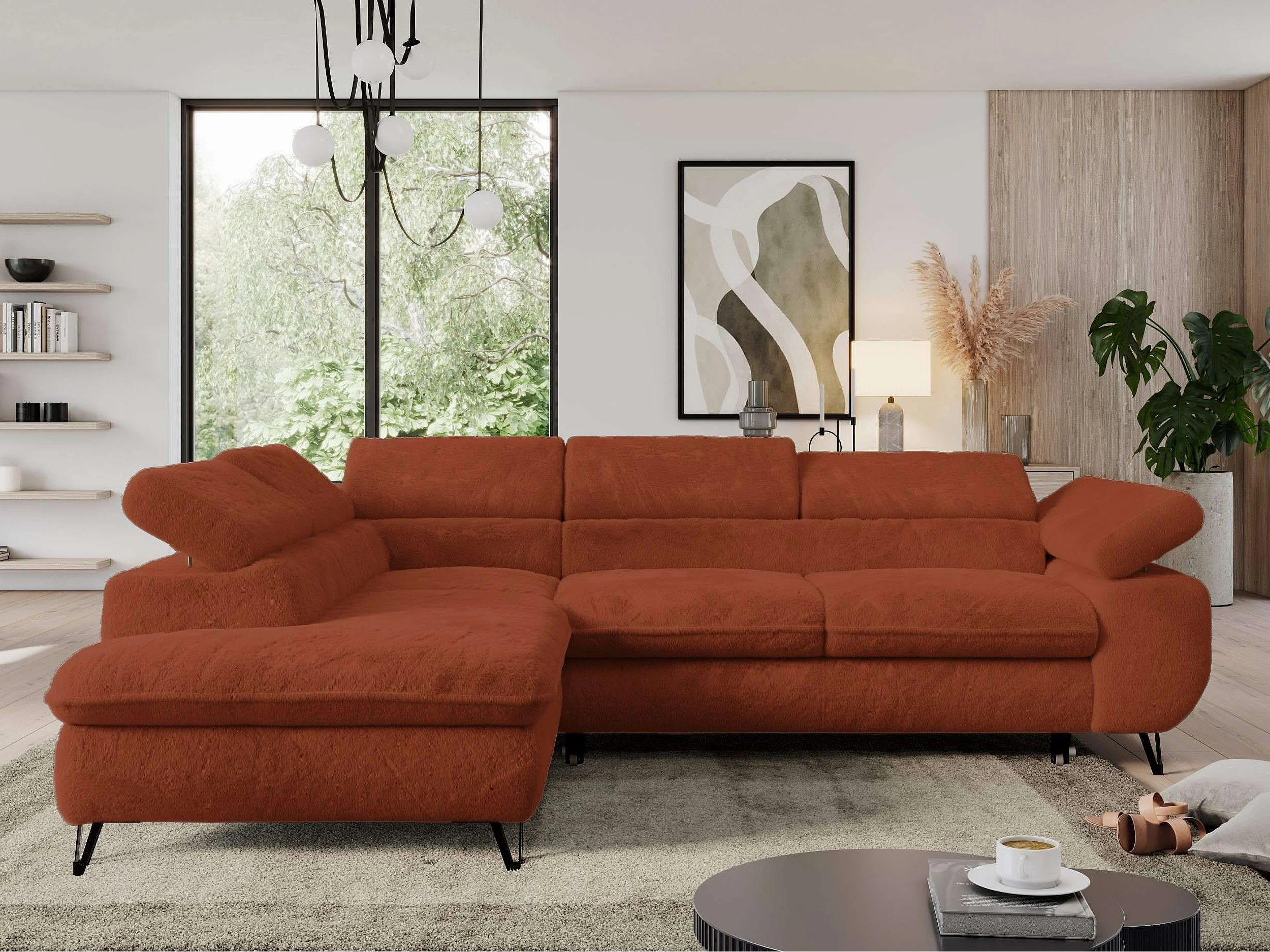 Ecksofa PEDRO - L-Form mit Schlaffunktion 200x125 cm, verstellbaren Kopfstützen - Terracotta Plüsch - Ecke Links