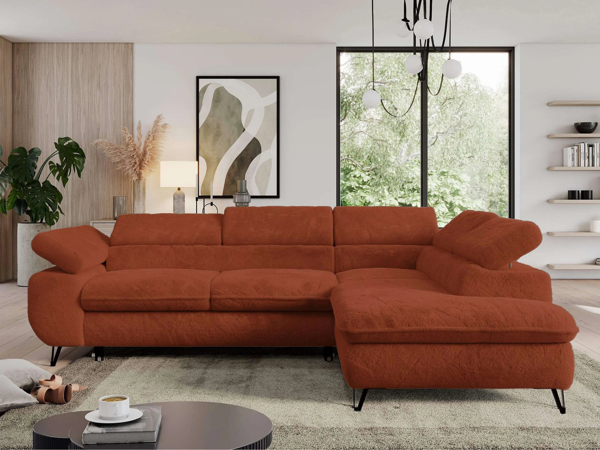 Ecksofa PEDRO - L-Form mit Schlaffunktion 200x125 cm, verstellbaren Kopfstützen - Terracotta Plüsch - Ecke Rechts