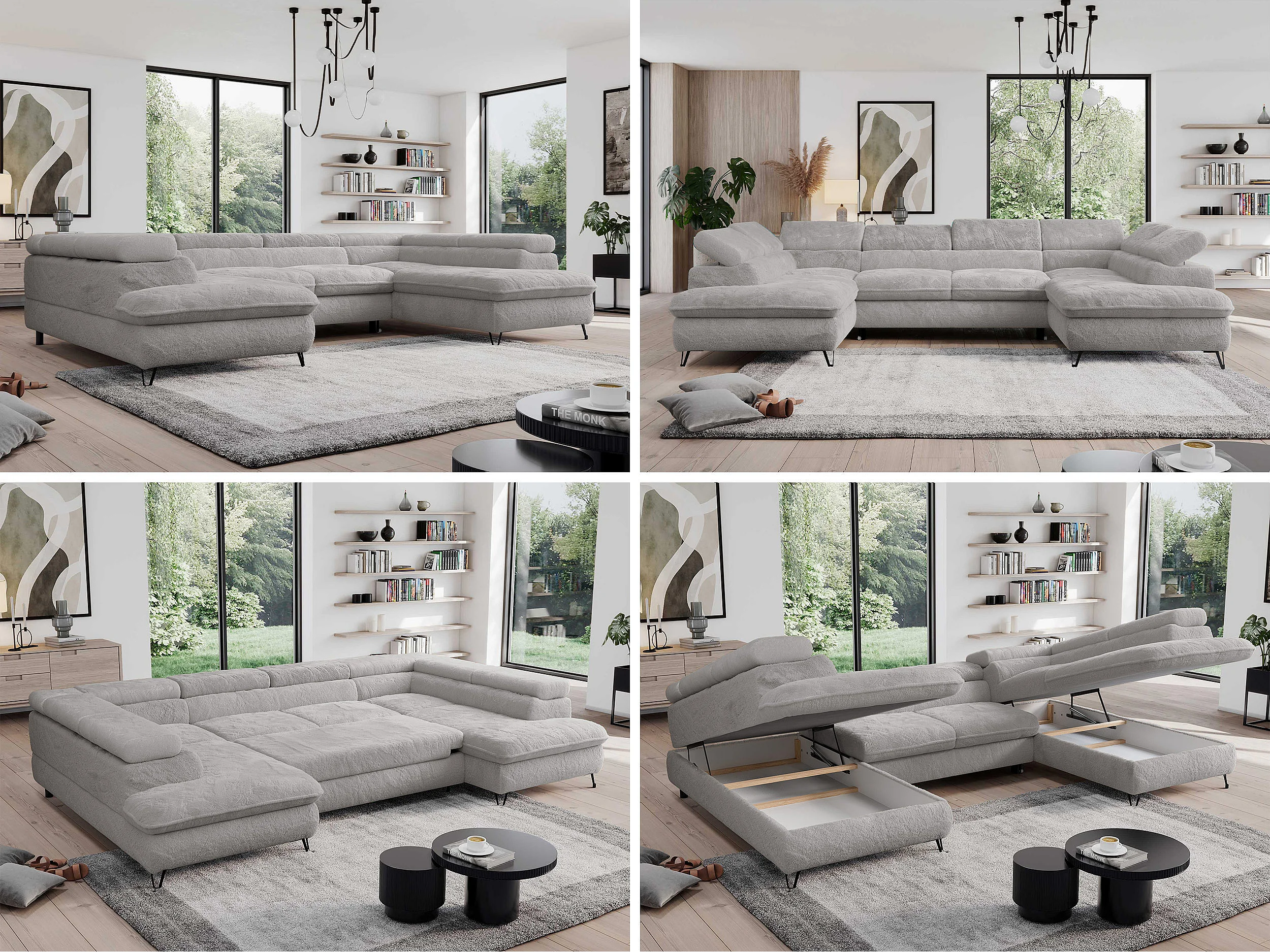 Ecksofa PEDRO U - XXL U-förmige Ecke, schlaffunktion und Bettkästen - Aschgrau Plüsch