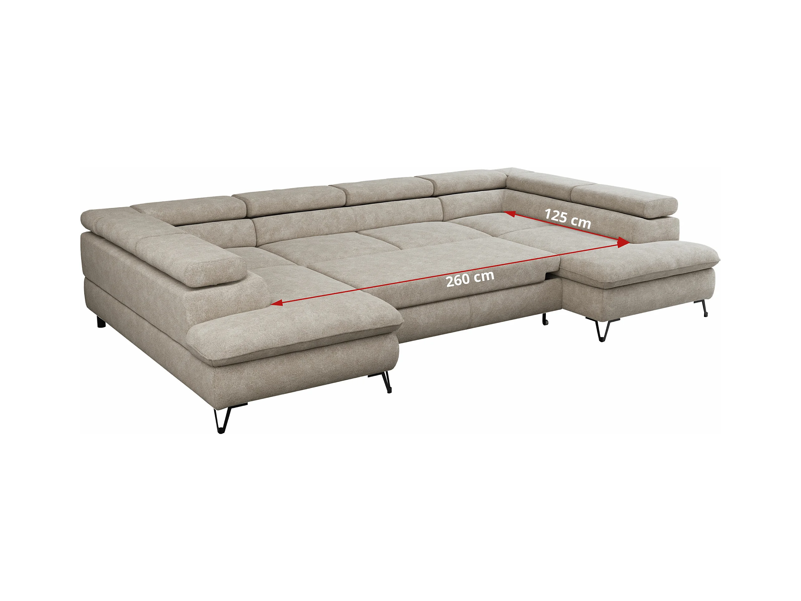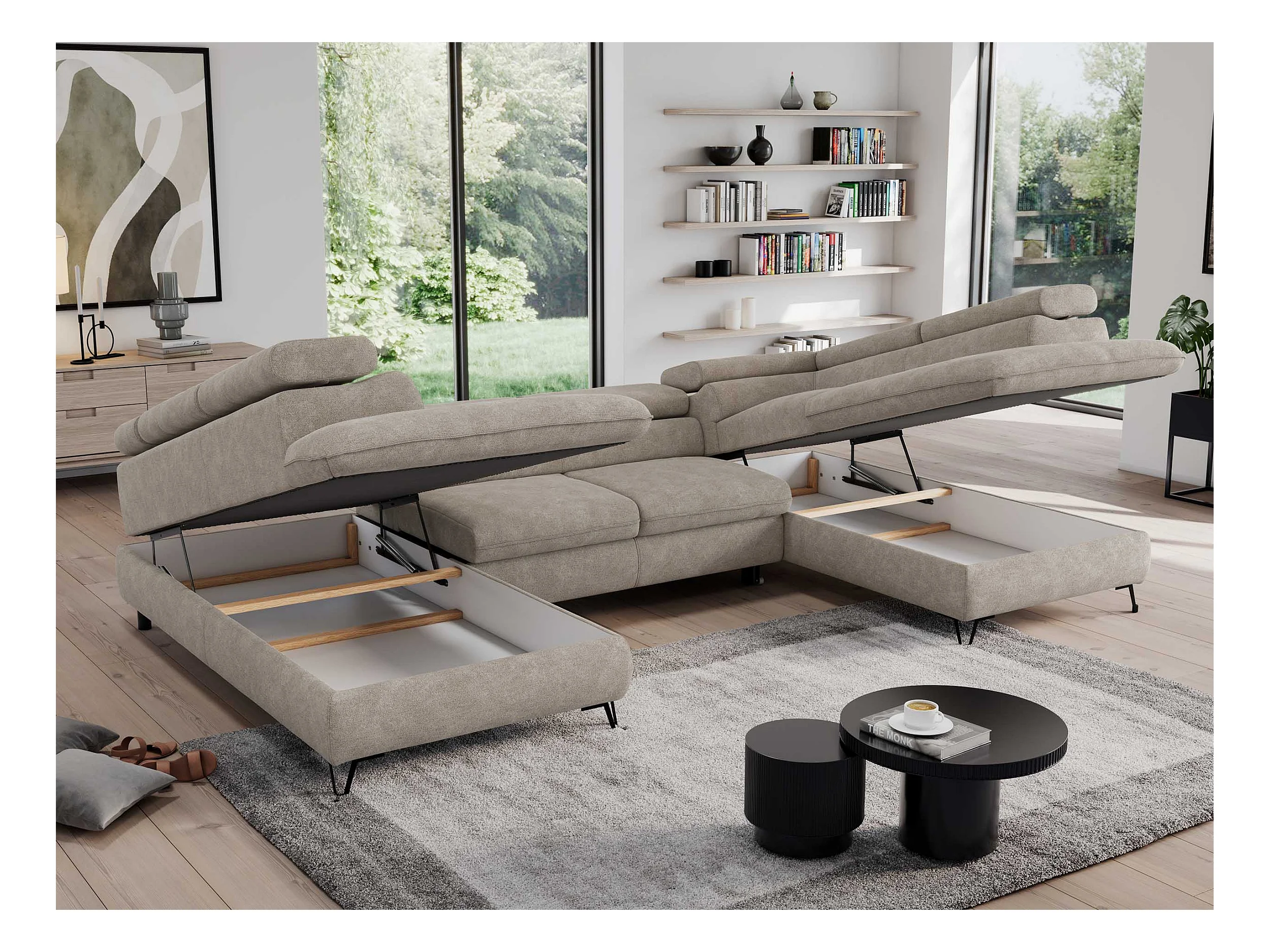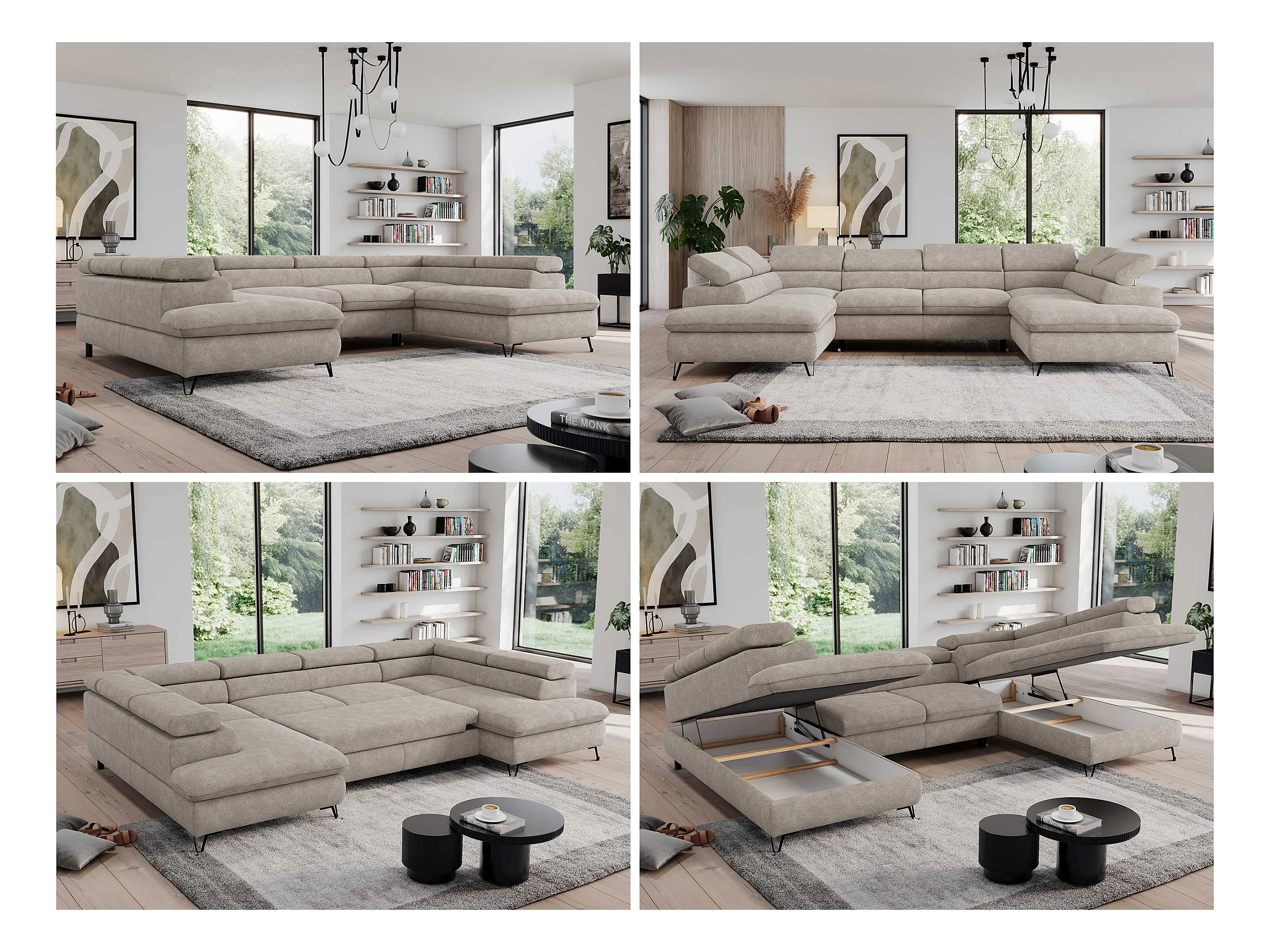 Ecksofa PEDRO U - XXL U-förmige Ecke, schlaffunktion und Bettkästen - Beige Stukture