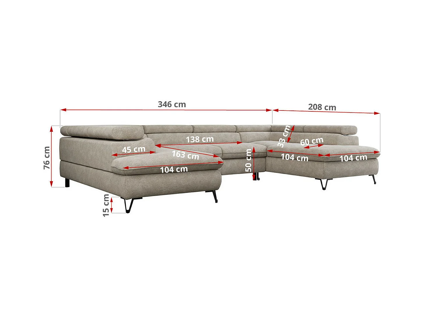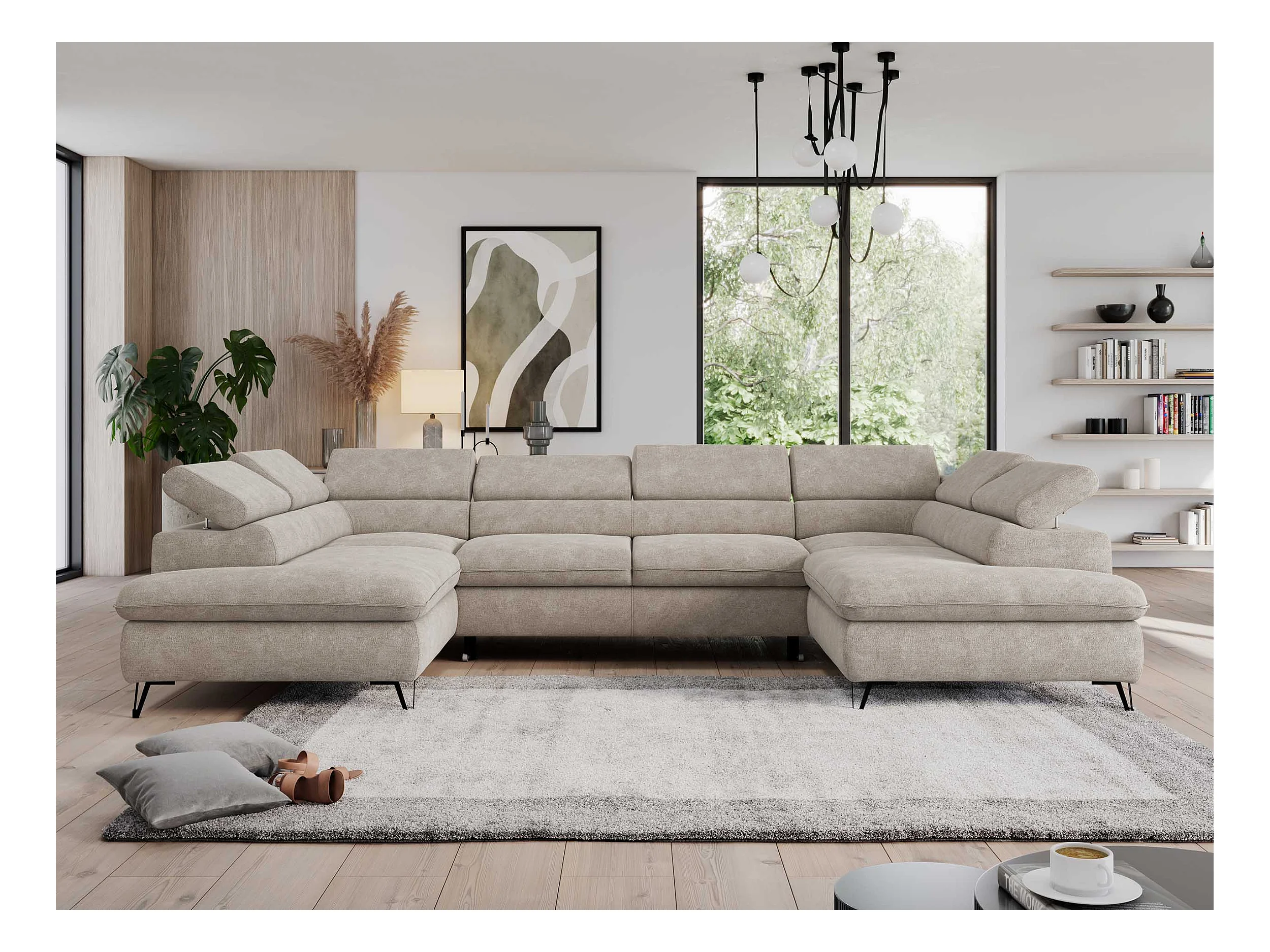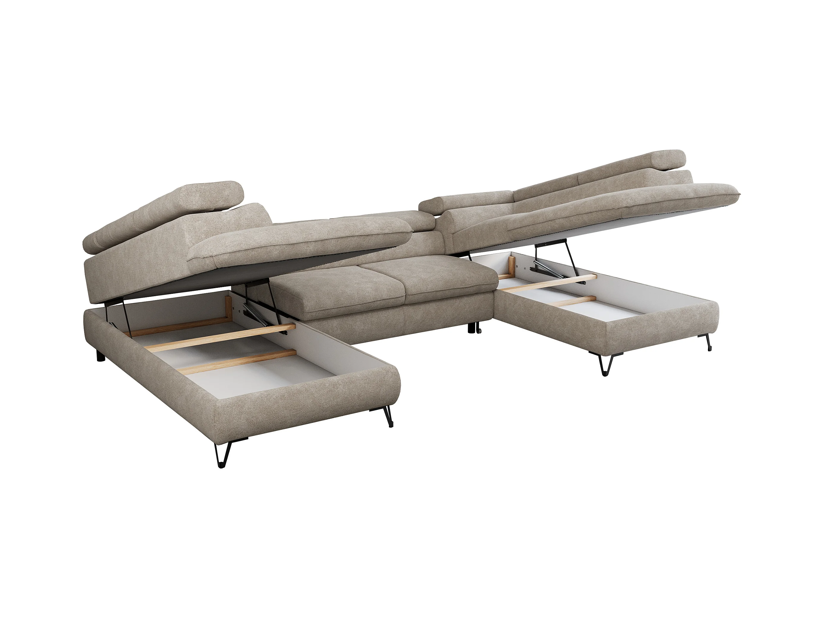 Ecksofa PEDRO U - XXL U-förmige Ecke, schlaffunktion und Bettkästen - Beige Stukture