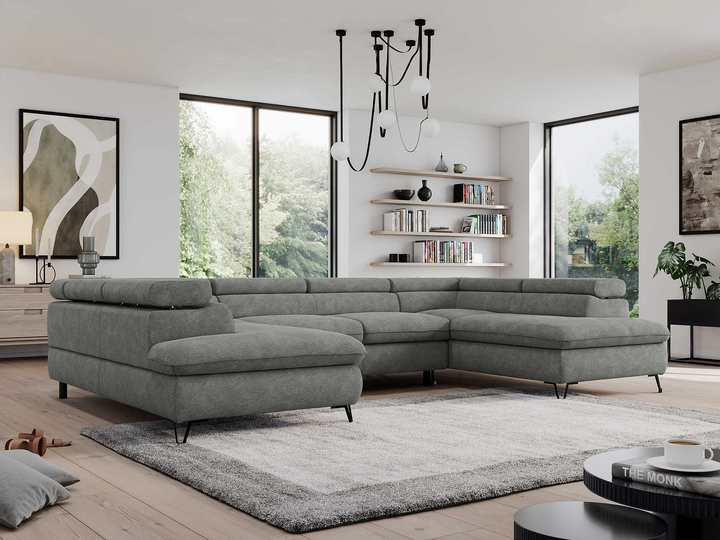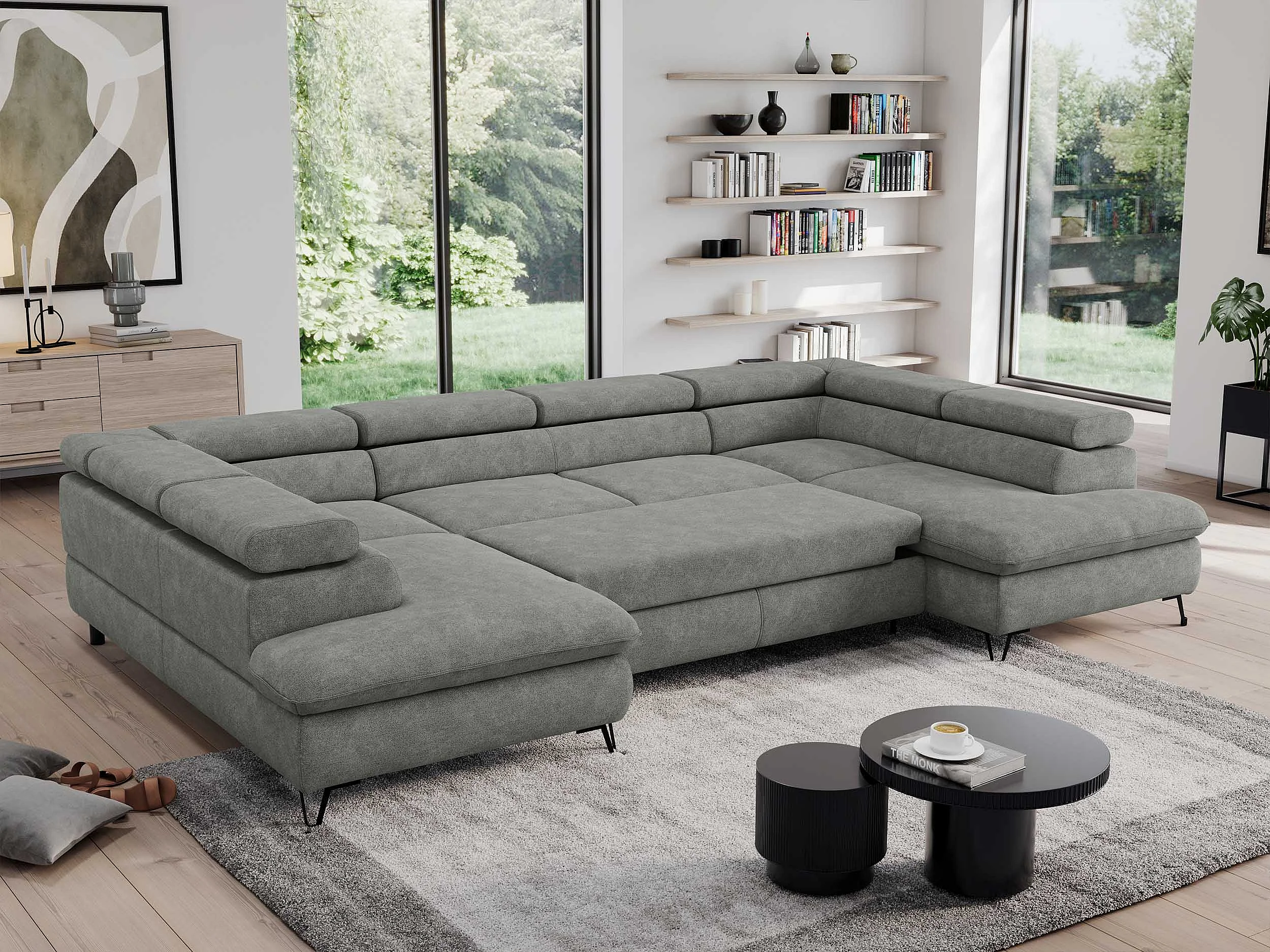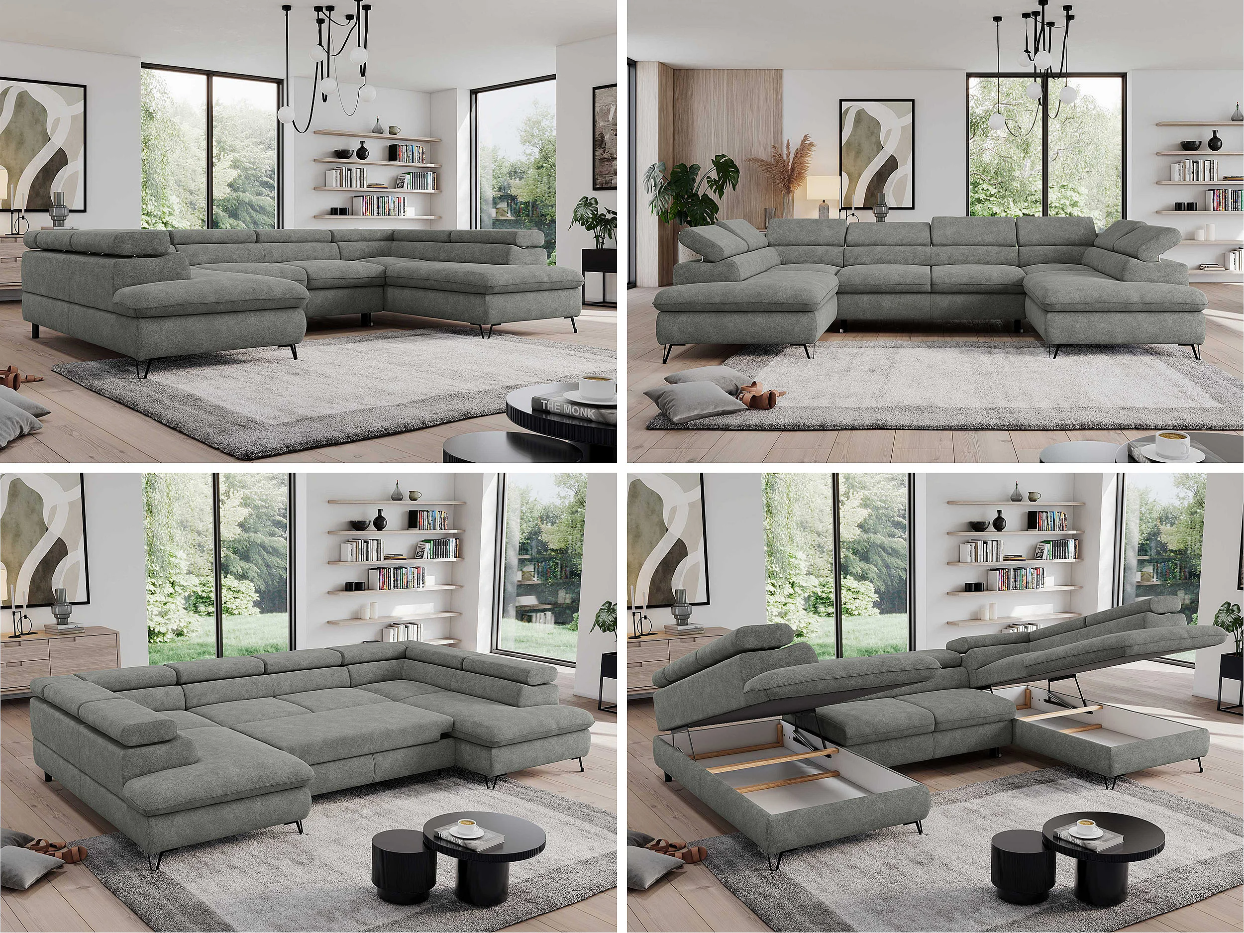 Ecksofa PEDRO U - XXL U-förmige Ecke, schlaffunktion und Bettkästen - Grau Stukture
