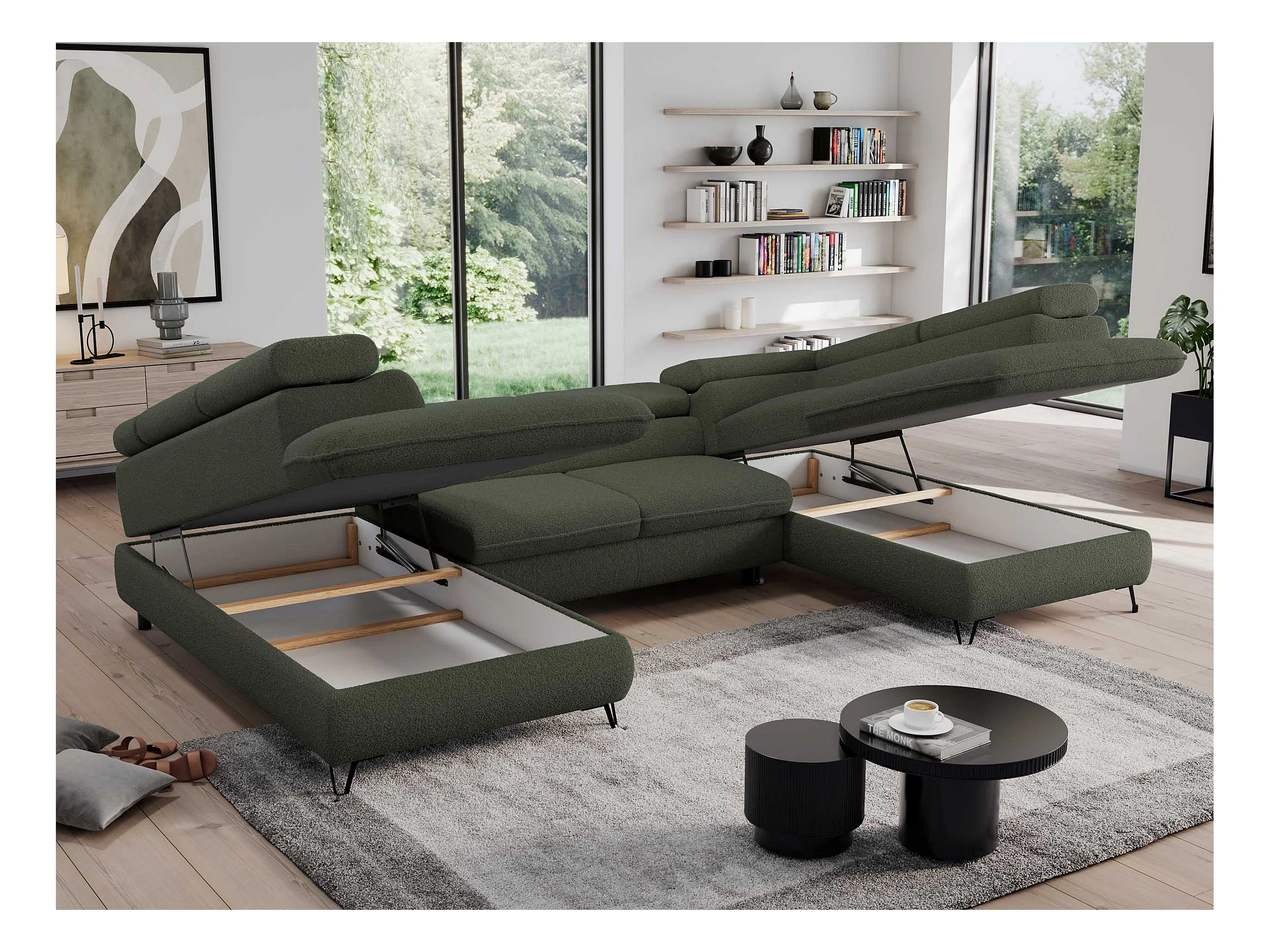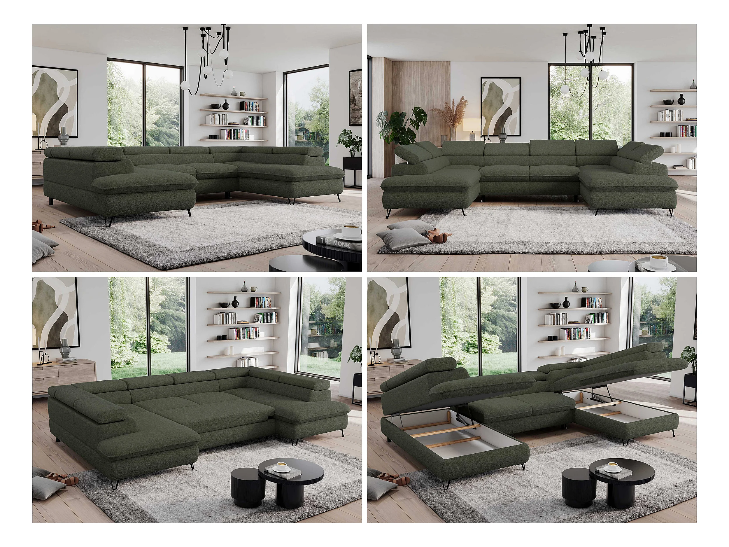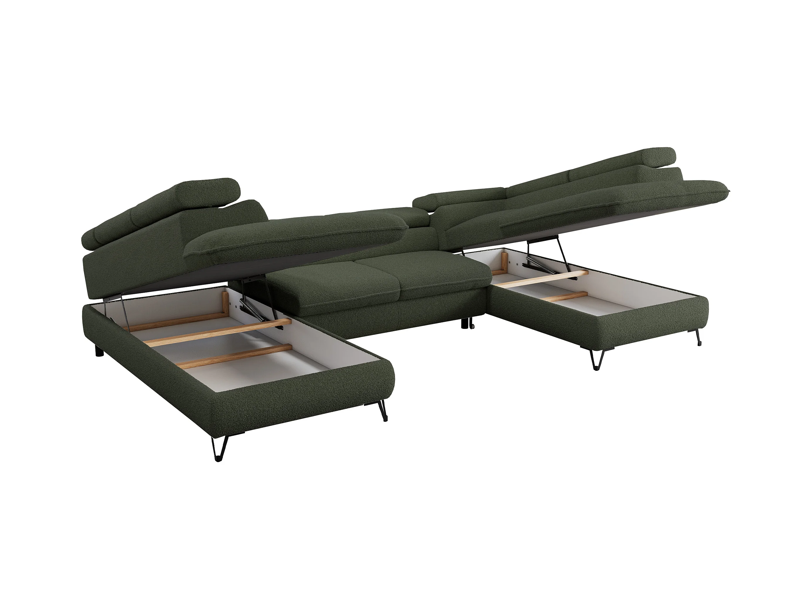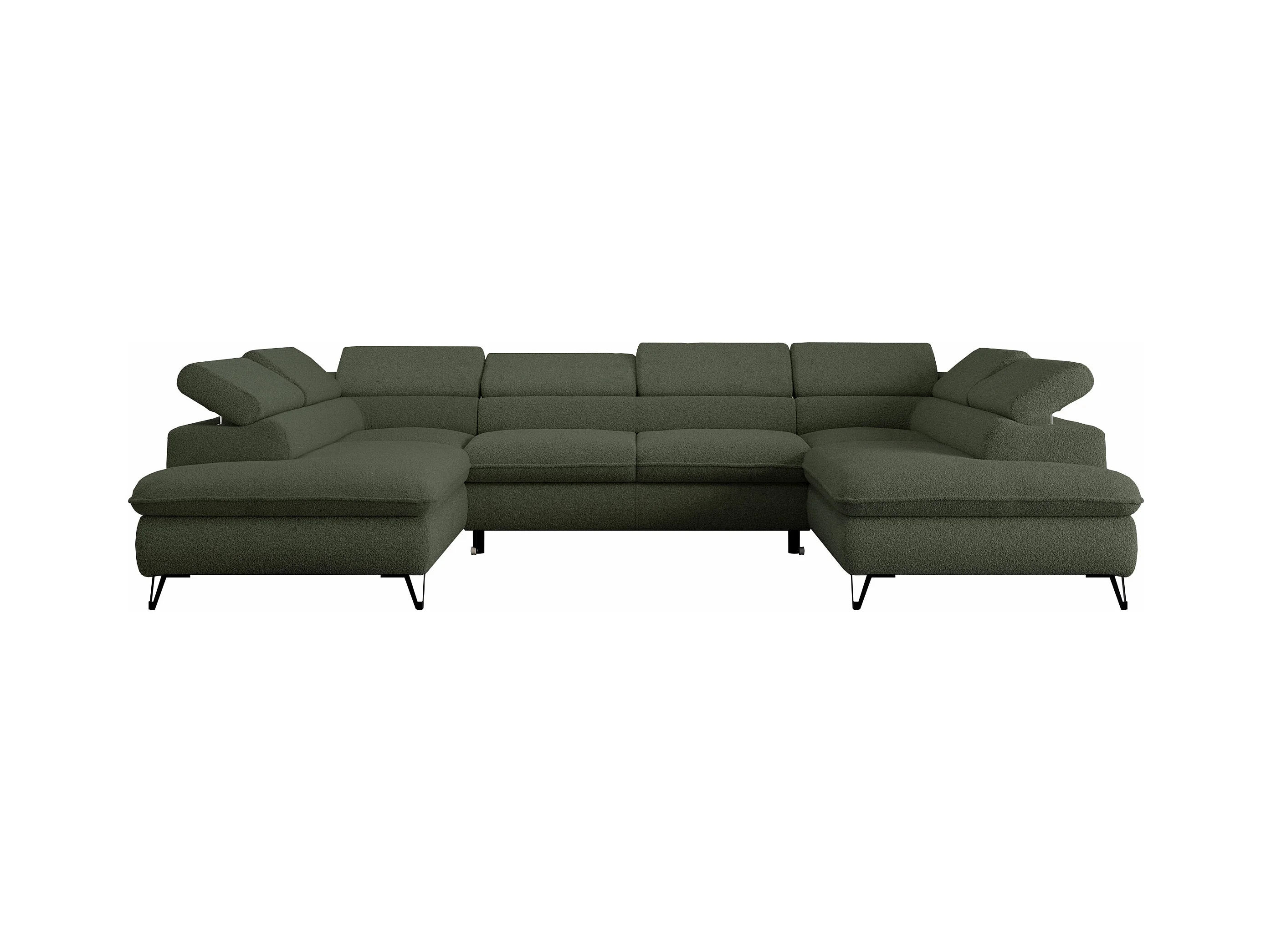 Ecksofa PEDRO U - XXL U-förmige Ecke, schlaffunktion und Bettkästen - Grün Boucle