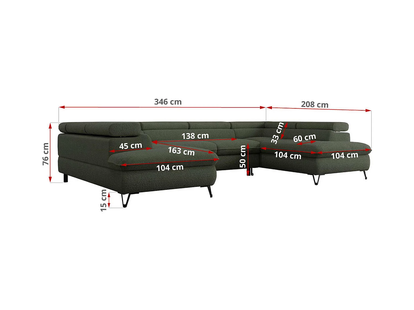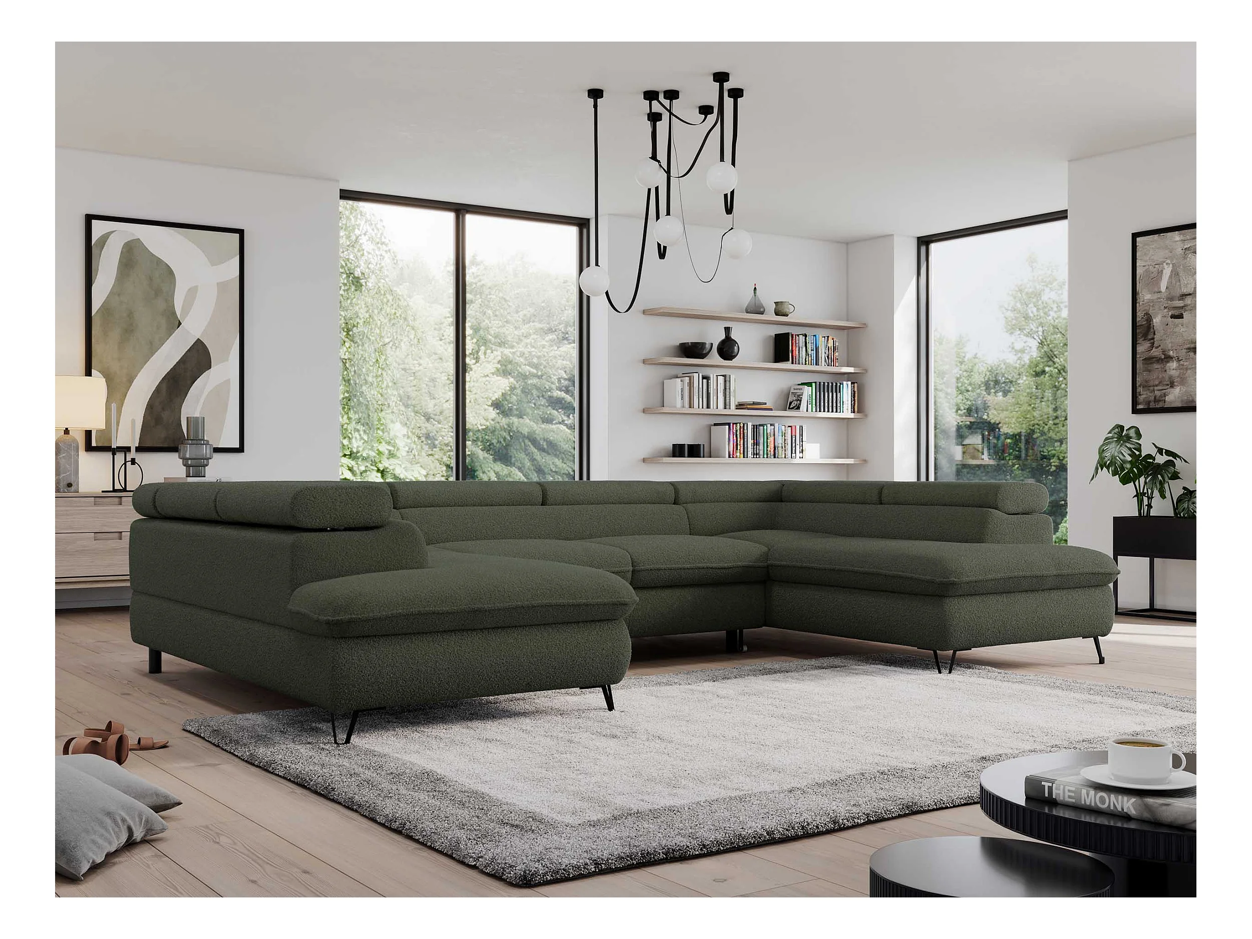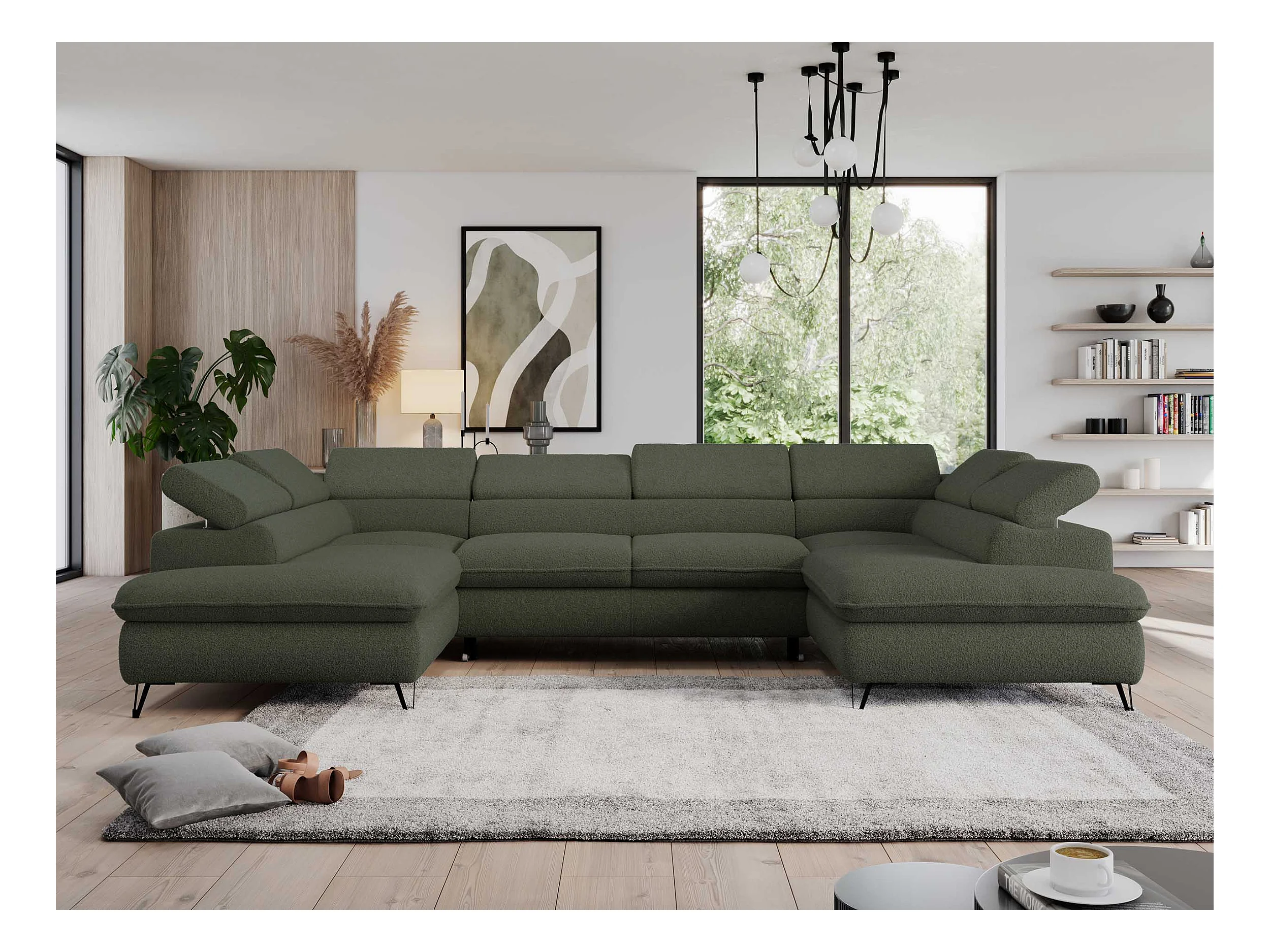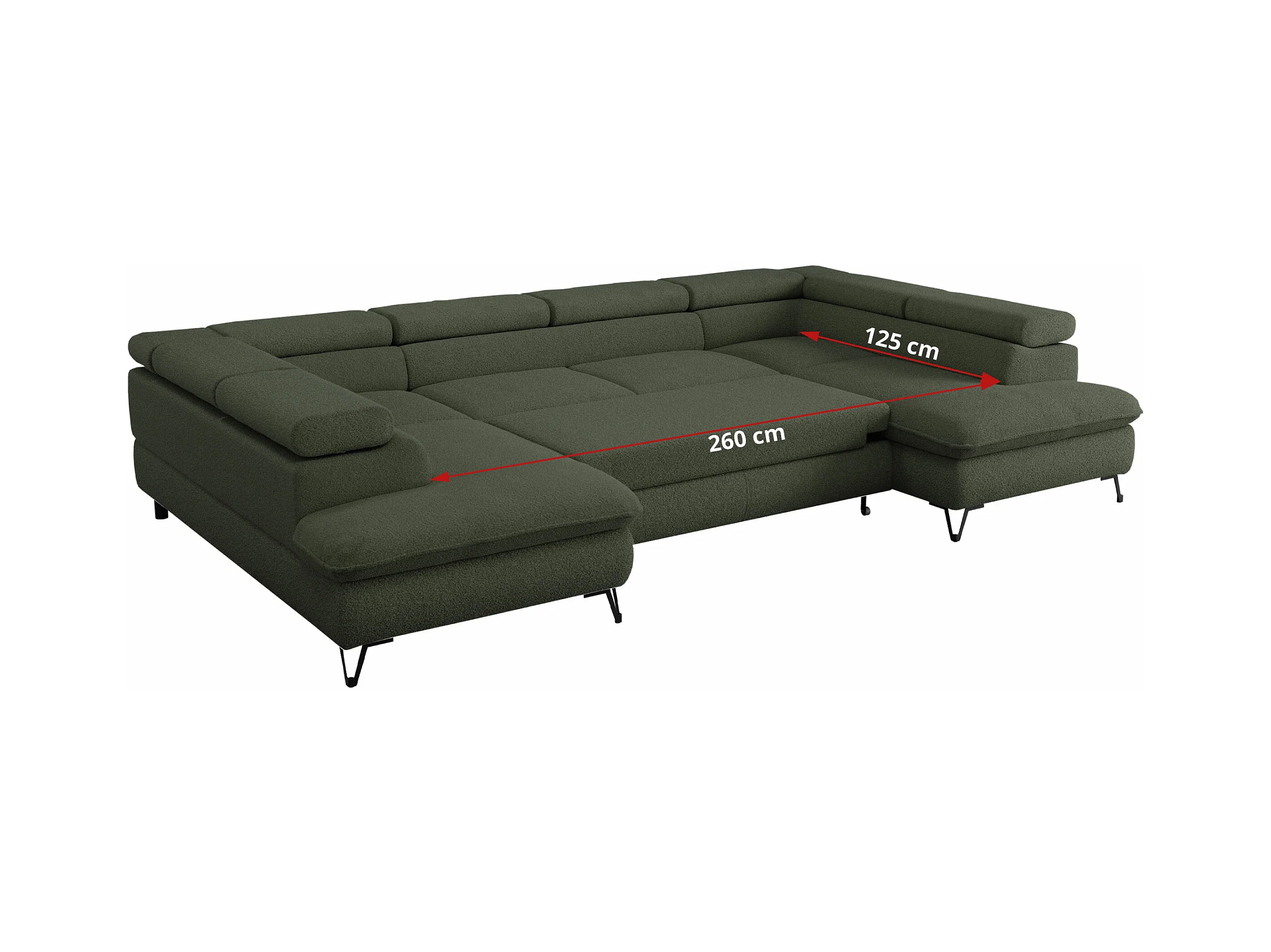 Ecksofa PEDRO U - XXL U-förmige Ecke, schlaffunktion und Bettkästen - Grün Boucle