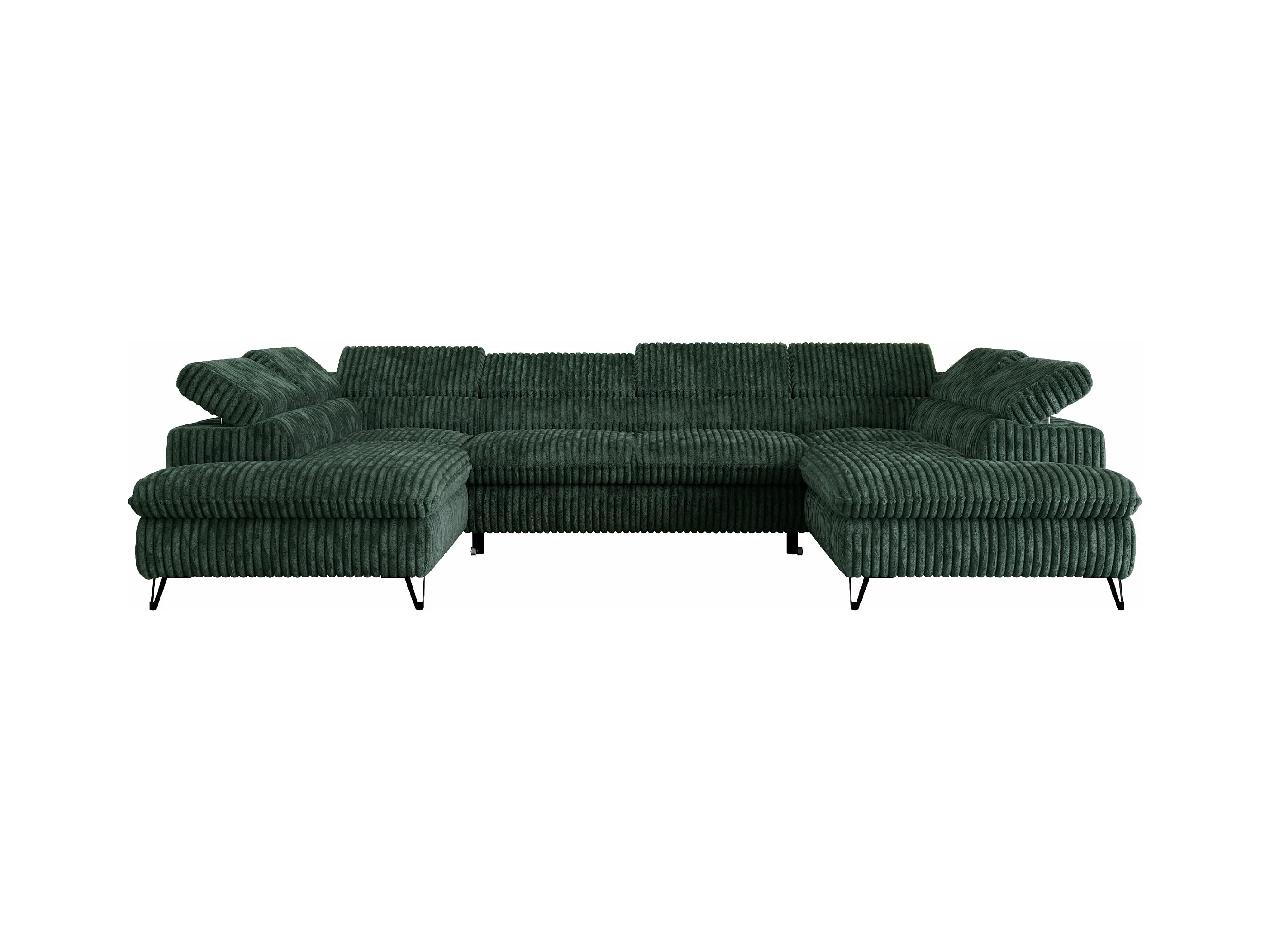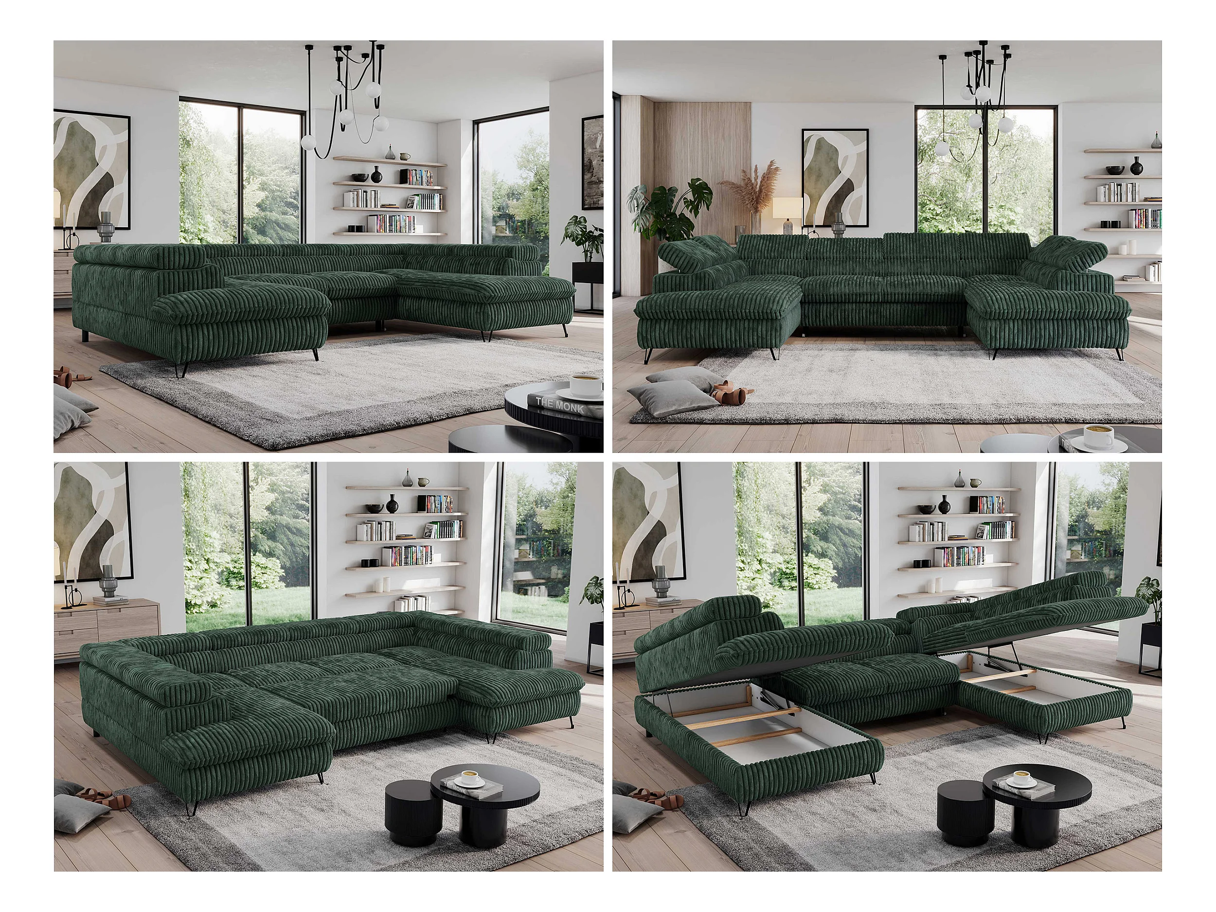 Ecksofa PEDRO U - XXL U-förmige Ecke, schlaffunktion und Bettkästen - Grün Cord