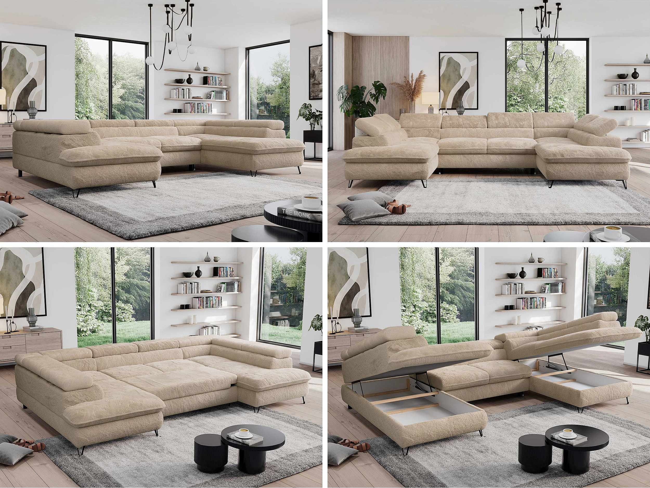 Ecksofa PEDRO U - XXL U-förmige Ecke, schlaffunktion und Bettkästen - Ivory Plüsch