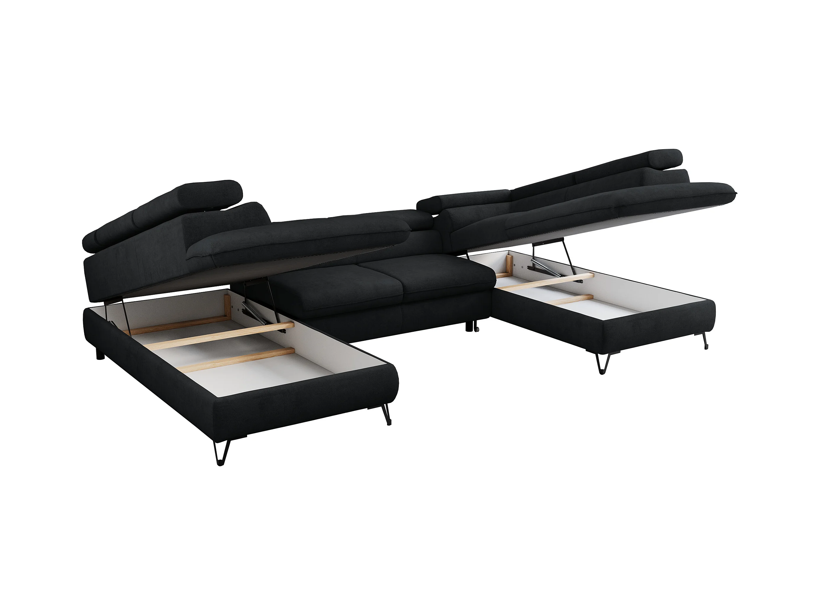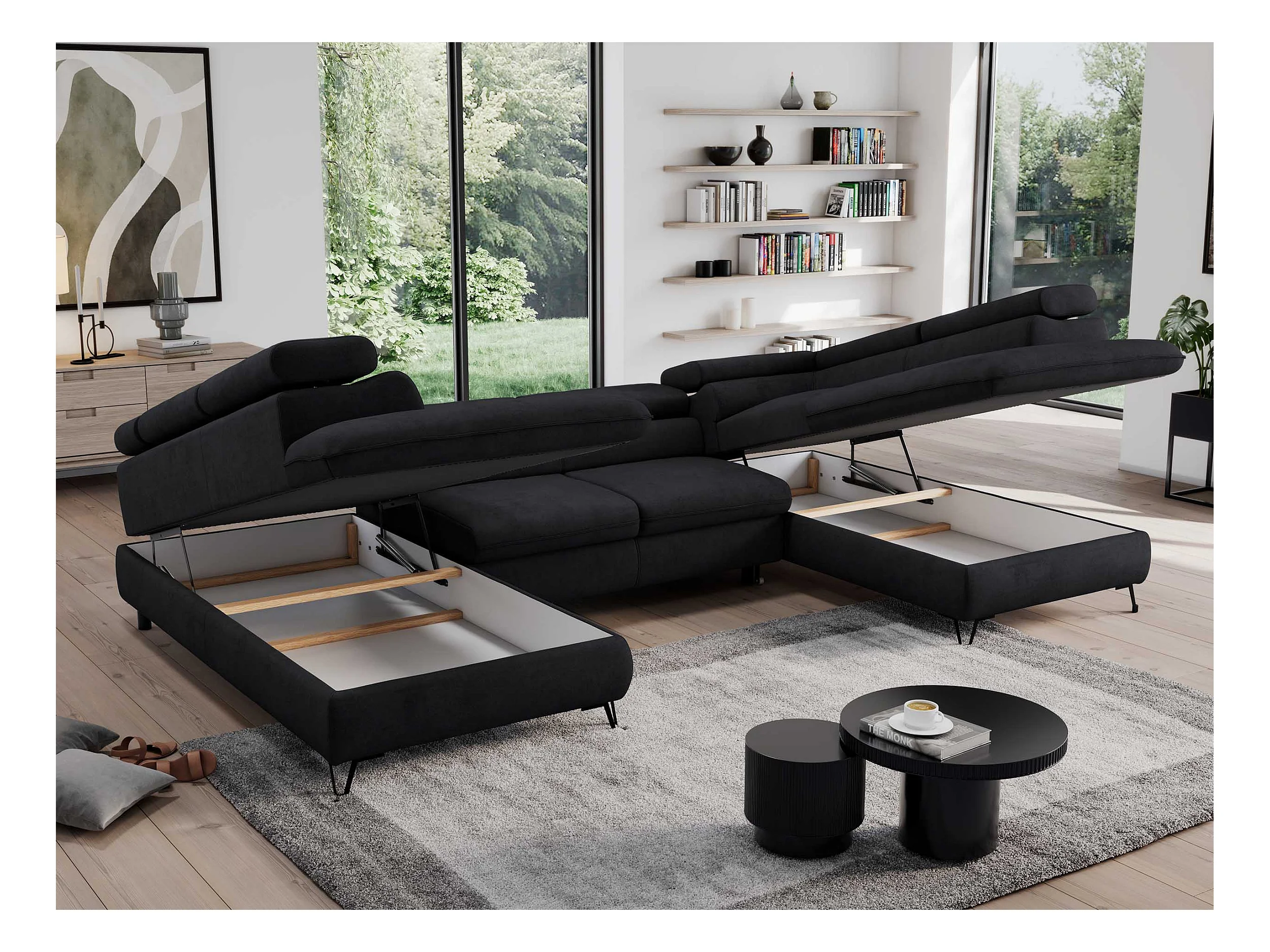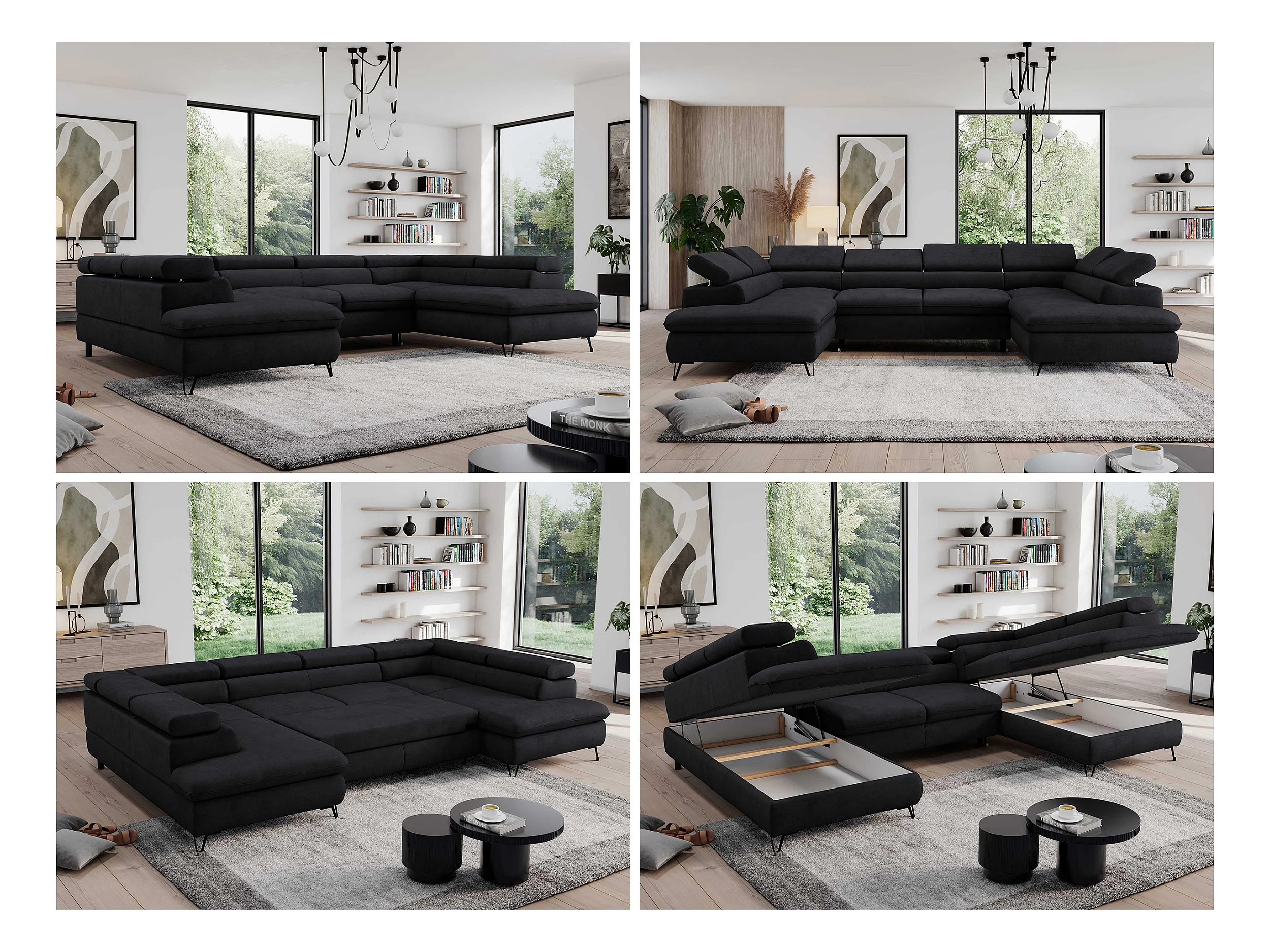 Ecksofa PEDRO U - XXL U-förmige Ecke, schlaffunktion und Bettkästen - Schwarz Velvet
