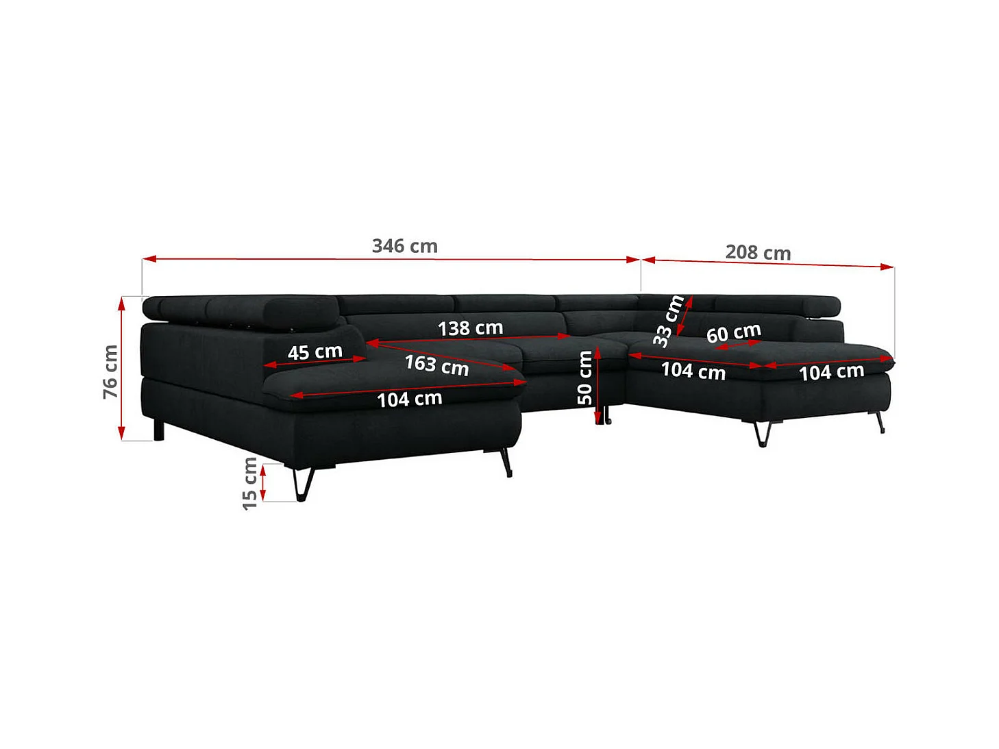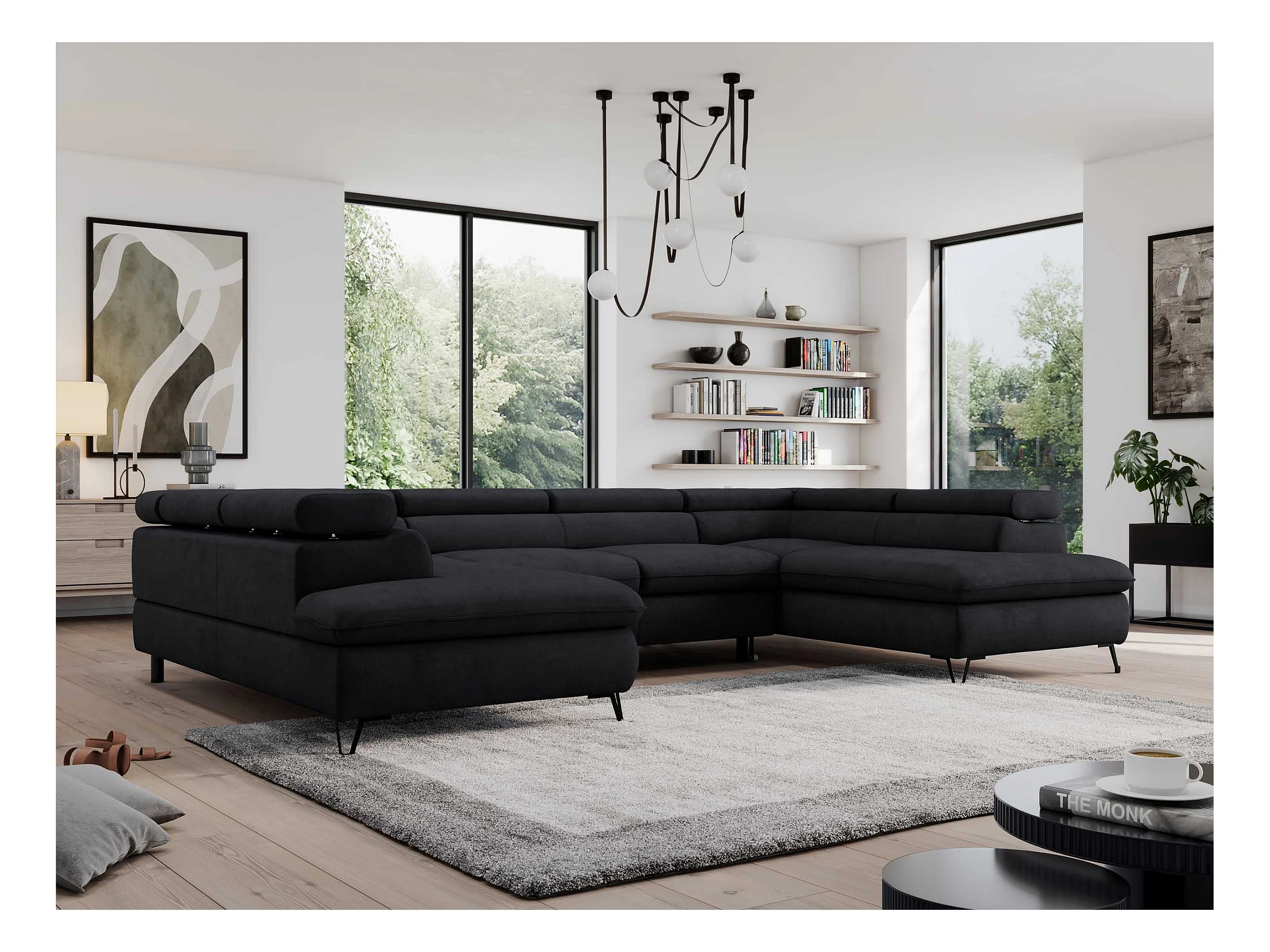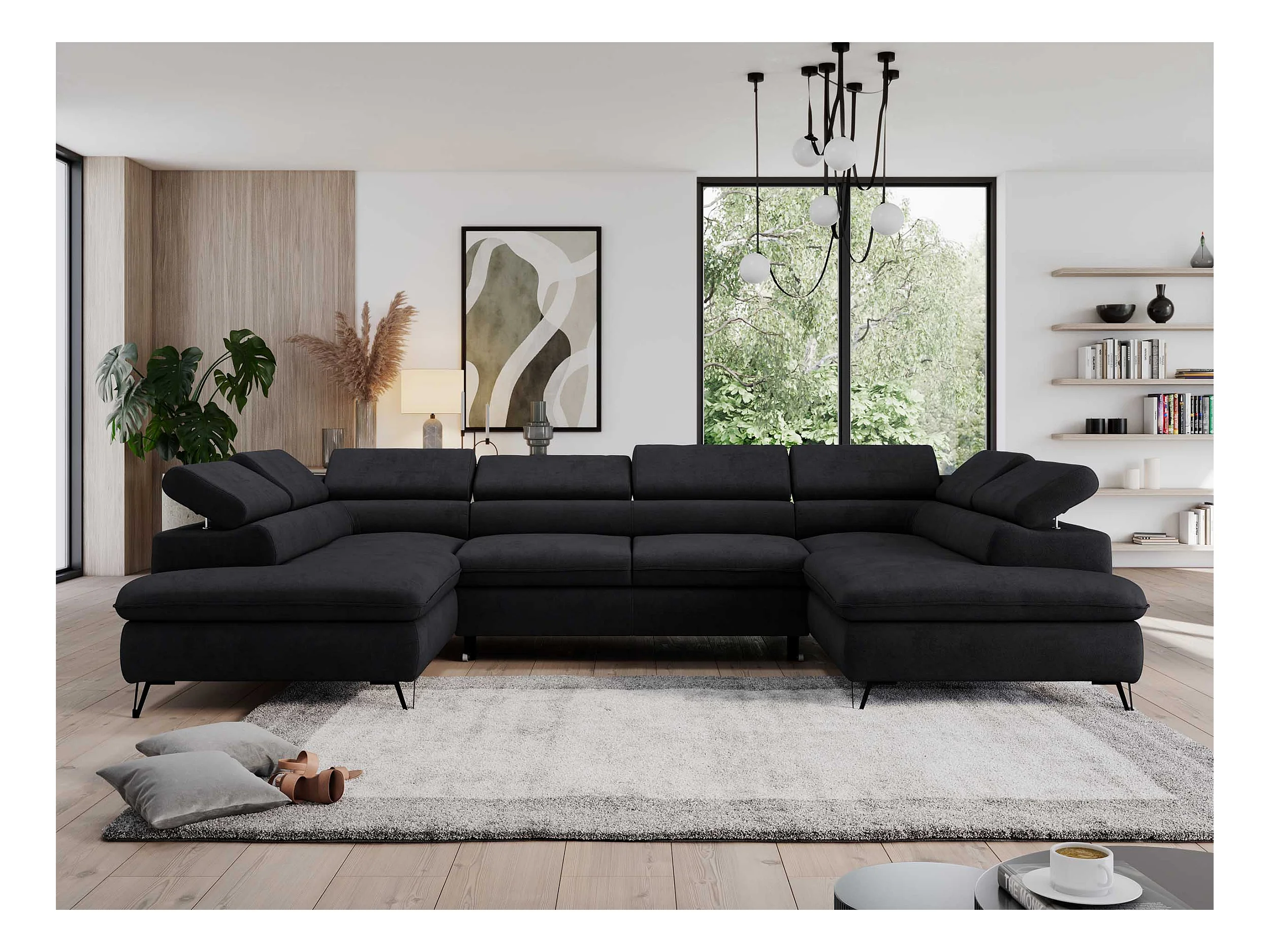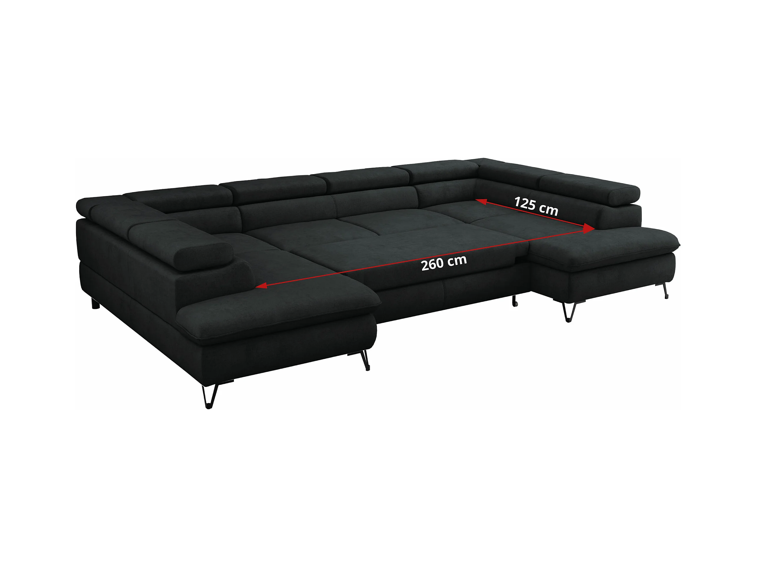 Ecksofa PEDRO U - XXL U-förmige Ecke, schlaffunktion und Bettkästen - Schwarz Velvet