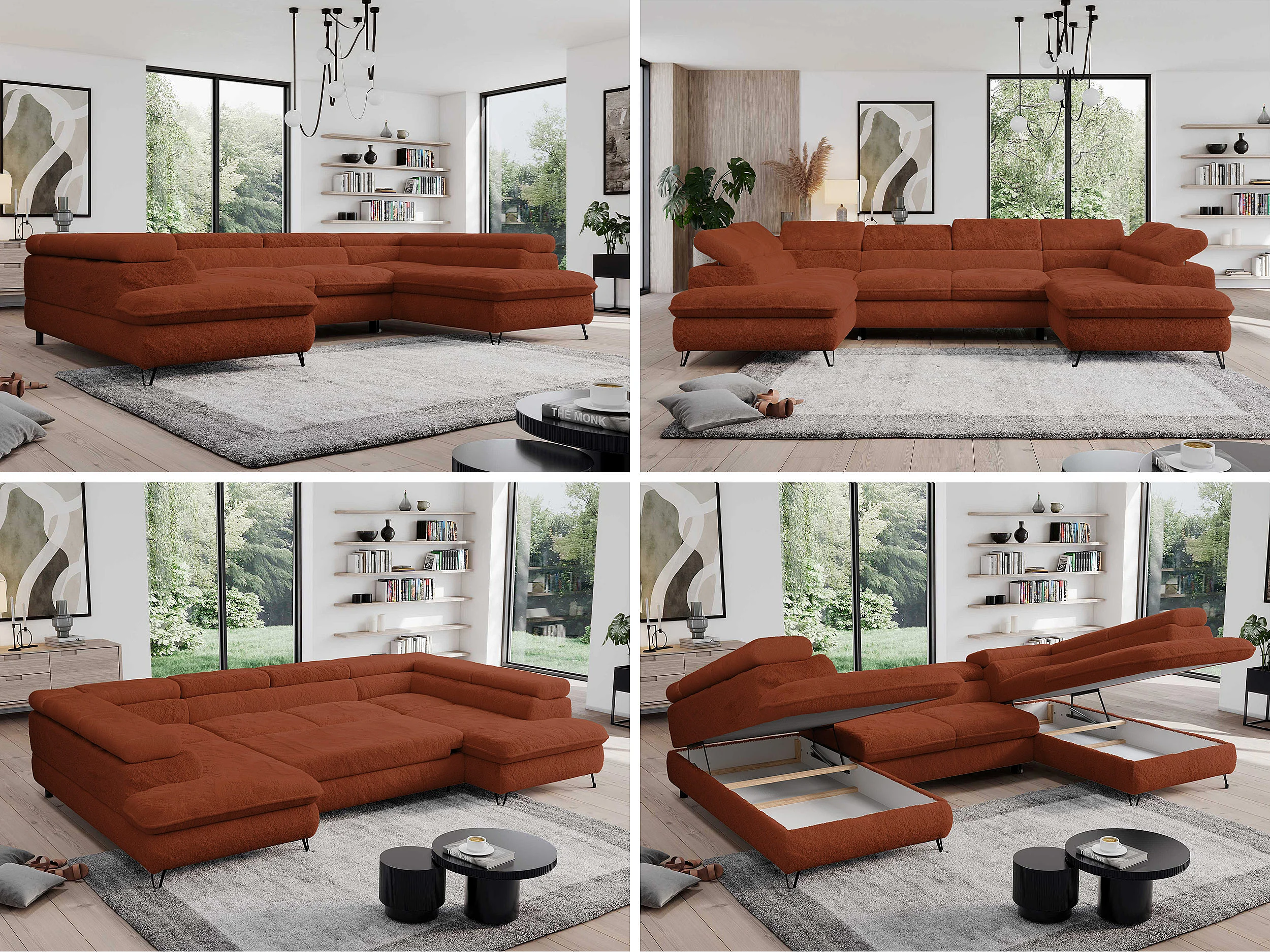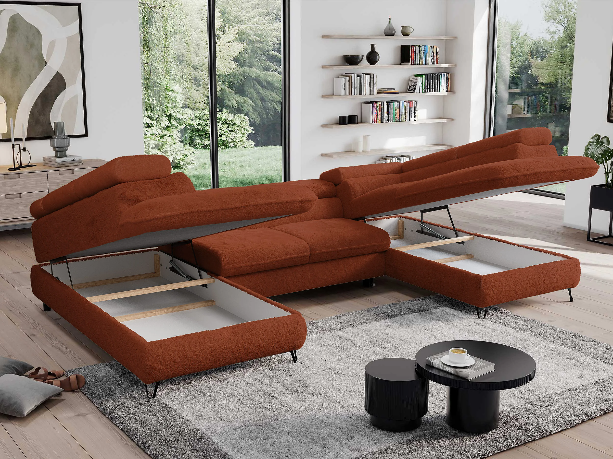 Ecksofa PEDRO U - XXL U-förmige Ecke, schlaffunktion und Bettkästen - Terracotta Plüsch