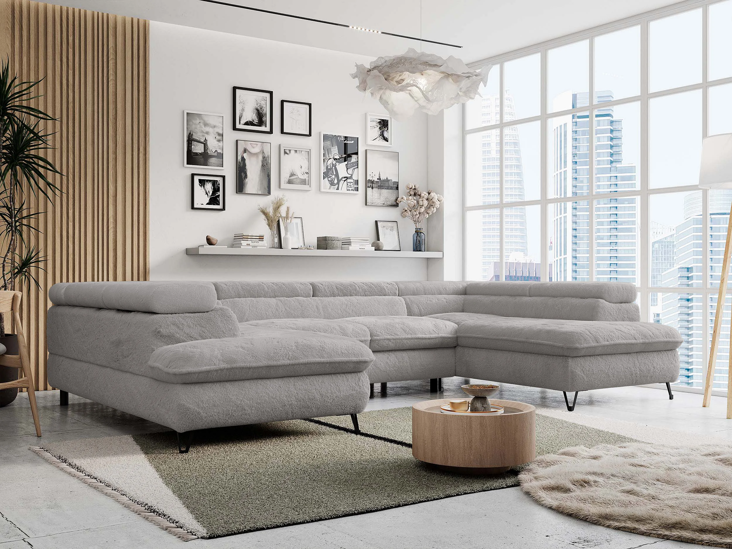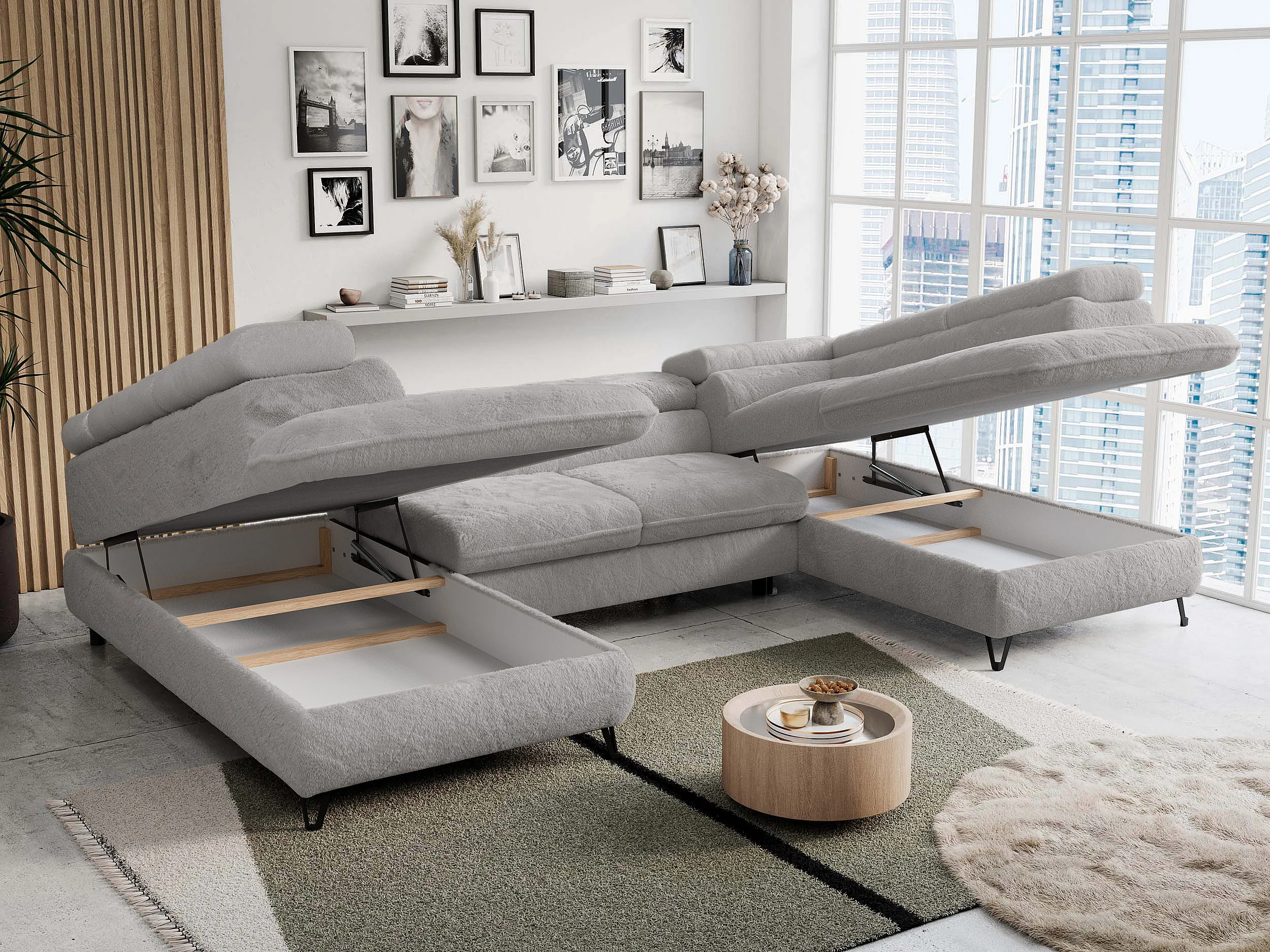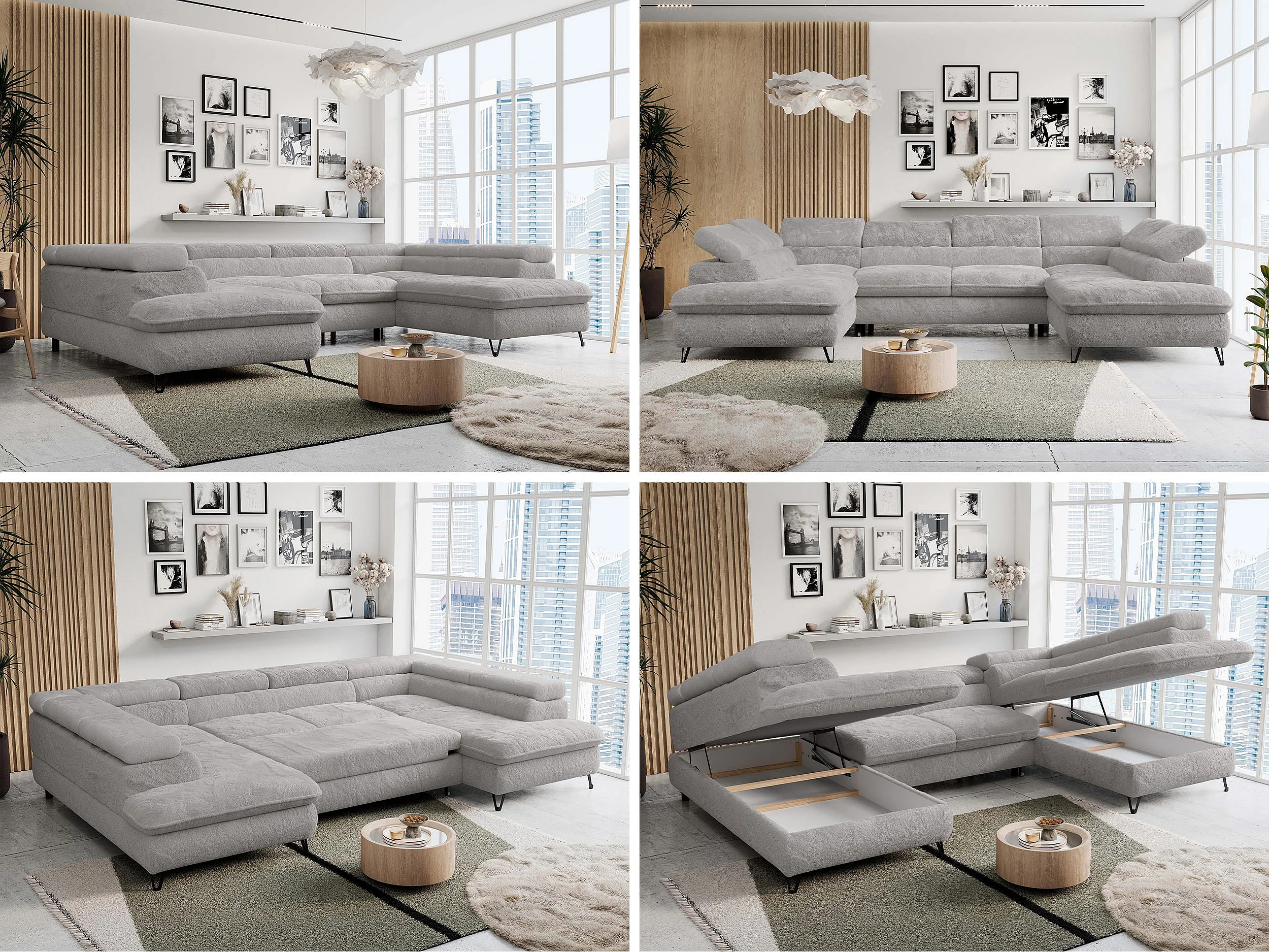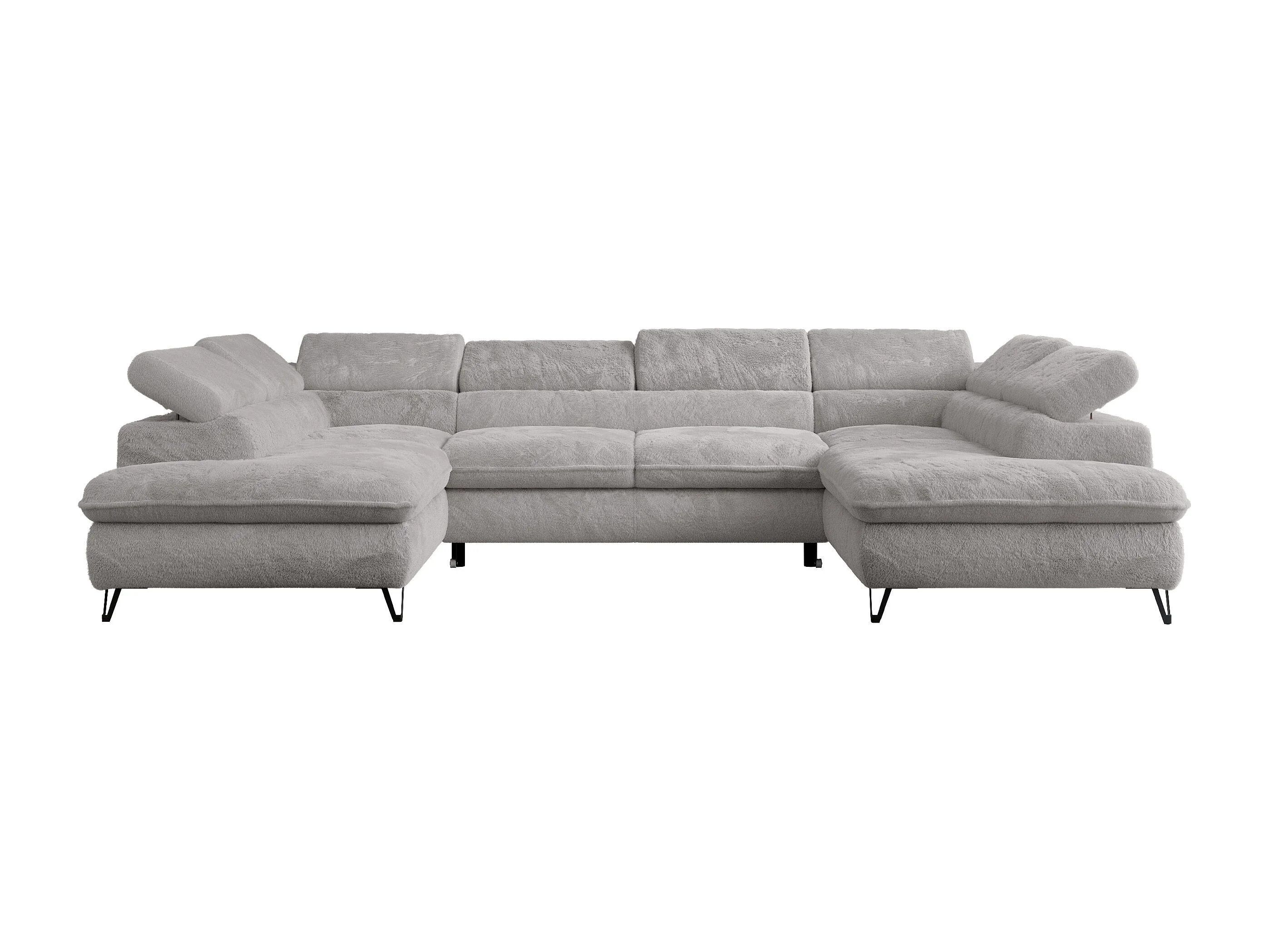 Ecksofa PETER U - schlaffunktion und Bettkästen, verstellbare Kopfstützen - Aschgrau Plüsch