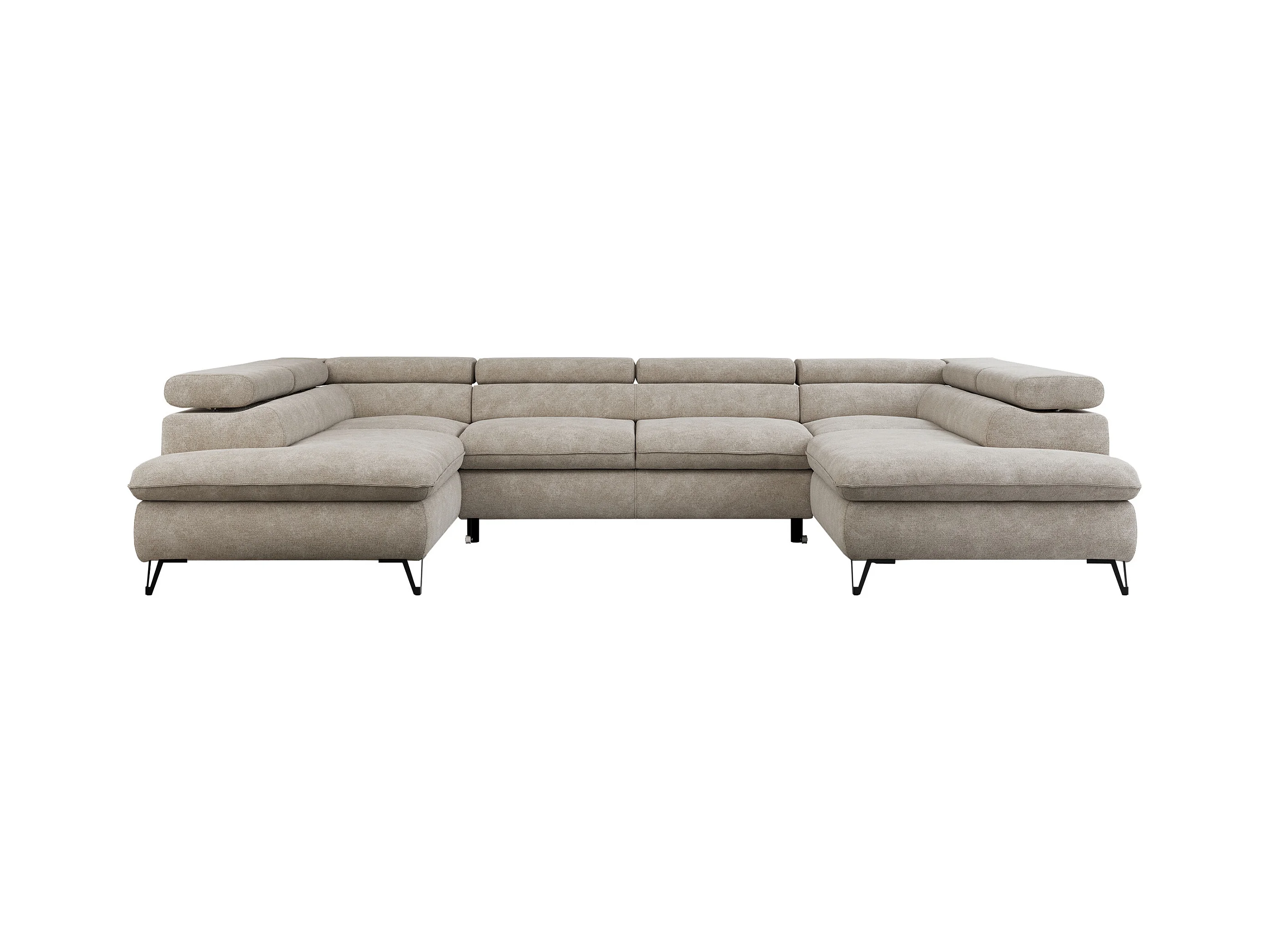 Ecksofa PETER U - schlaffunktion und Bettkästen, verstellbare Kopfstützen - Beige Stukture